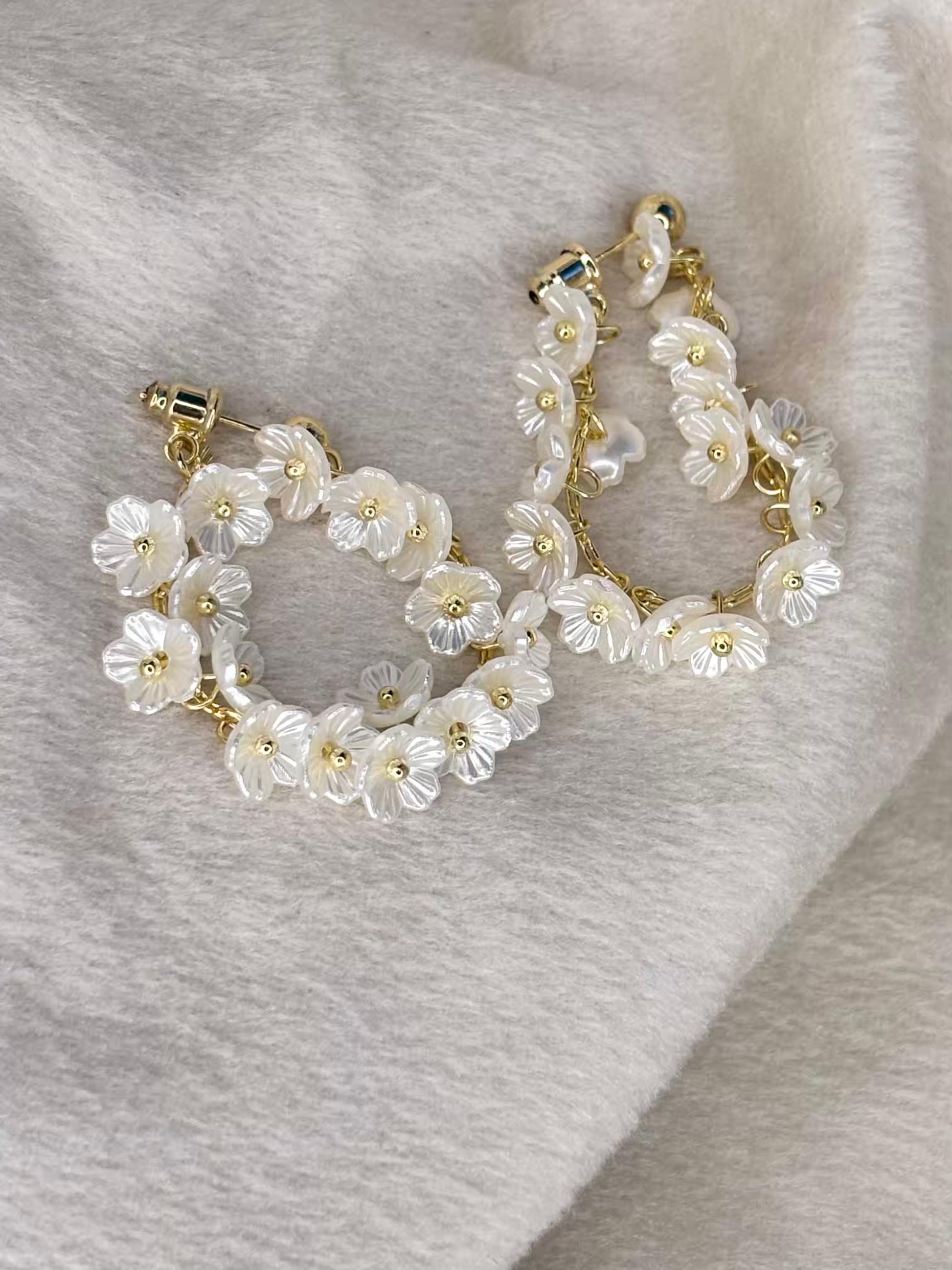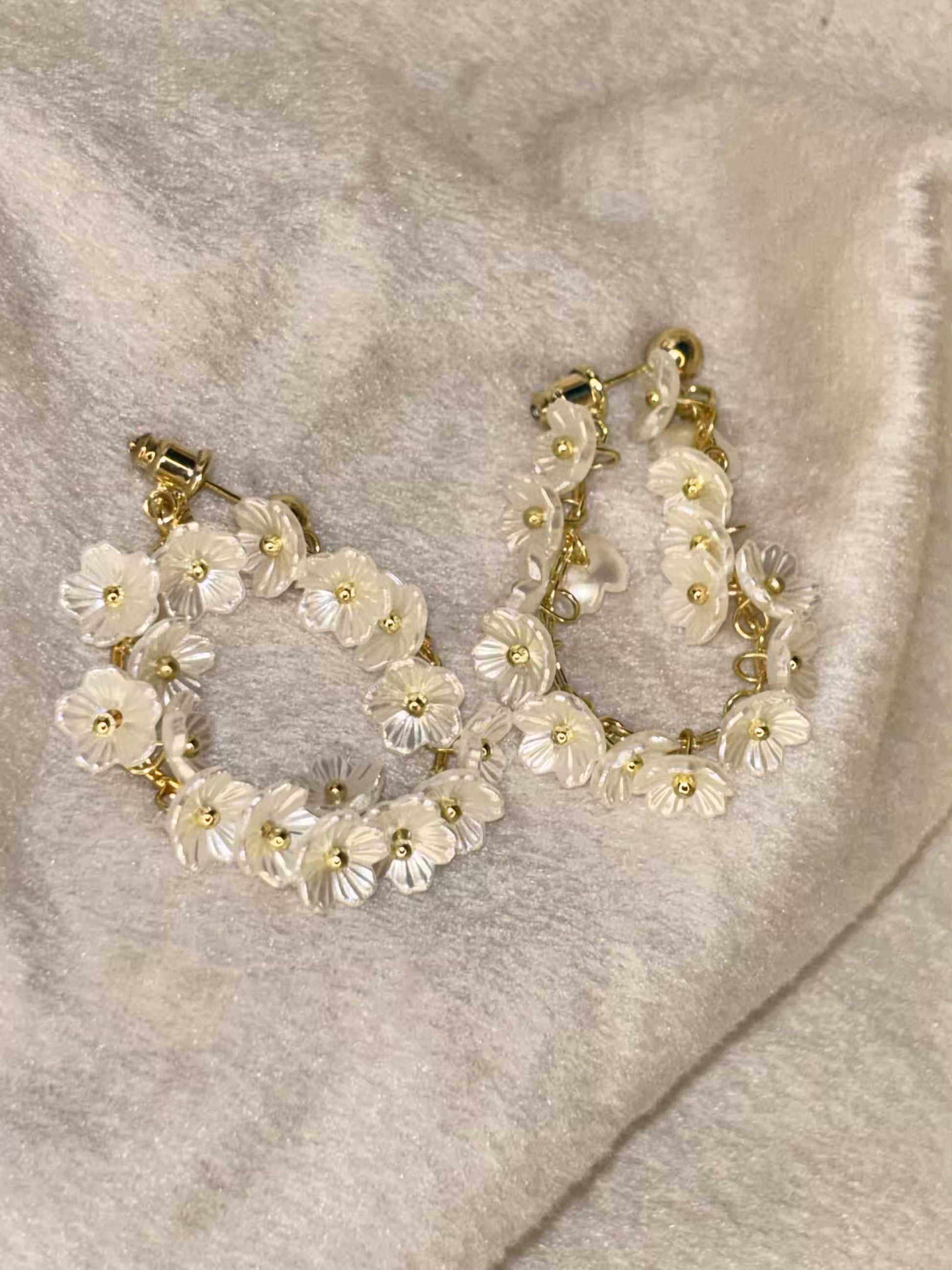 White Flora Wreath Earrings 18K Gold Plated Premium Earrings