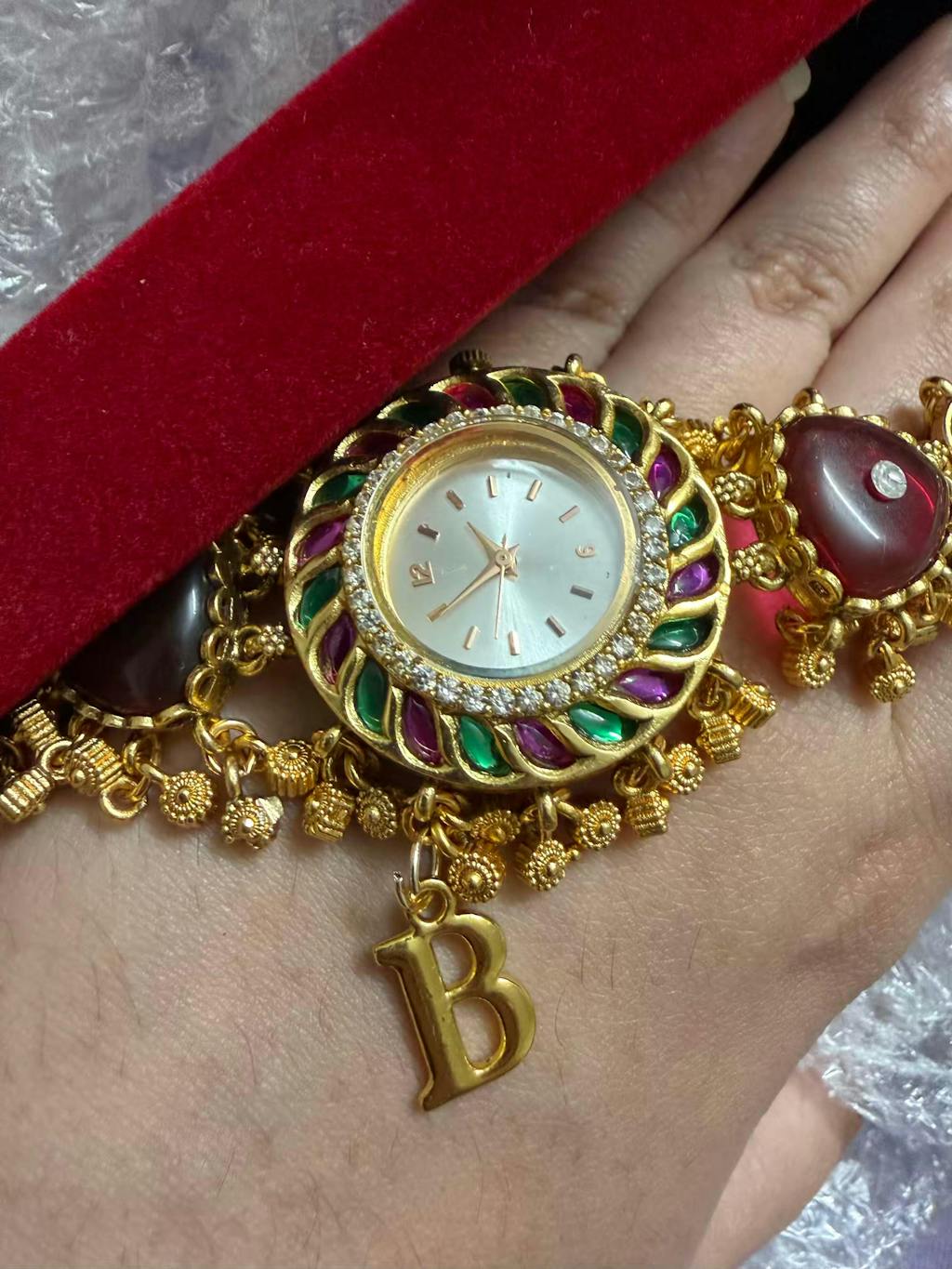 Green Red Gold Dial Loaded Green Rajwadi Gold Plated Heritage Maharani Watch ( Restocked Finally )