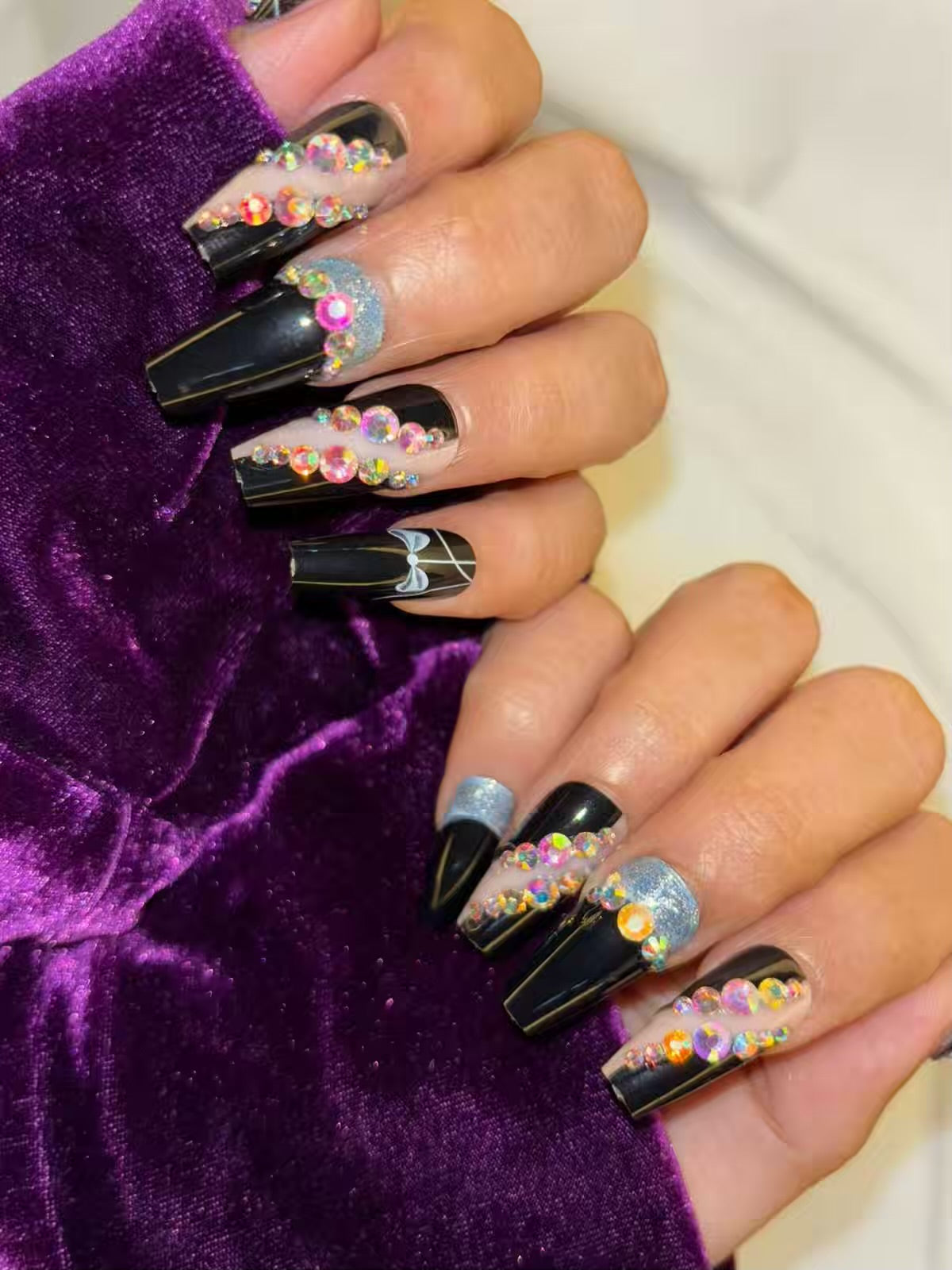 Black Sequins Shimmery Fancy Party Bridal Press On Nails ( Set of 24 )