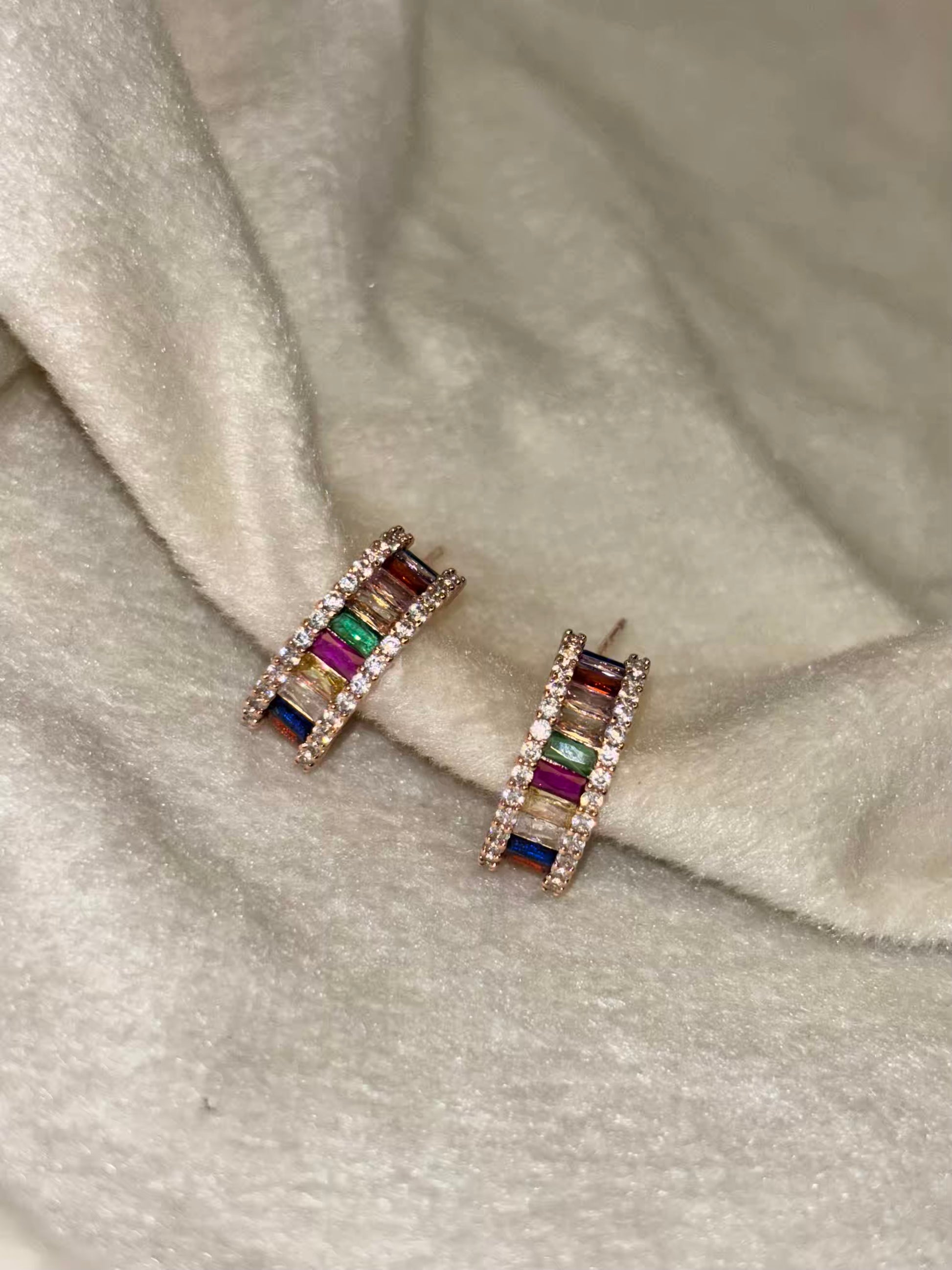 Colourful Huggies Ear Studs Earring - Rose Gold Plated