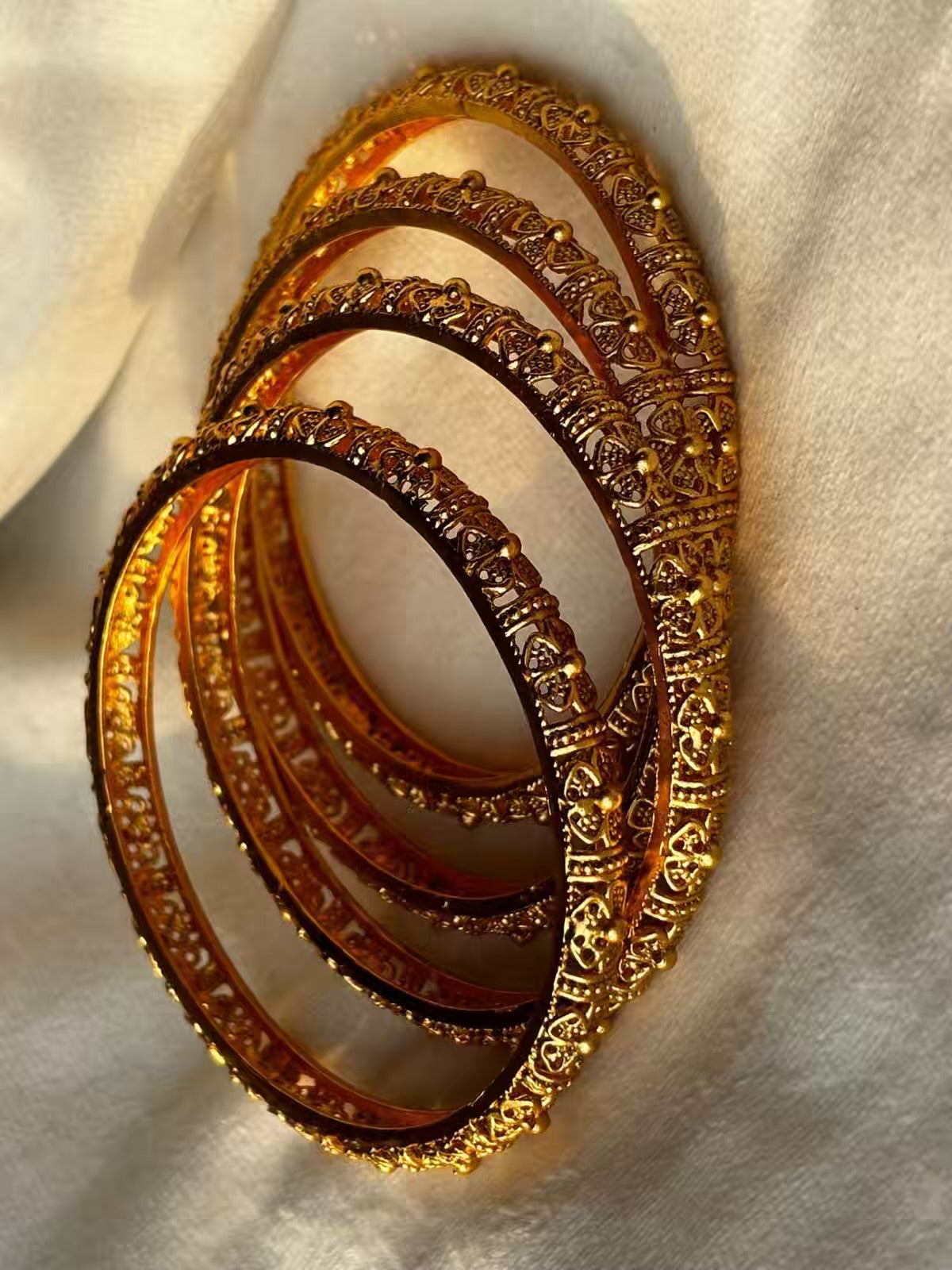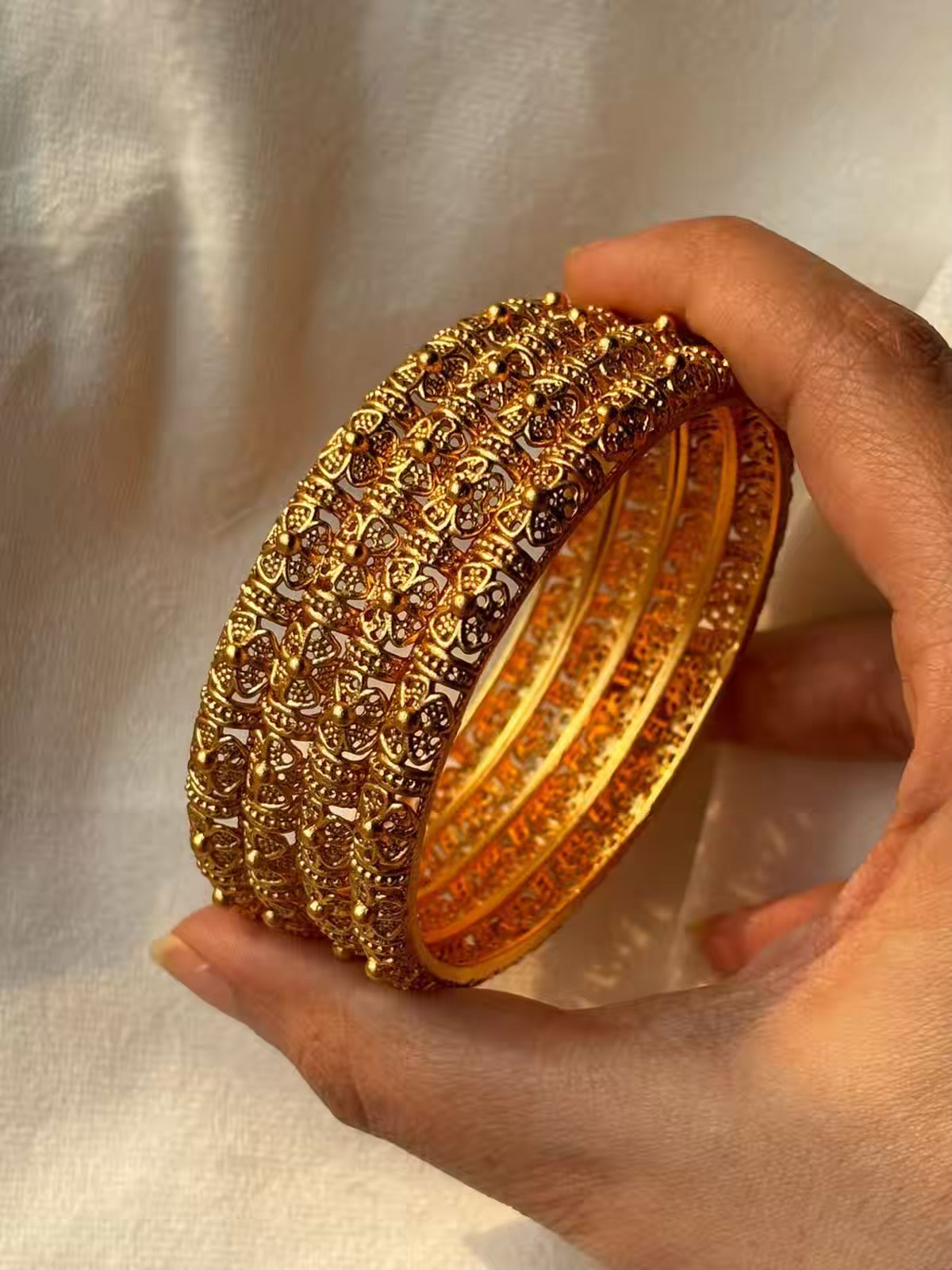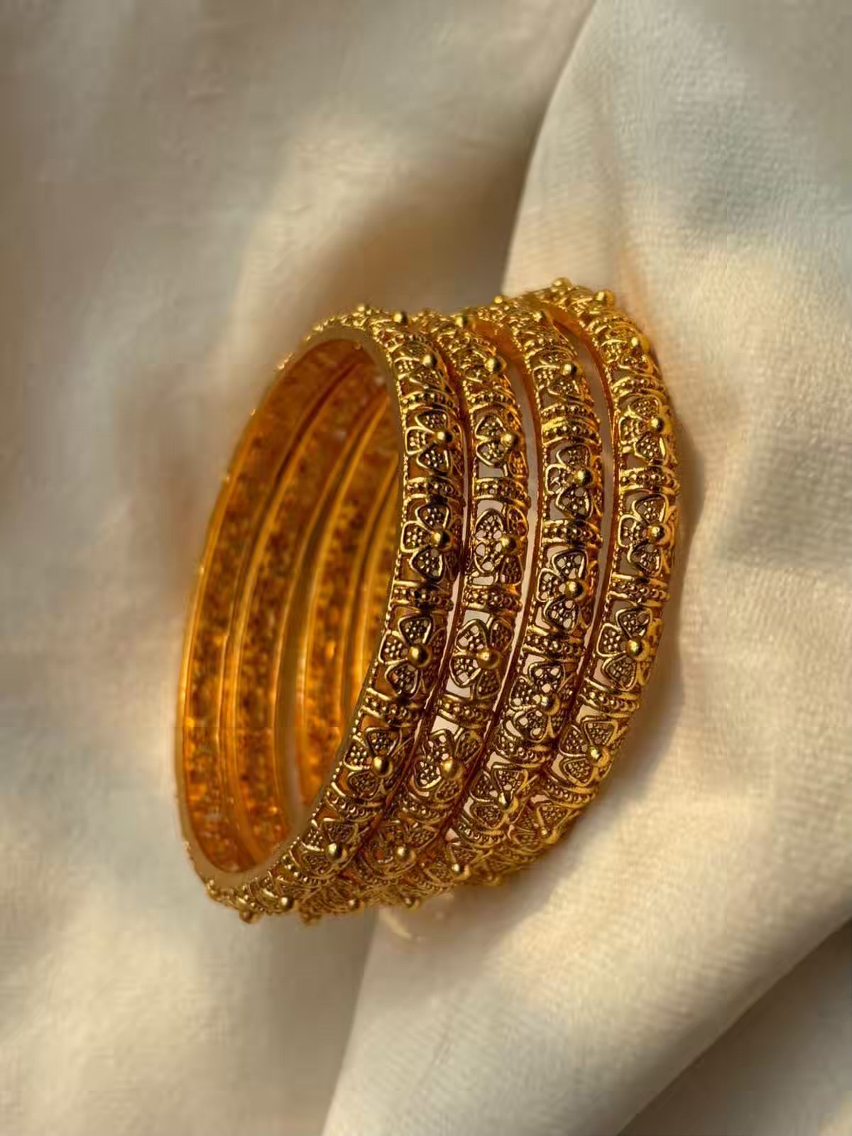 Traditional Floral Designer Bangle Gold (2.6) ( Set of 4)