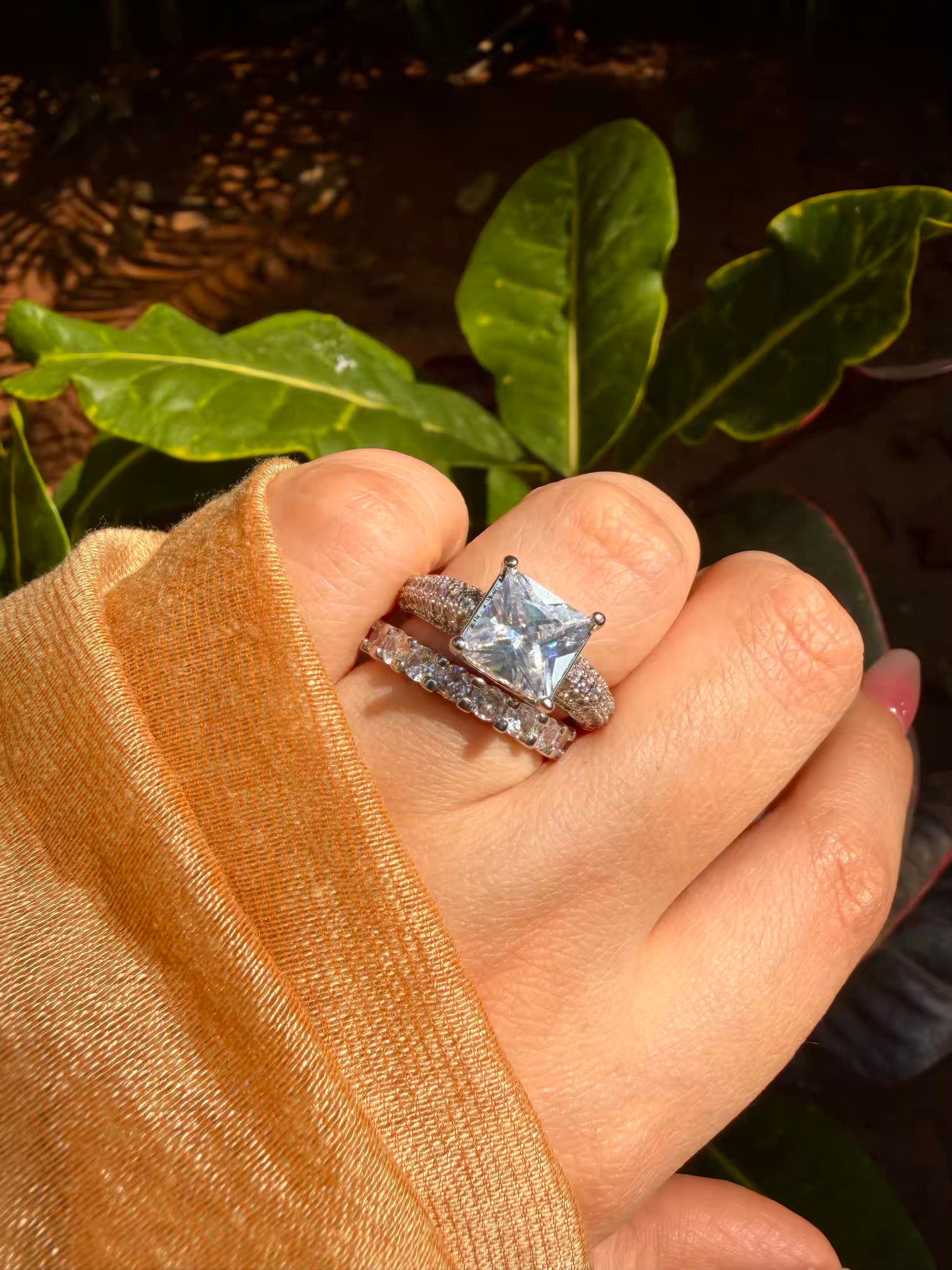 Queen Selena Diamonds Silver Plated Premium Ring Combo ( Solitaire + Band )