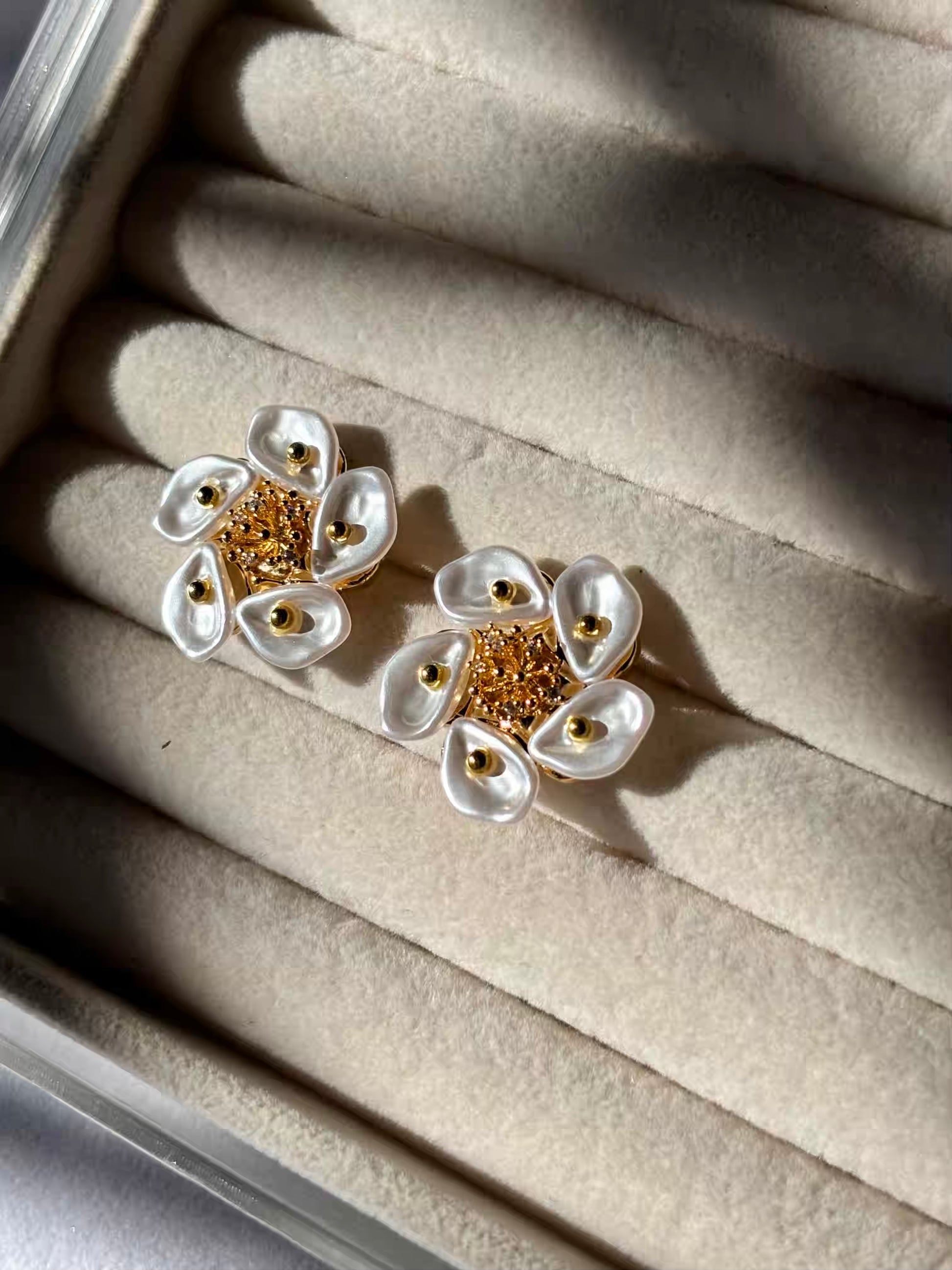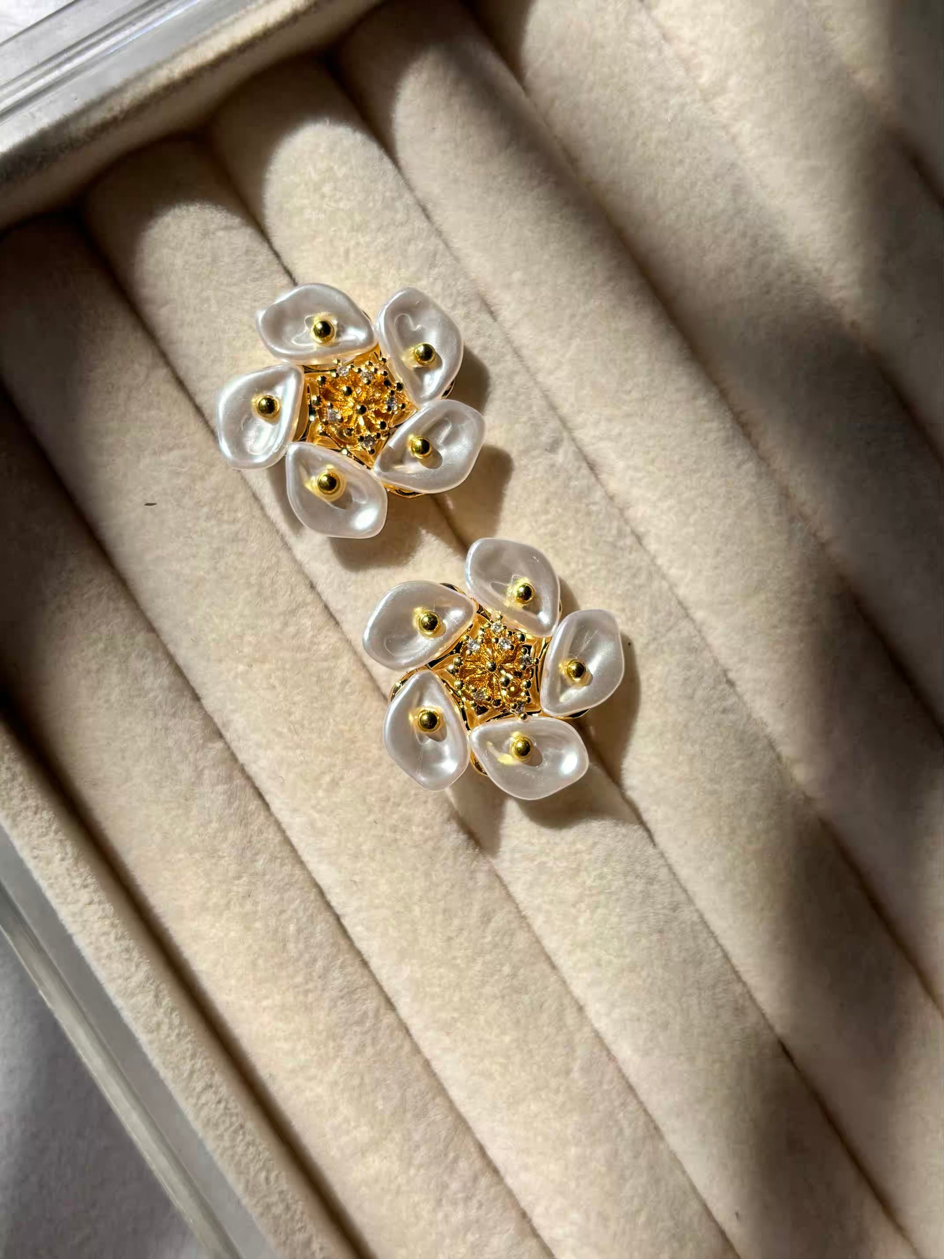 Pearly Sunflower Earrings Studs - Gold Plated