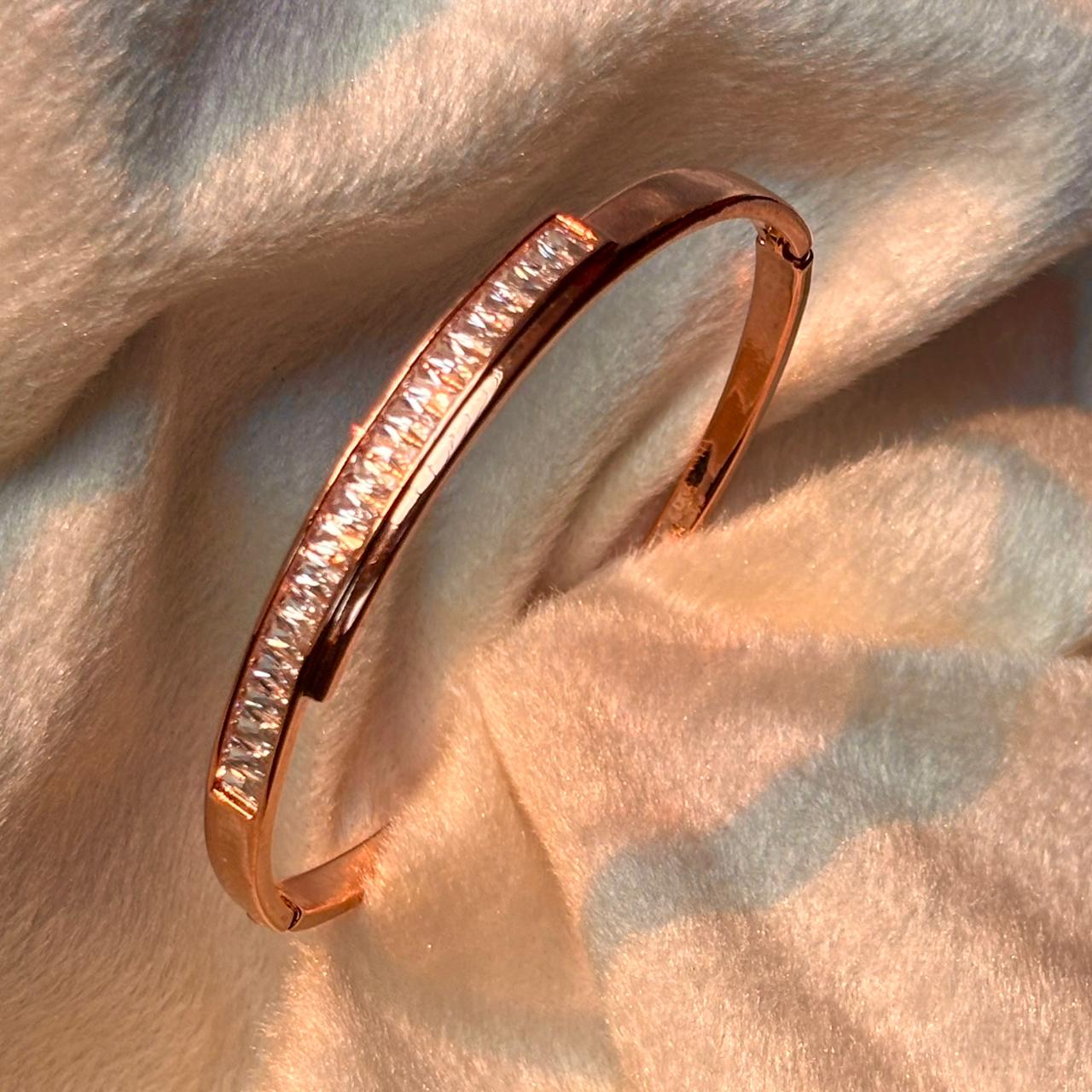 Princess Ariel Baguette Unique Stones Kadha Bracelet Bangle Rose Gold