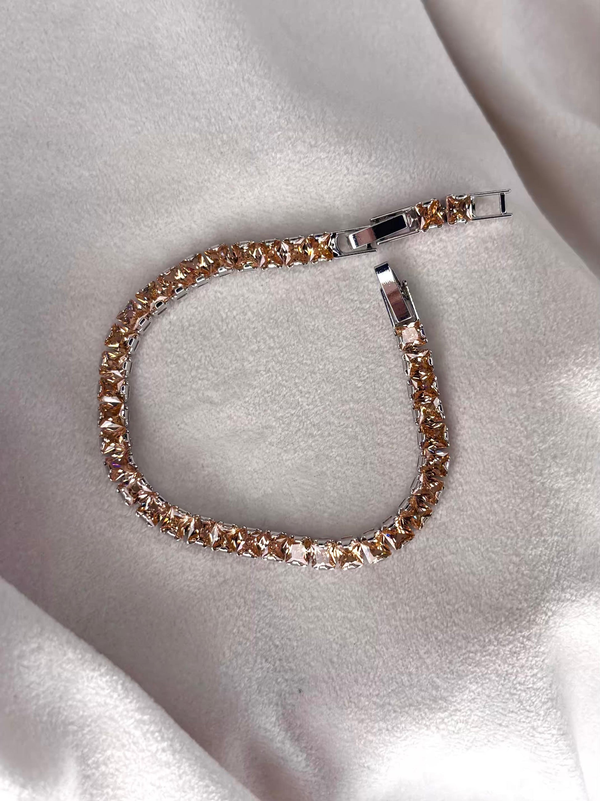 Brown Glitter Square Silver Plated Tennis Bracelet