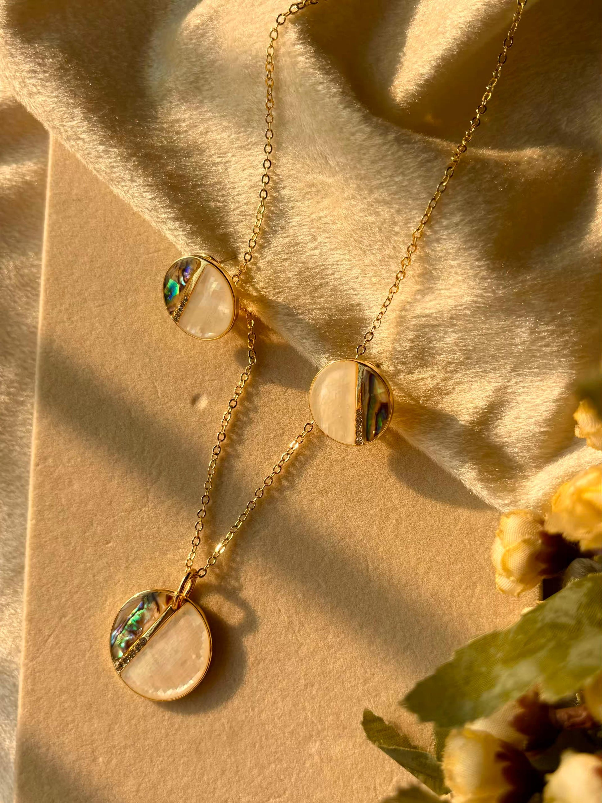 Fluorescent Shine Necklace And Ear Studds 18K Gold Plated Premium Necklace