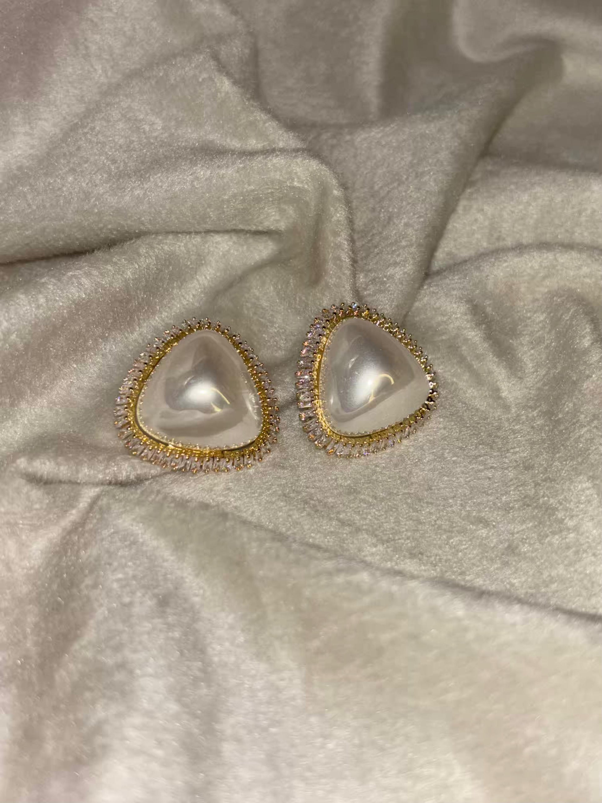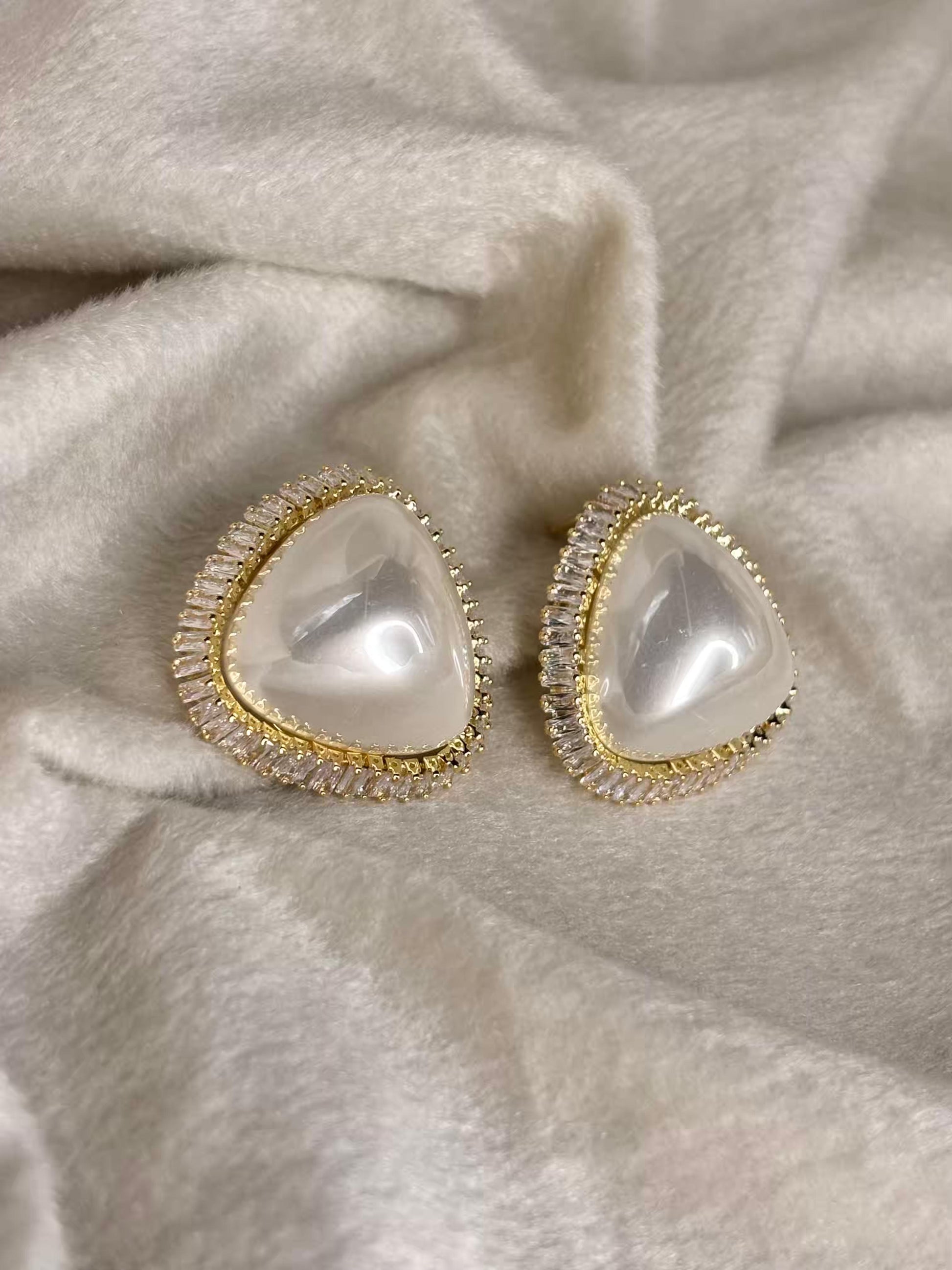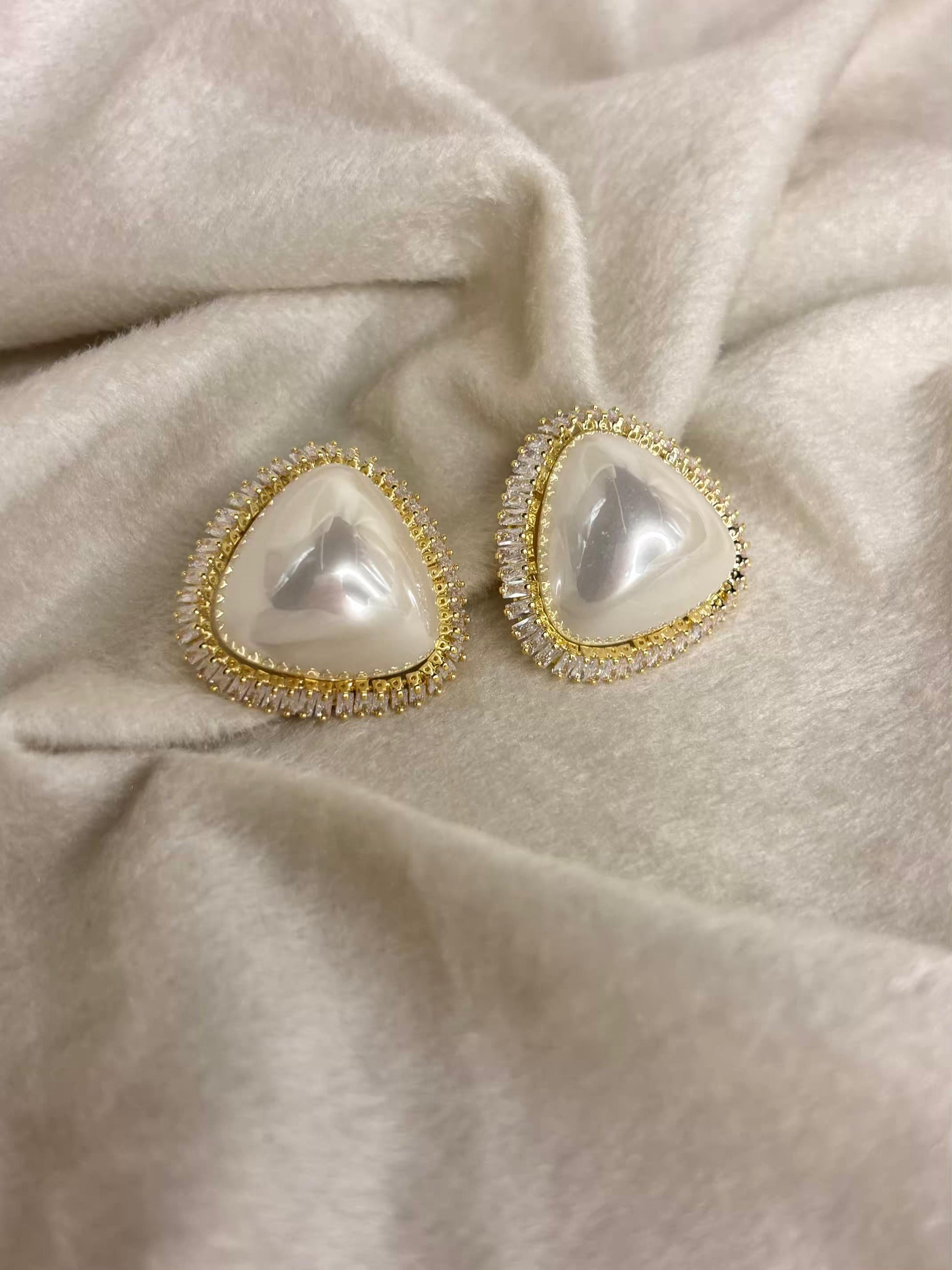 Gold Trimmed Pearl Earrings 18K Gold Plated Premium Earrings
