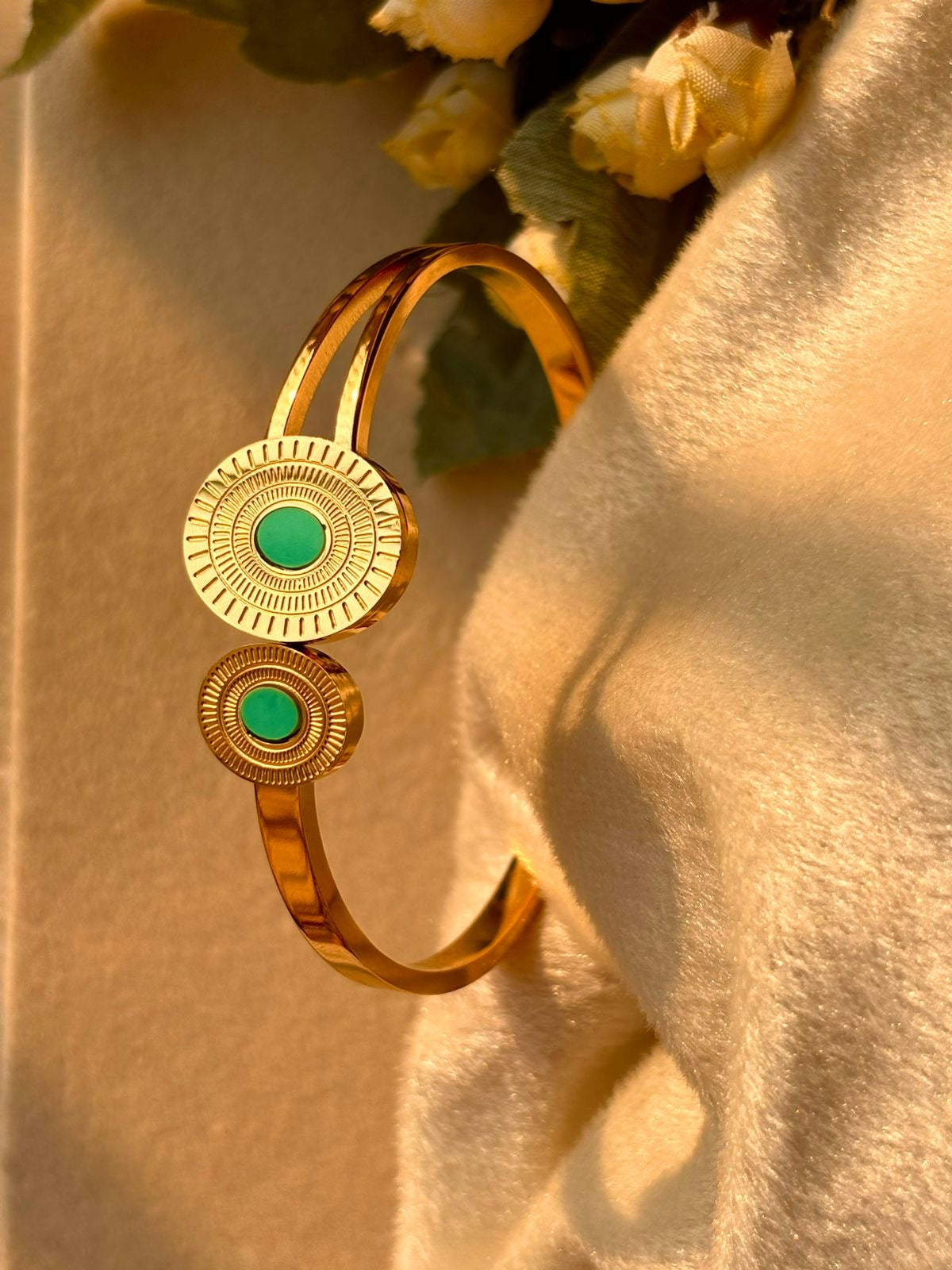 Turquoise Blue Stones Style Kada Bracelet Bangle - Gold