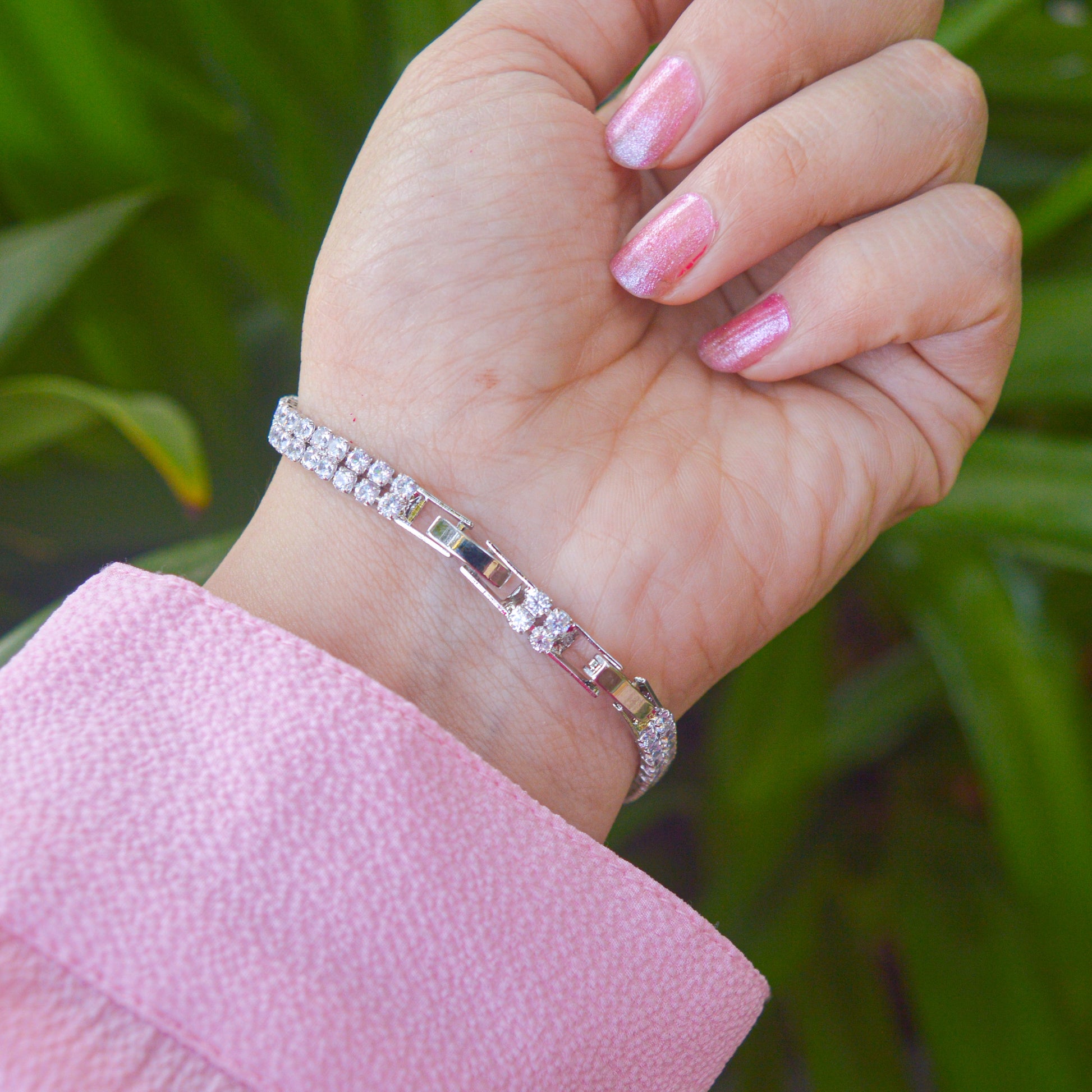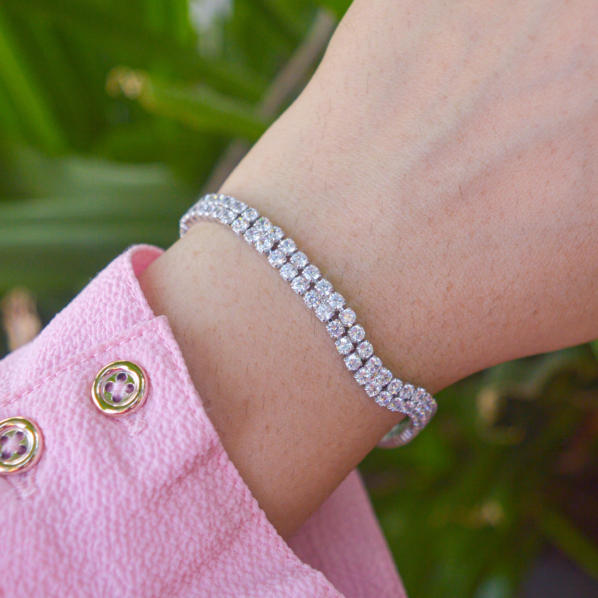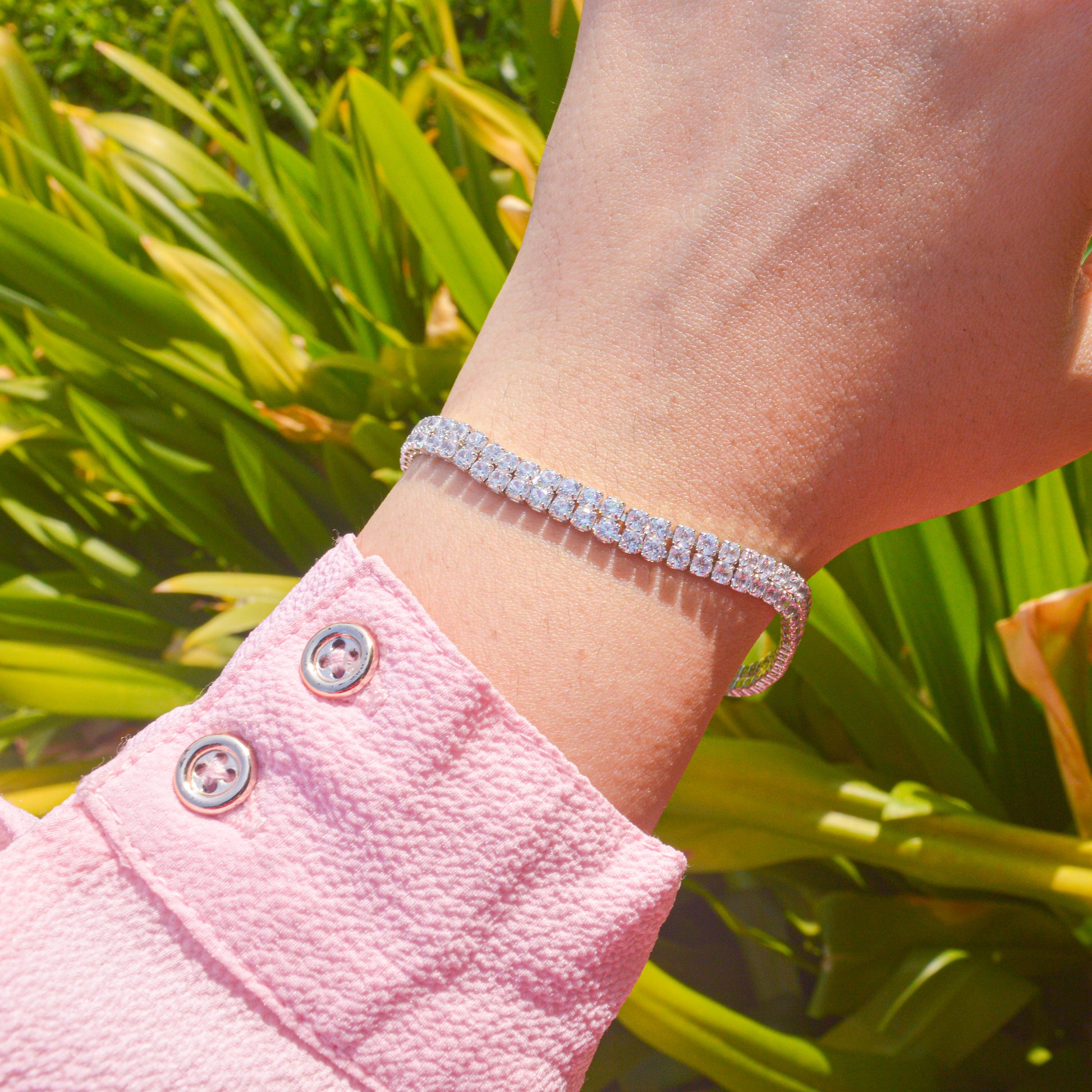 Round Diamonds Double Border Diamonds Tennis Bracelet - Silver Plated