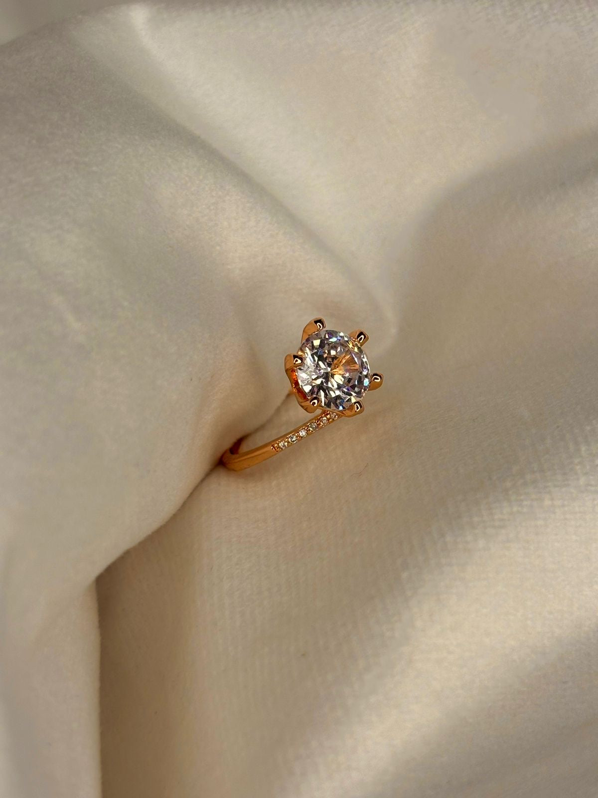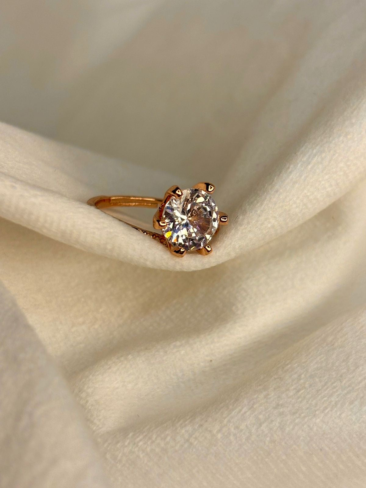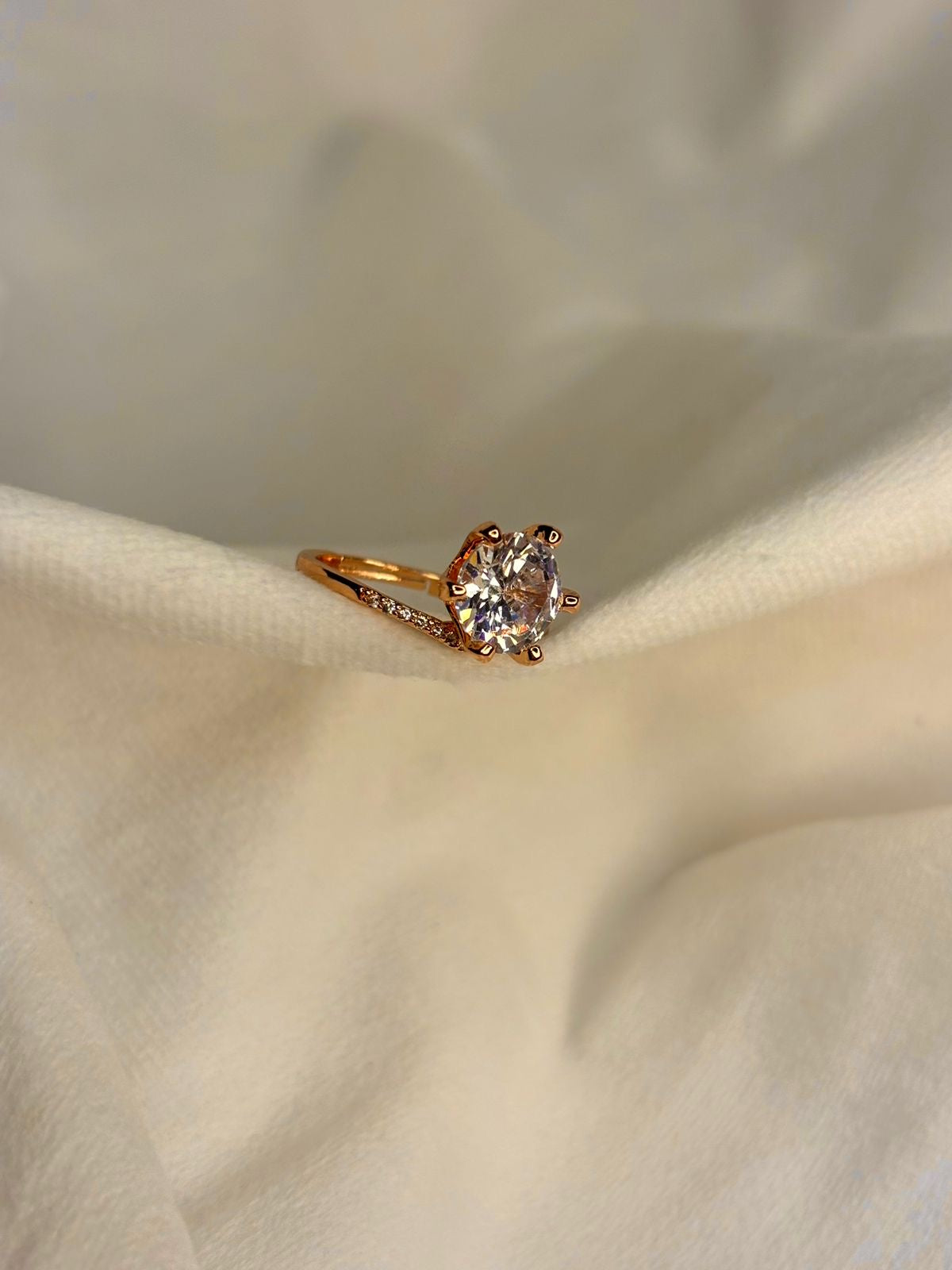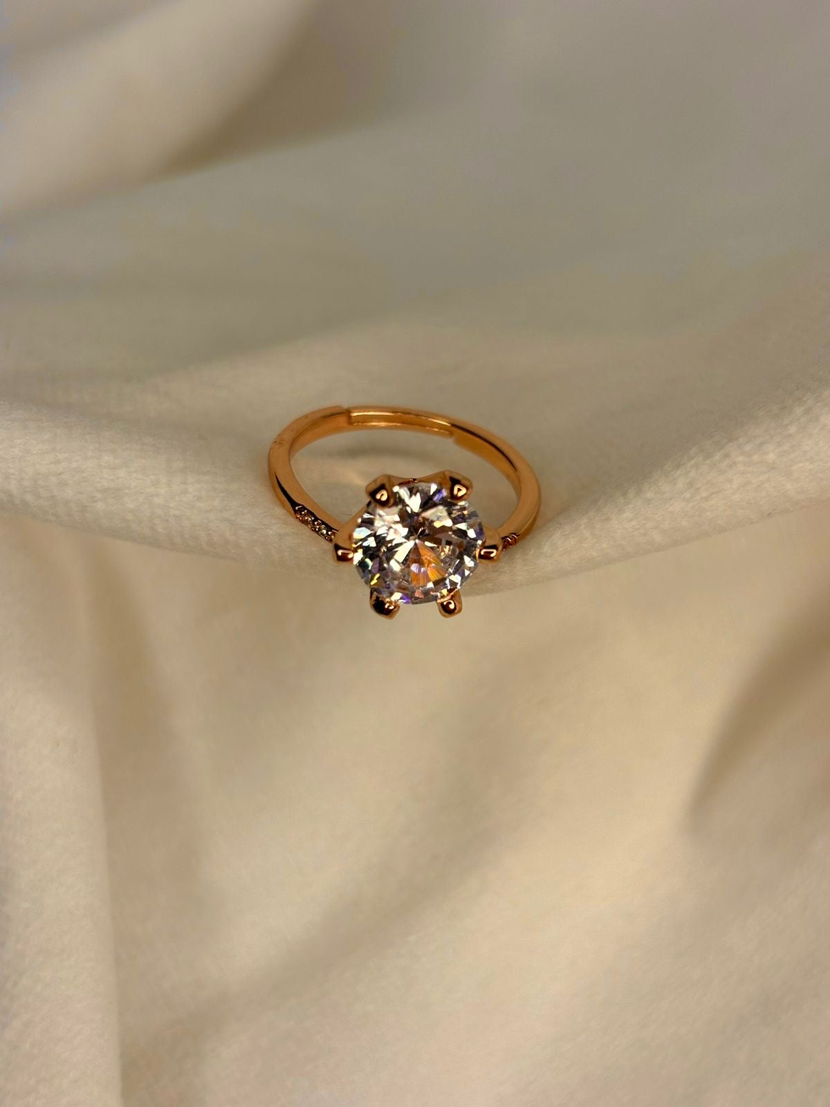 Round V Solitaire Ring( Rose Gold )Adjustable