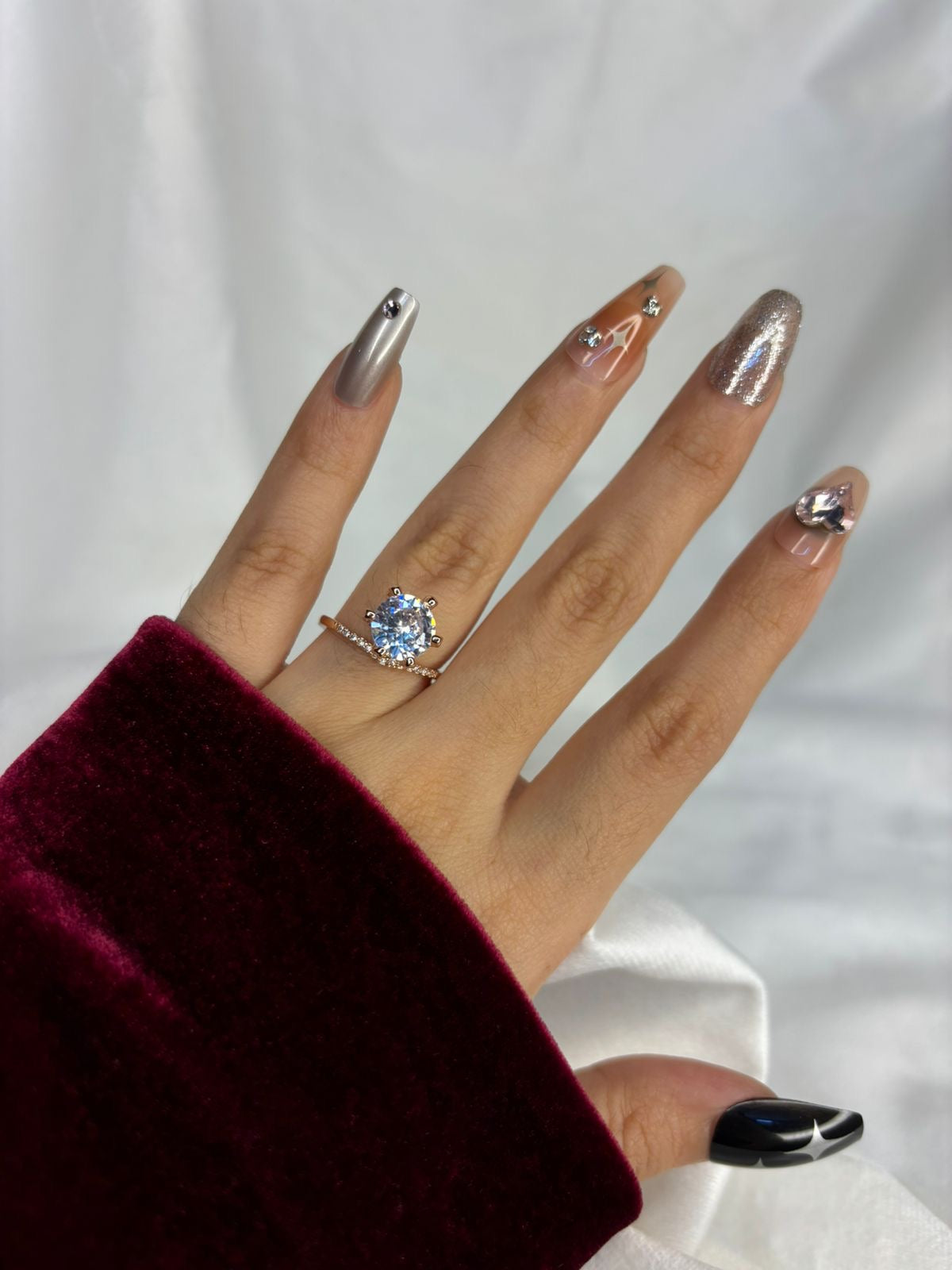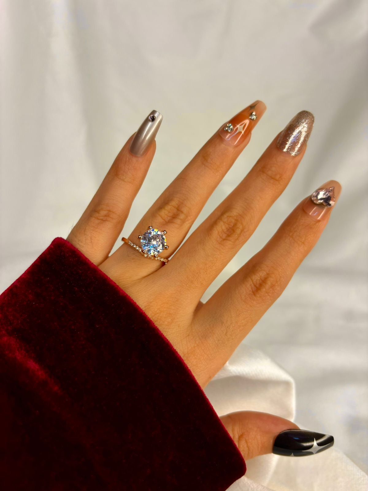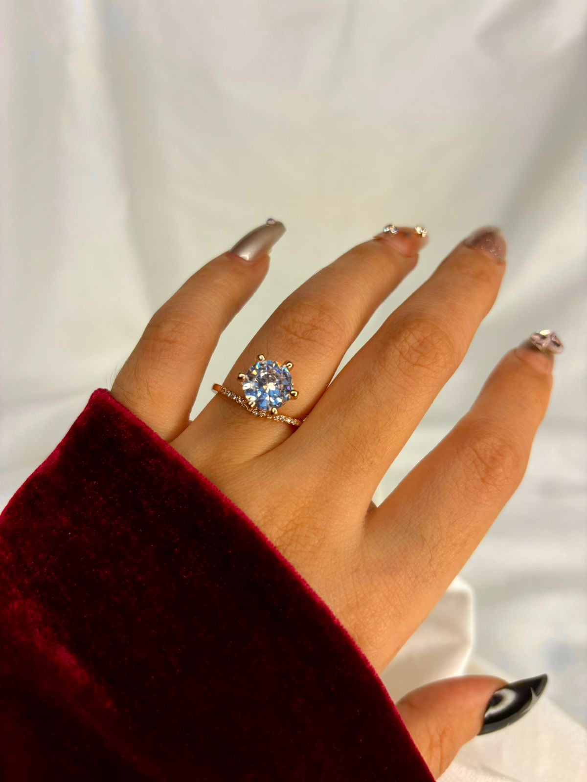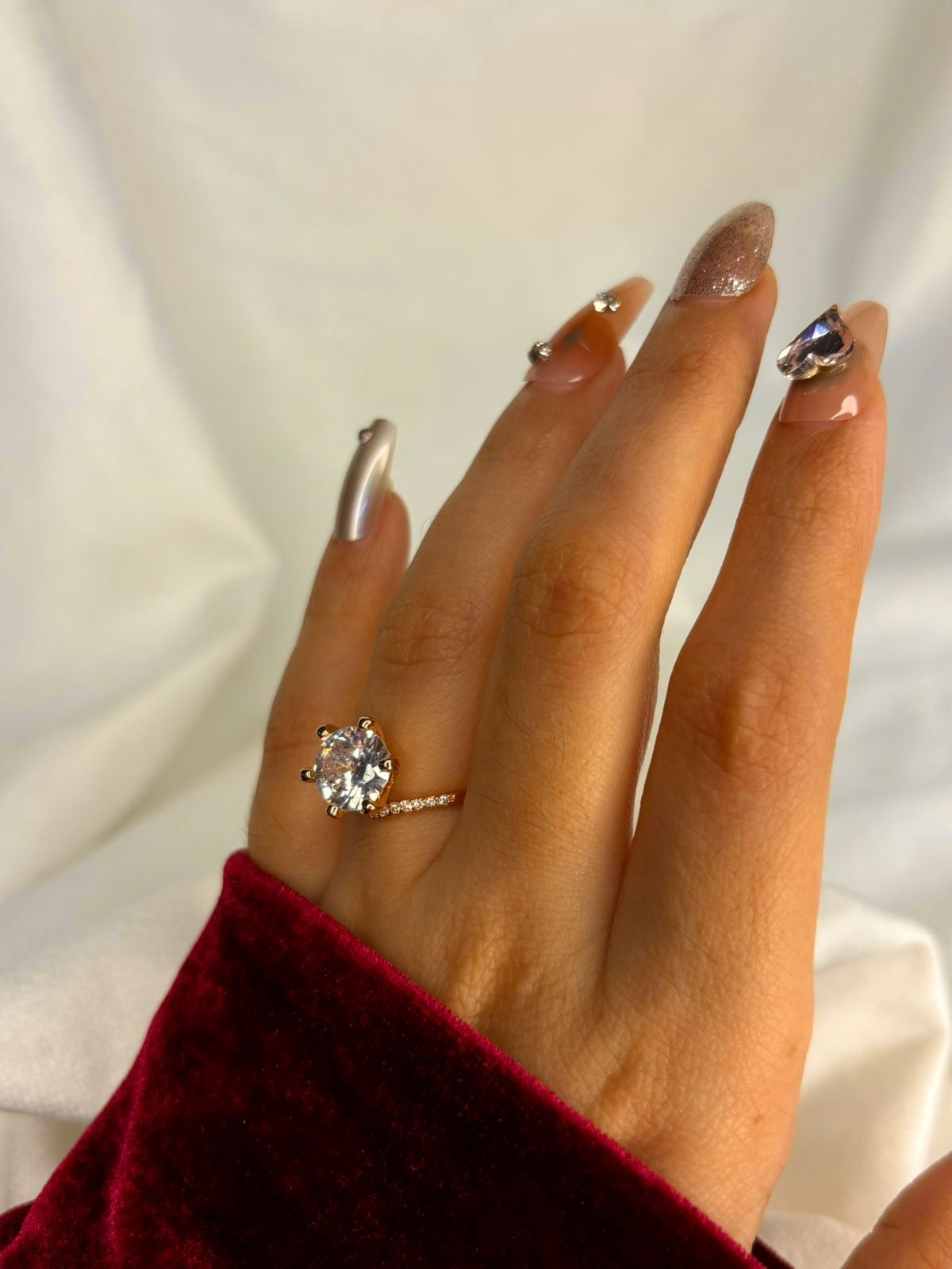 Round V Solitaire Ring( Rose Gold )Adjustable