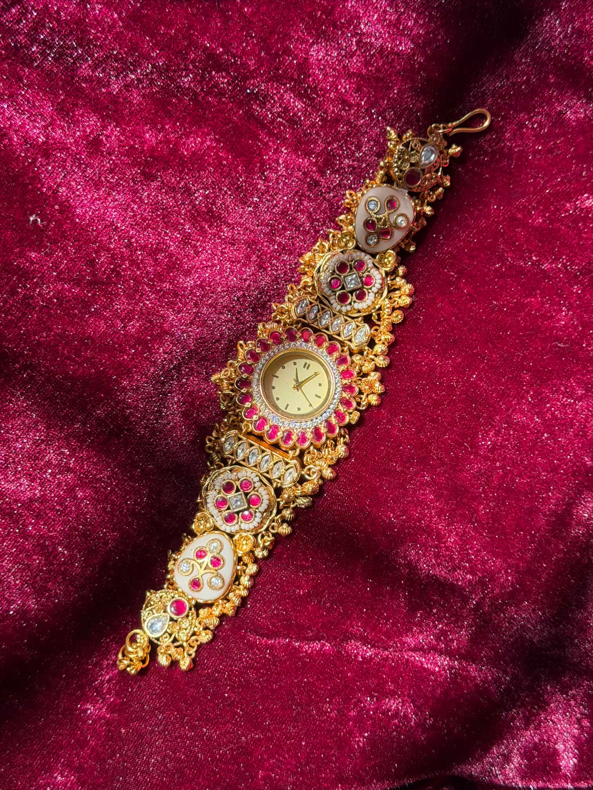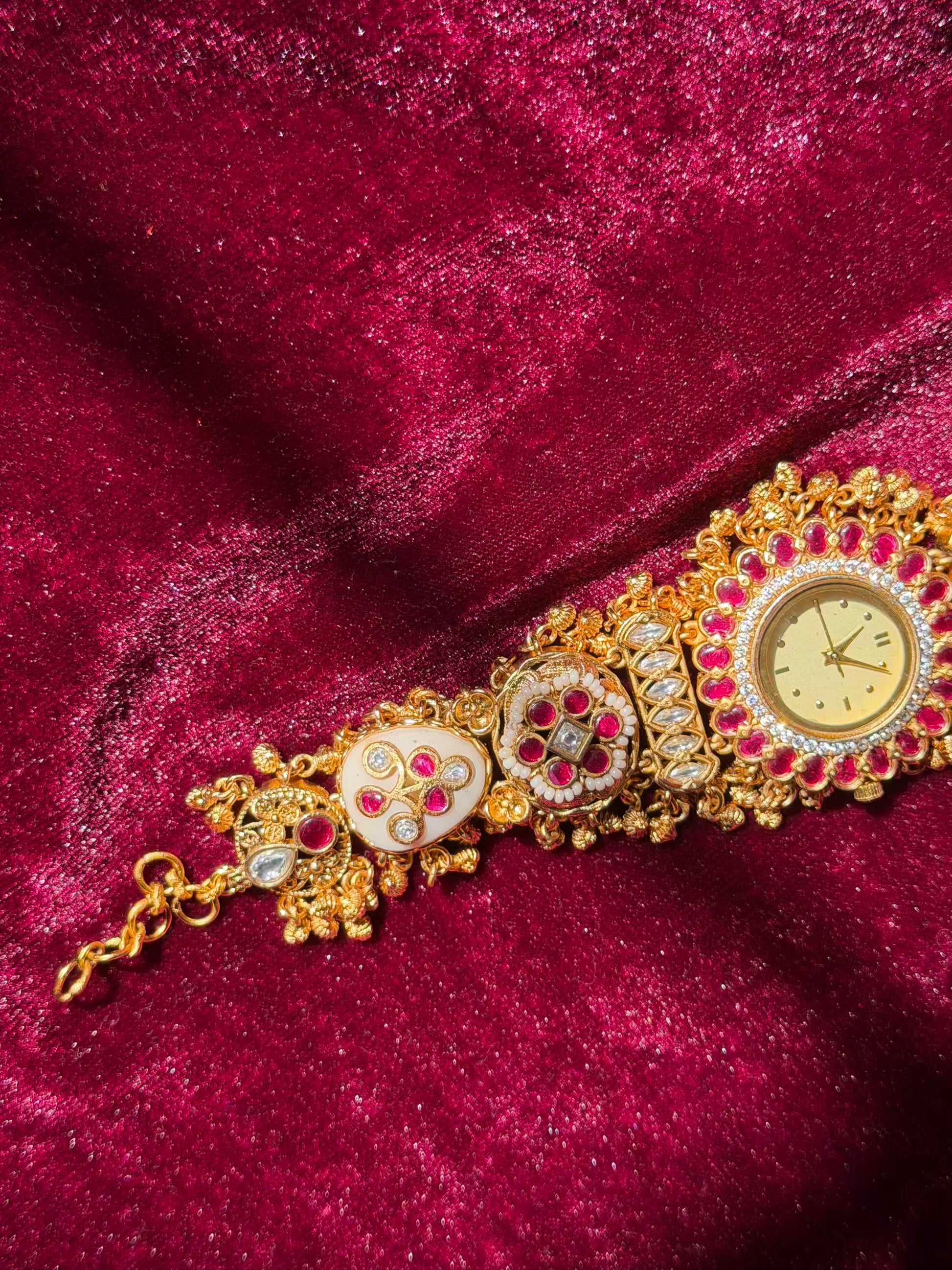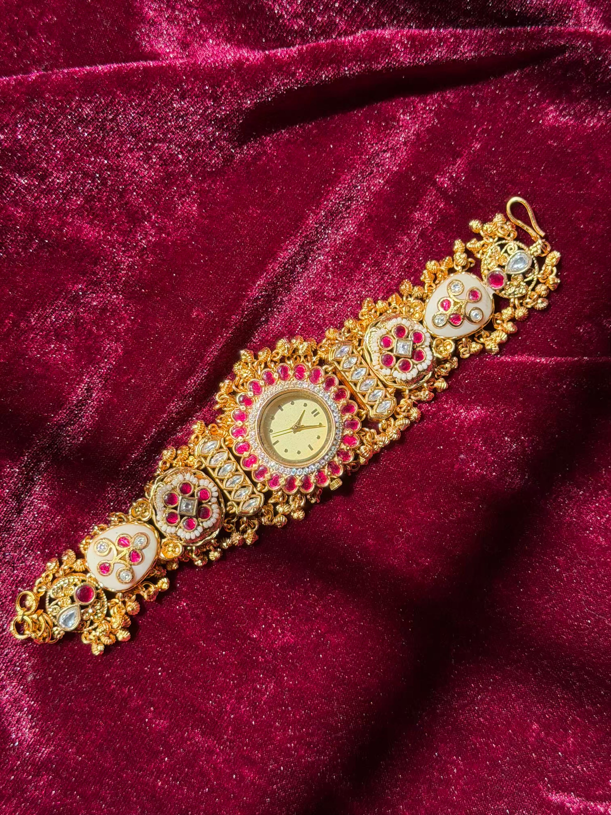 Mahalaxmi Inspired Rudra Motif Creamy Kundan Gold Plated Heritage Maharani Watch ( Partial COD 200₹ )