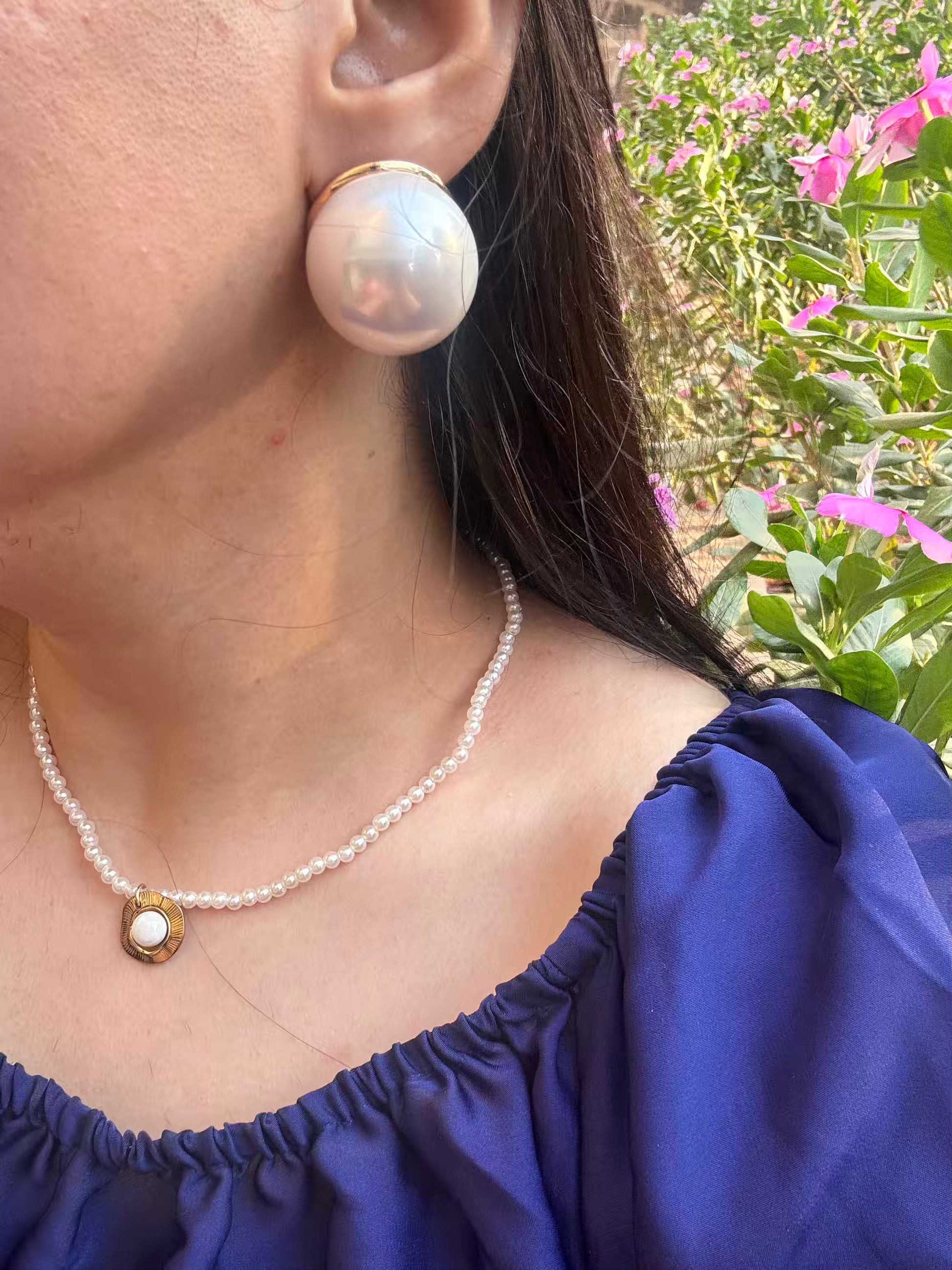 Pure White Oversized 2.8cm Pearl Clip ons Studs Earrings - Gold Plated ( ORDER Carefully NO EXCHANGE for SIZE Issues)