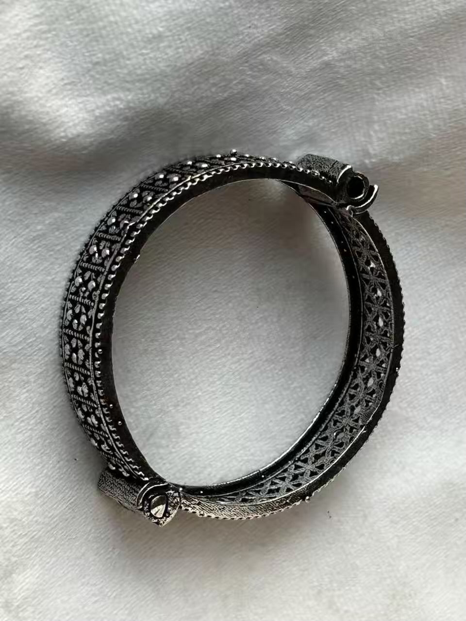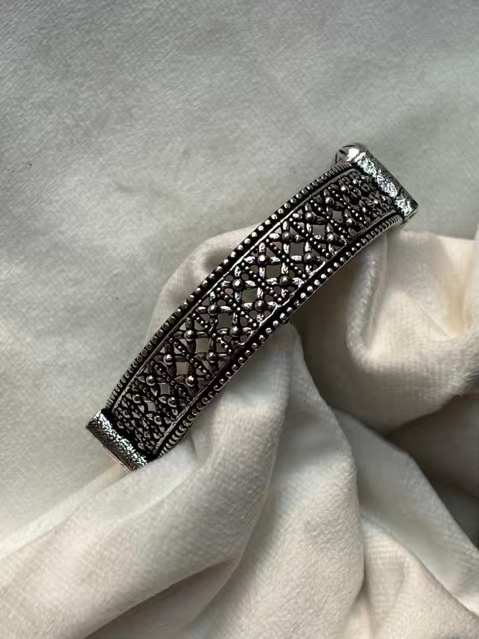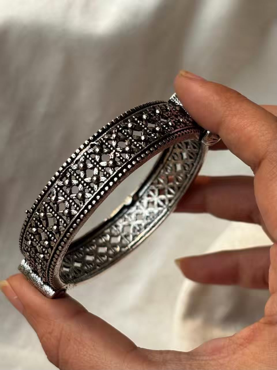 Tiny Flower Oxidised Screw Bangle ( Oxidised Silver )