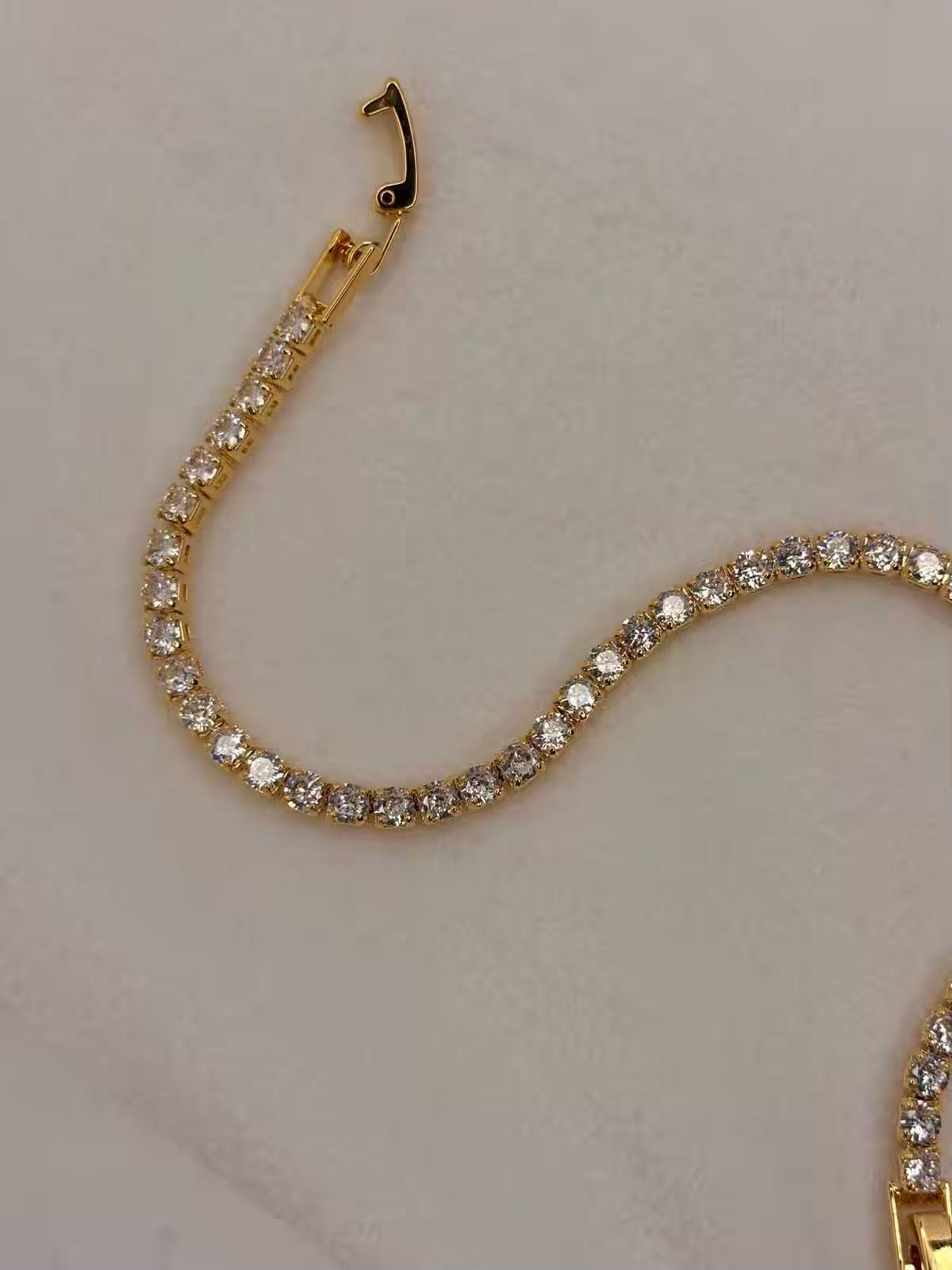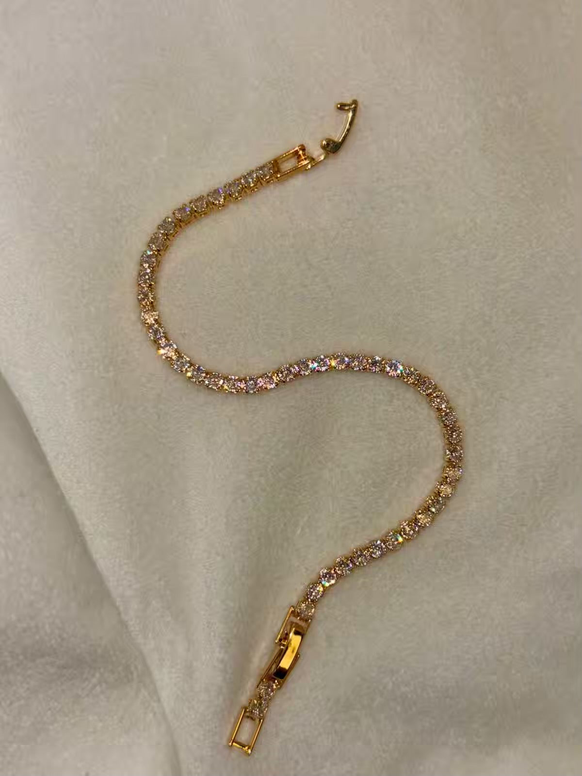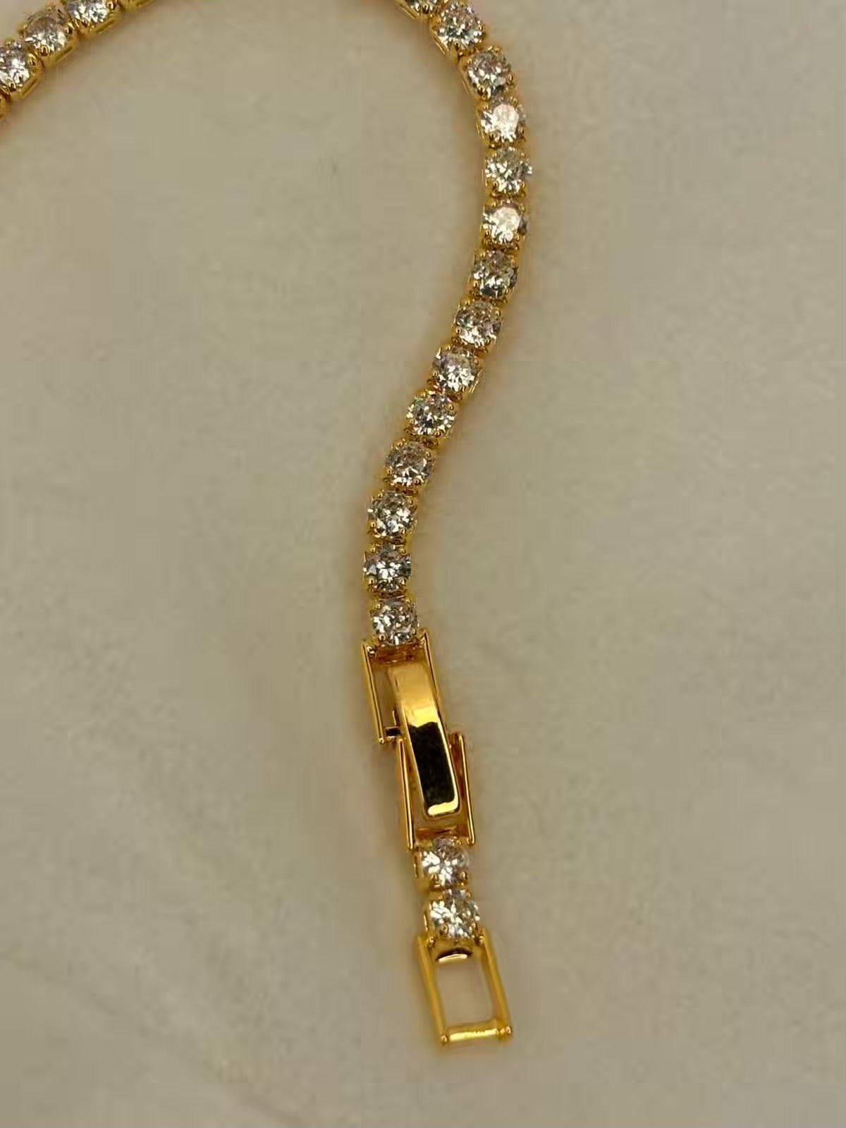 Shining Solitaire Diamonds Tennis Bracelet - Gold Colour ( Unisex )