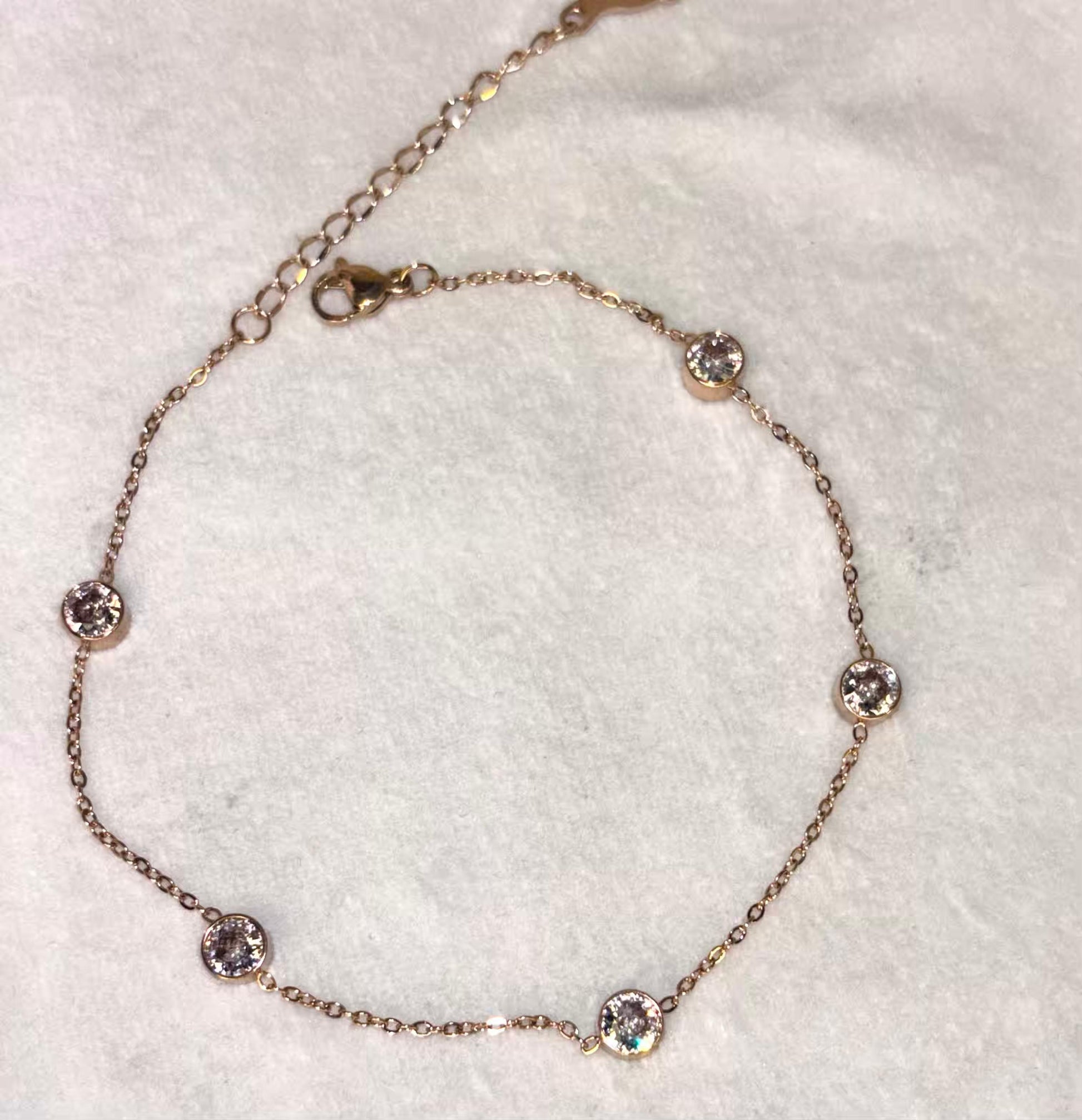 Minimal Round Studded 18K Gold Plated Premium Anklet Payal with Golden hooks