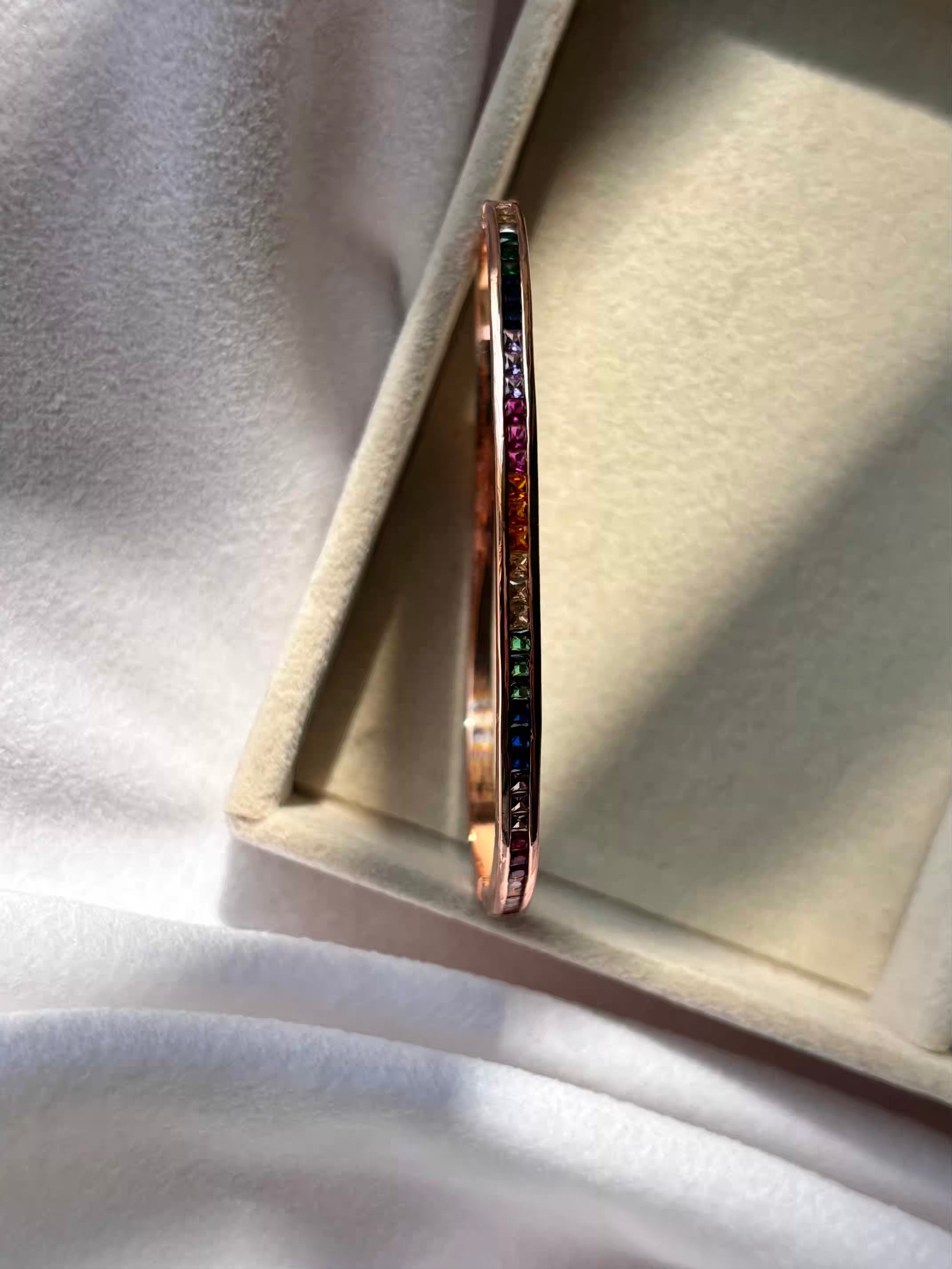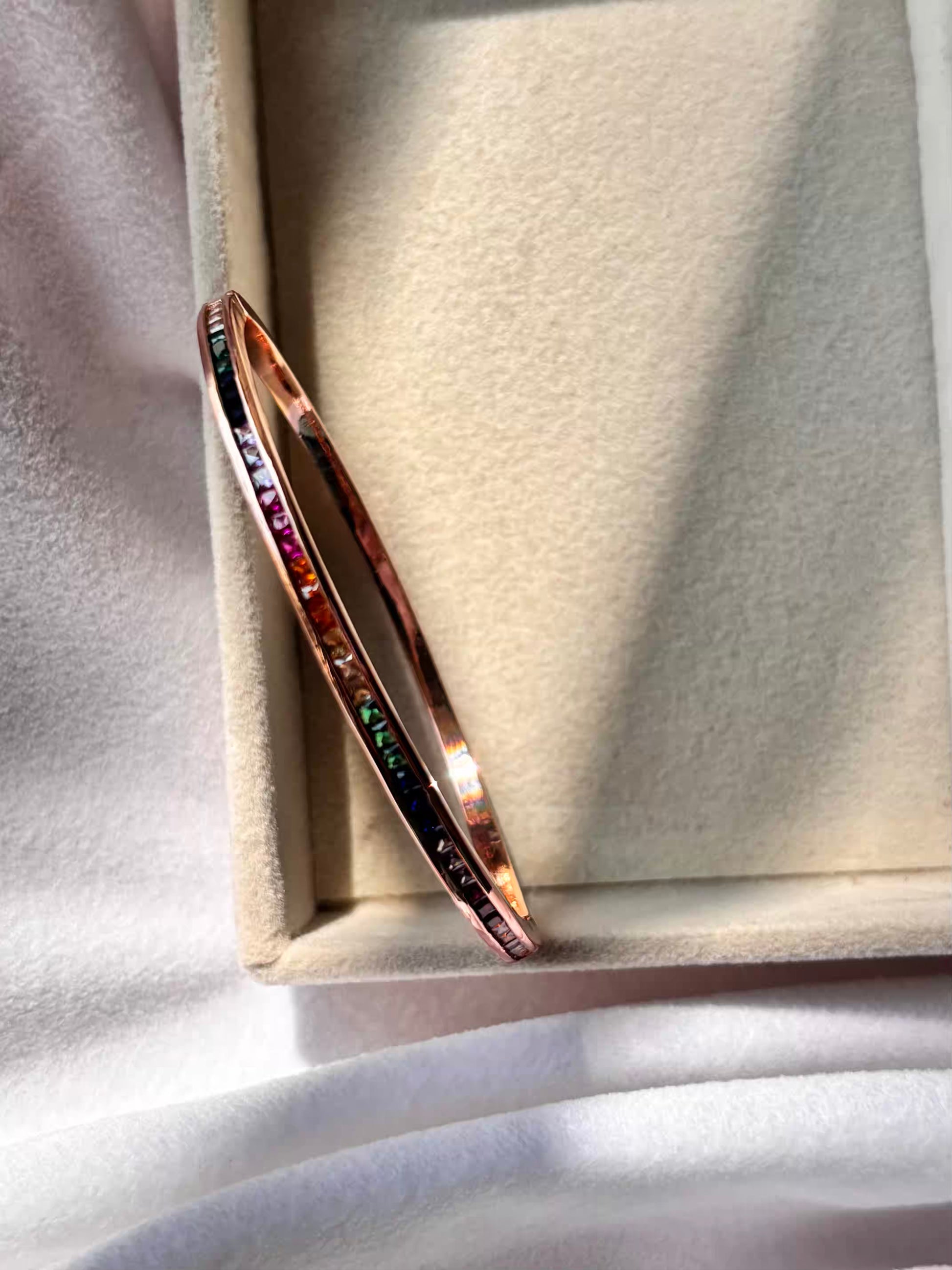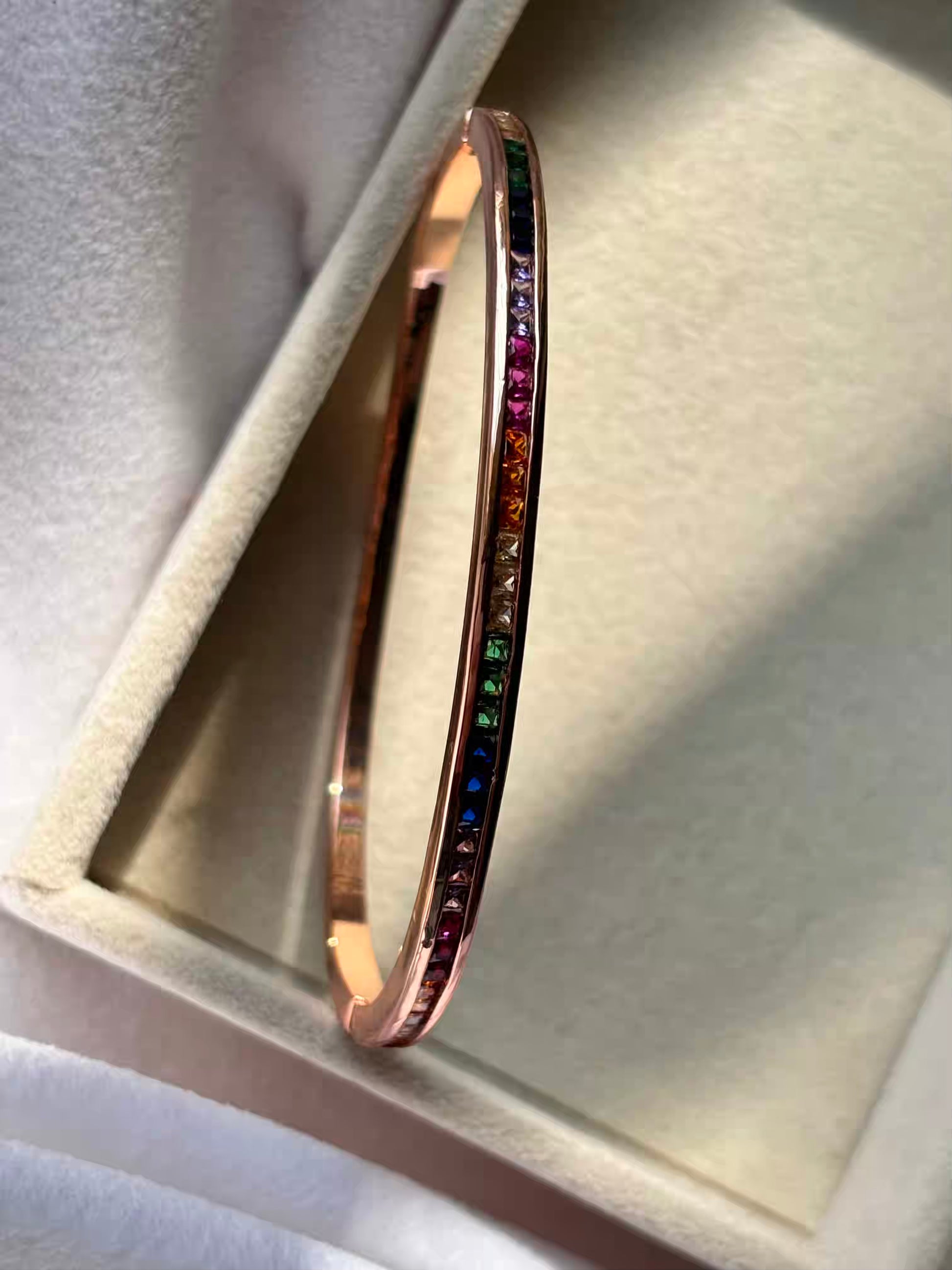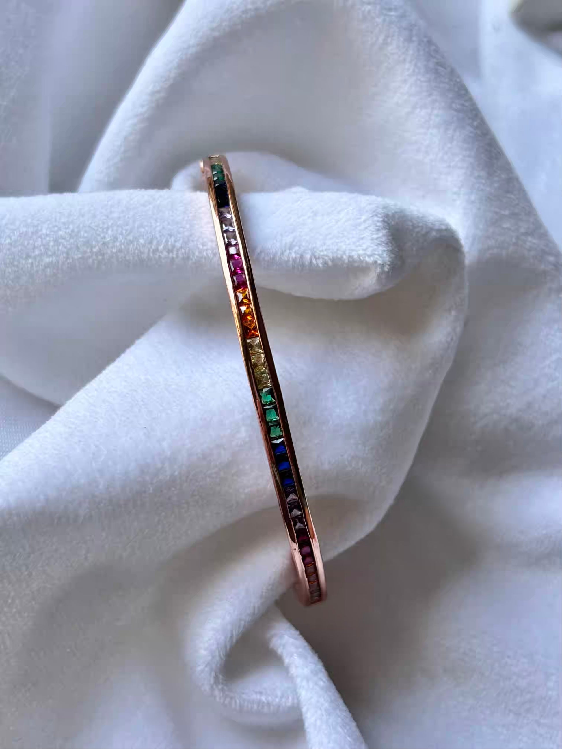 Minimal Rainbow Colourful Kada Bracelet Bangle - Rose Gold