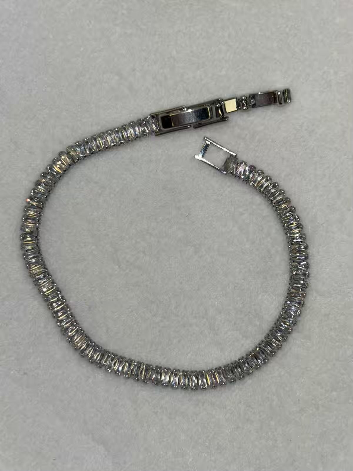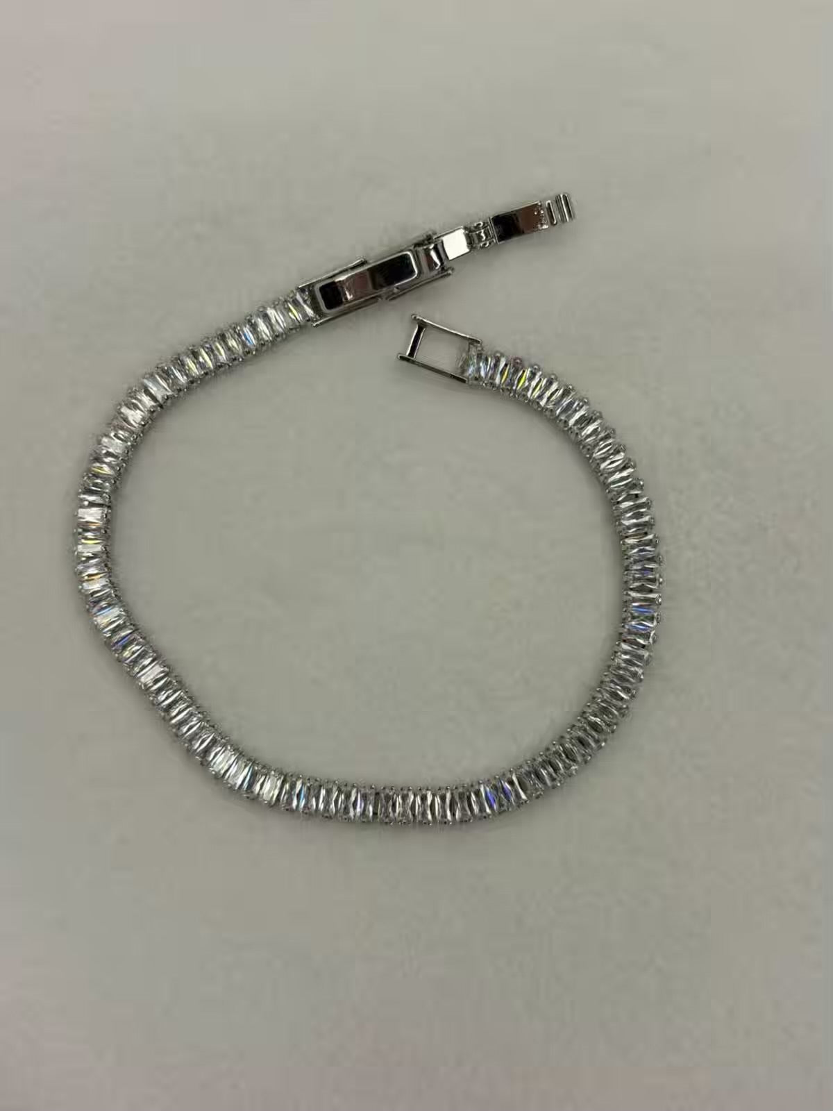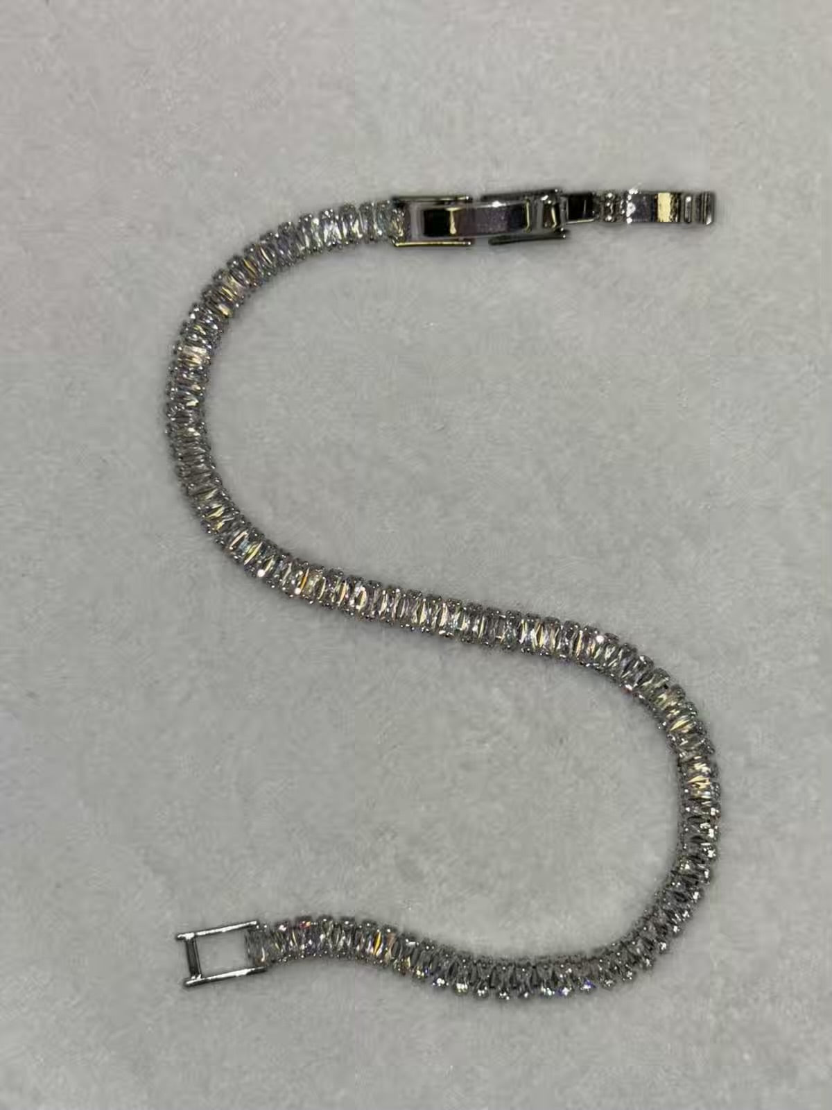 Single Line Solitaire Diamonds Tennis Bracelet - Silver Colour ( Unisex )