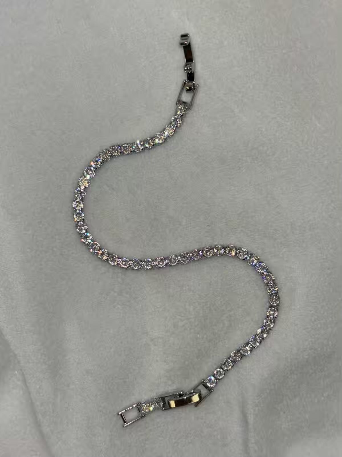 Shining Solitaire Diamonds Tennis Bracelet - Silver Colour ( Unisex )
