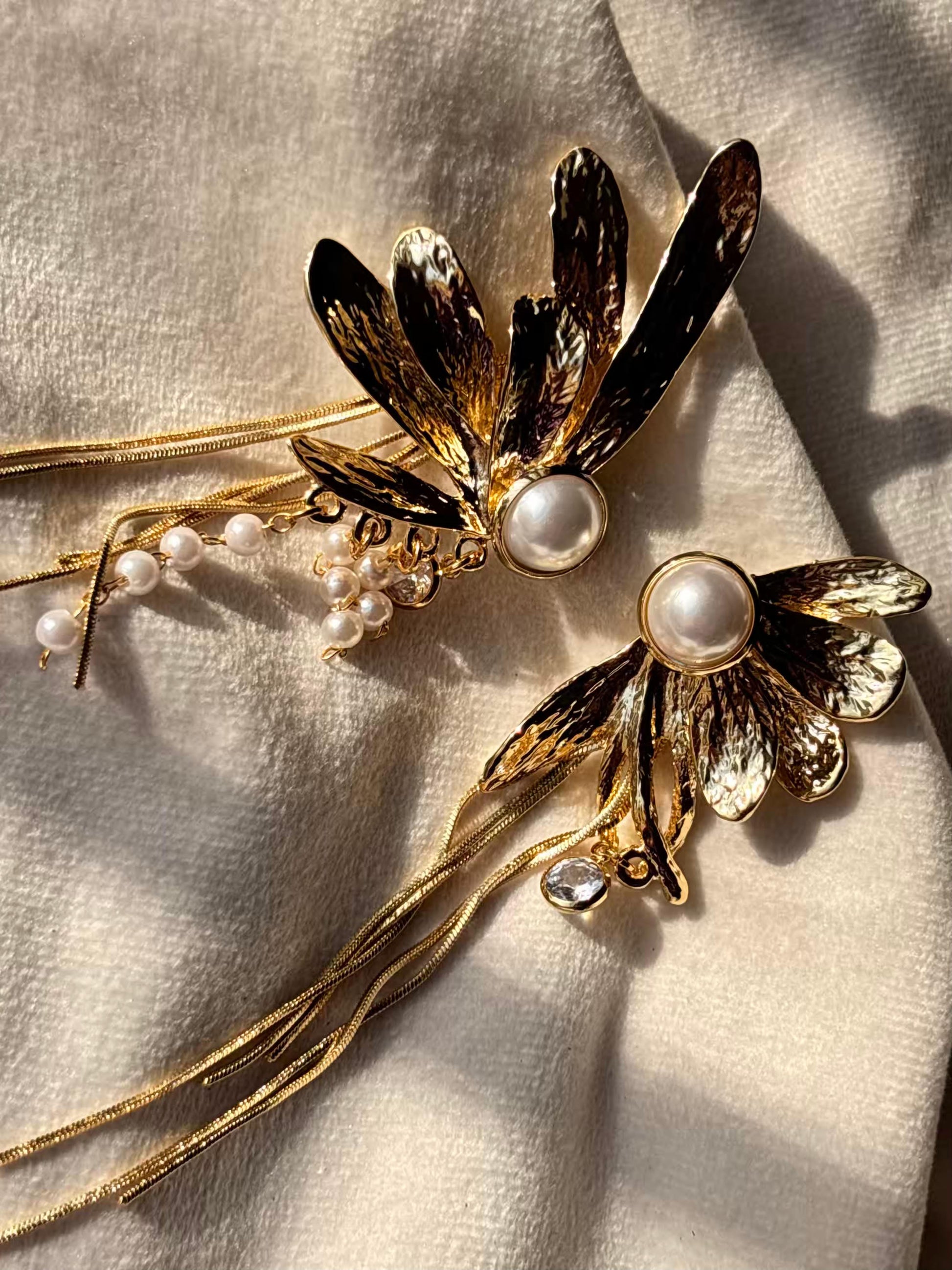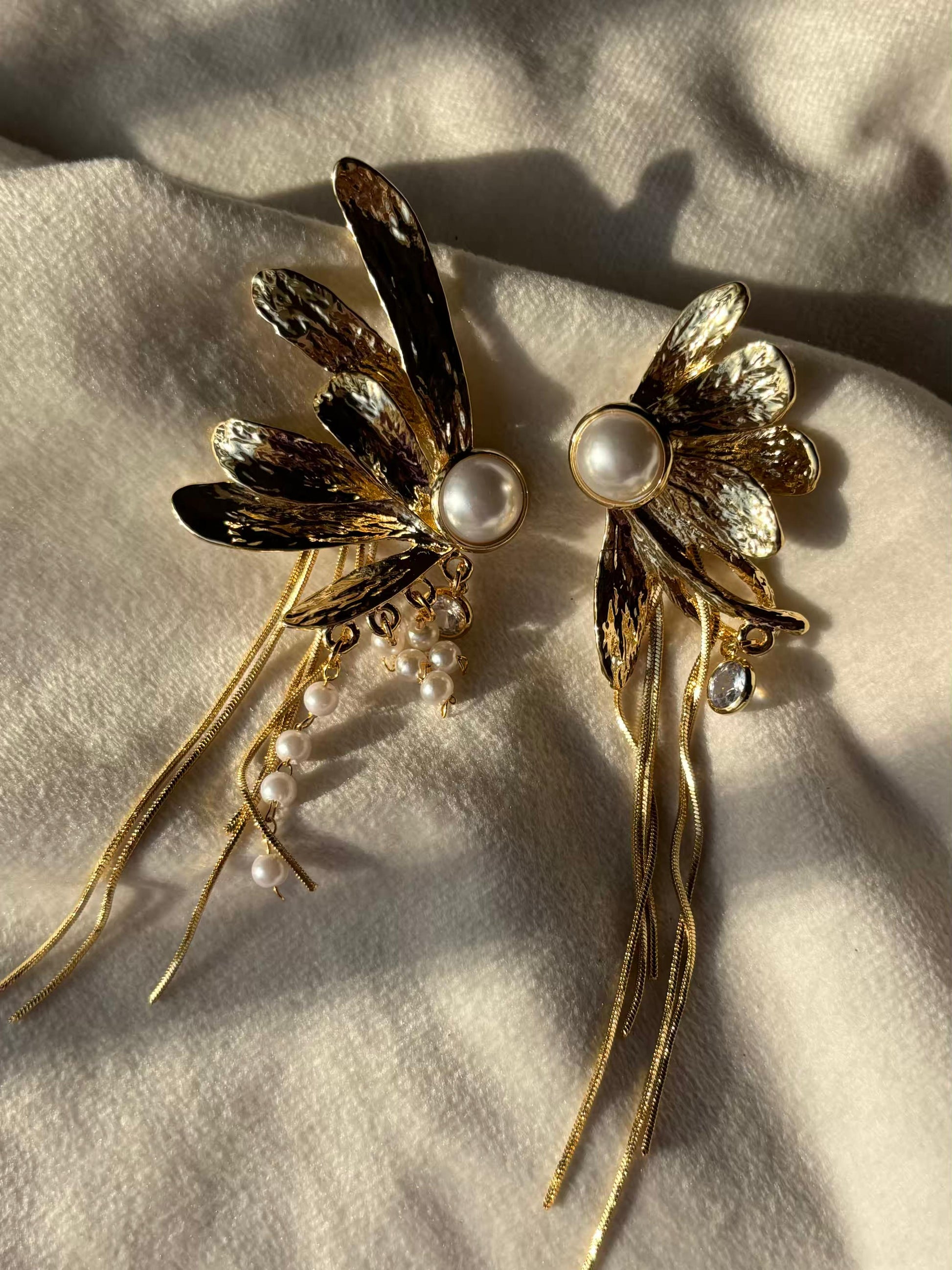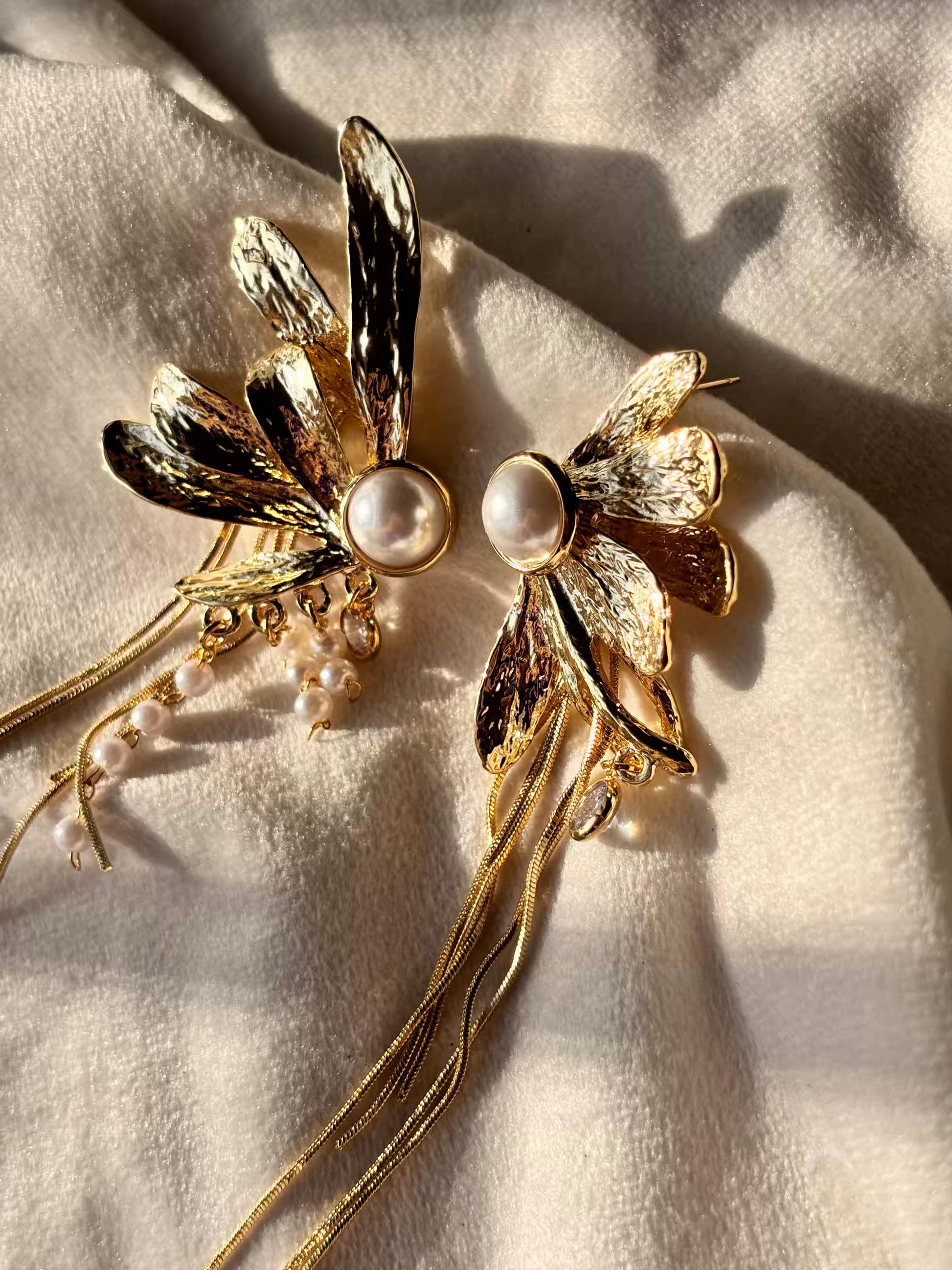 Half Pearl Dangles Studds Earrings 18K Gold Plated Premium Earrings