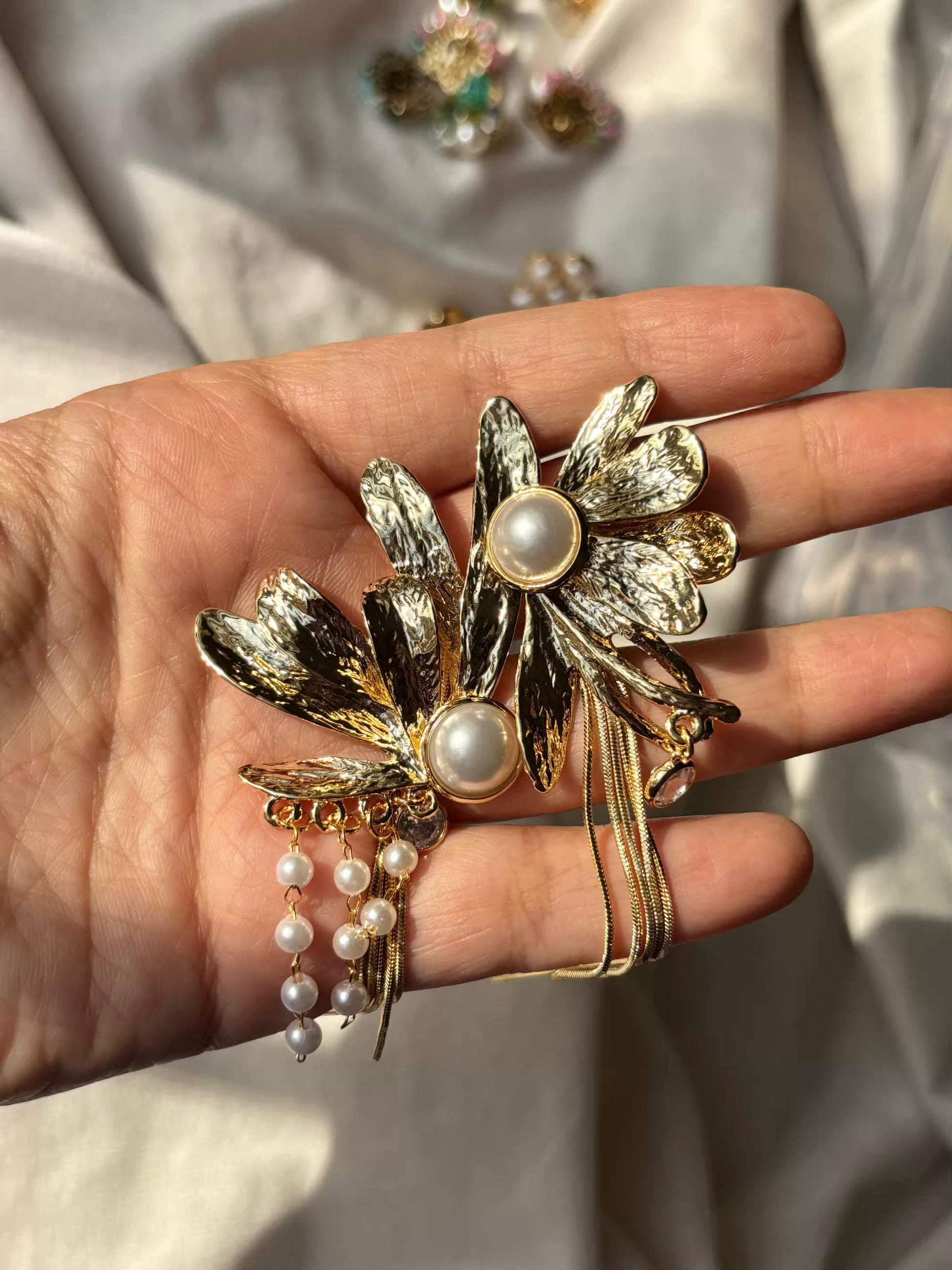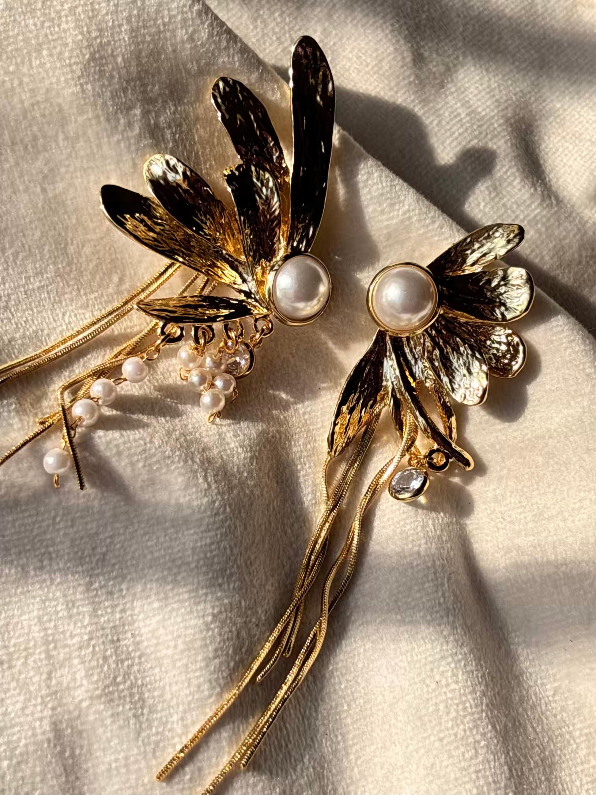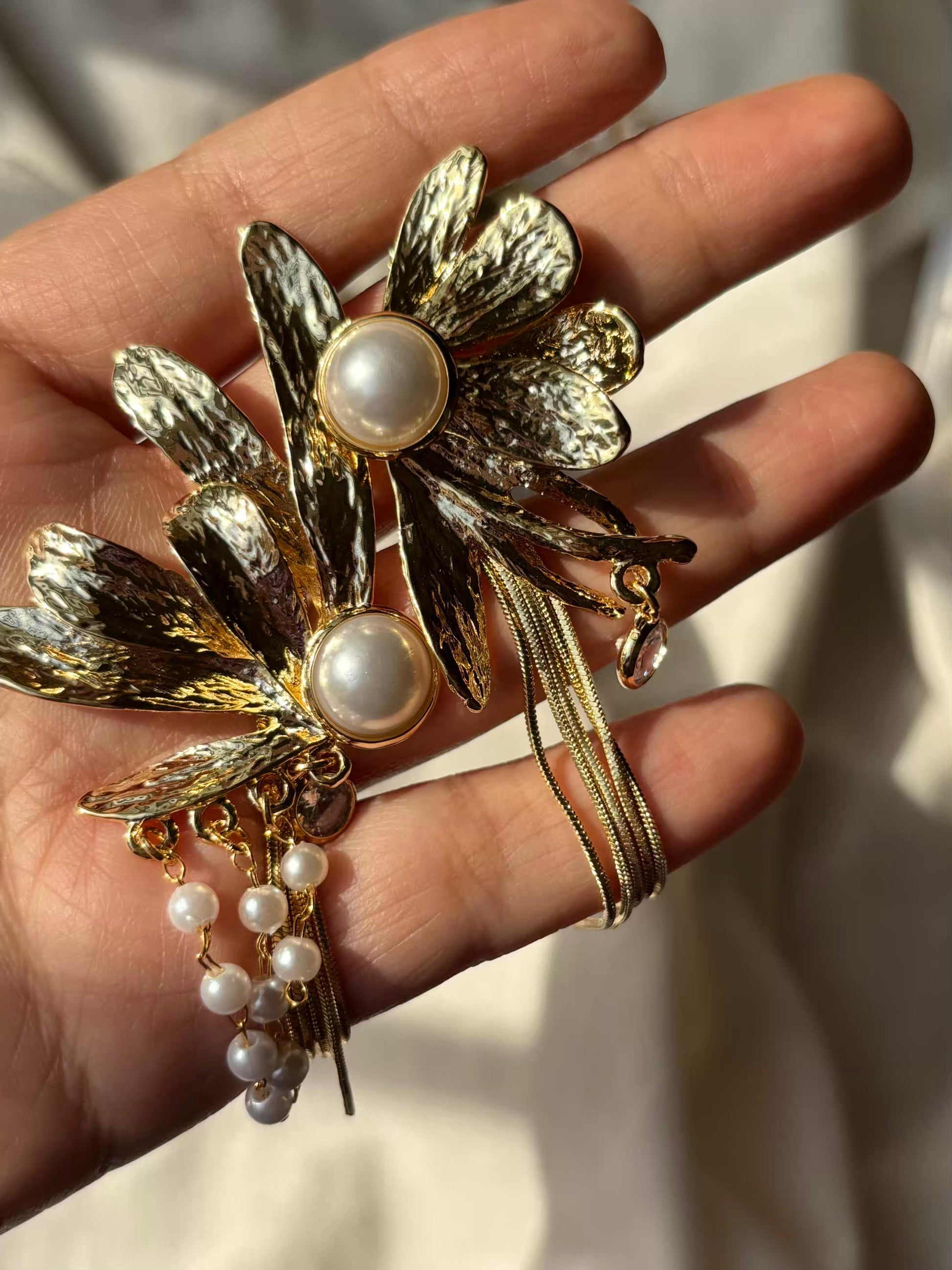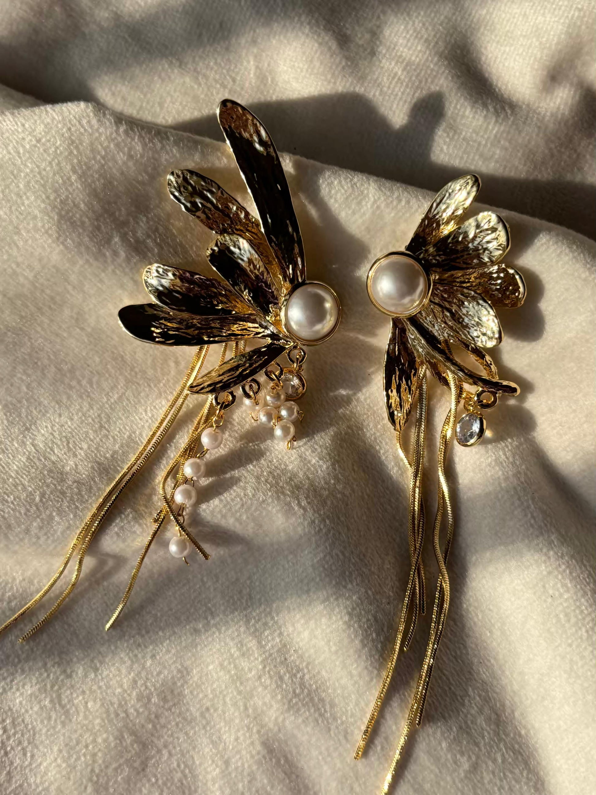 Half Pearl Dangles Studds Earrings 18K Gold Plated Premium Earrings