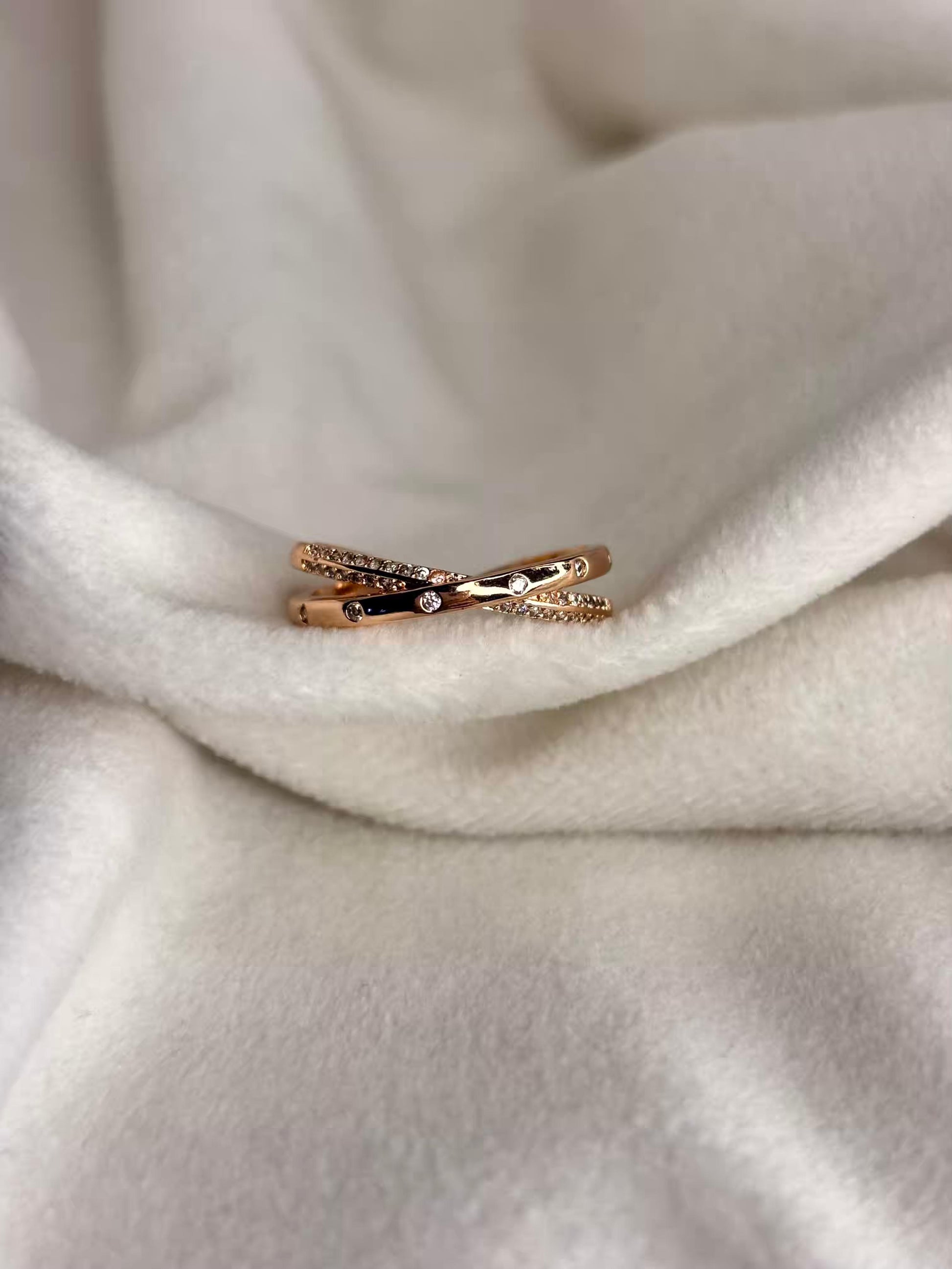 Criss Cross Statement Ring Rose Gold Plated Adjustable Ring
