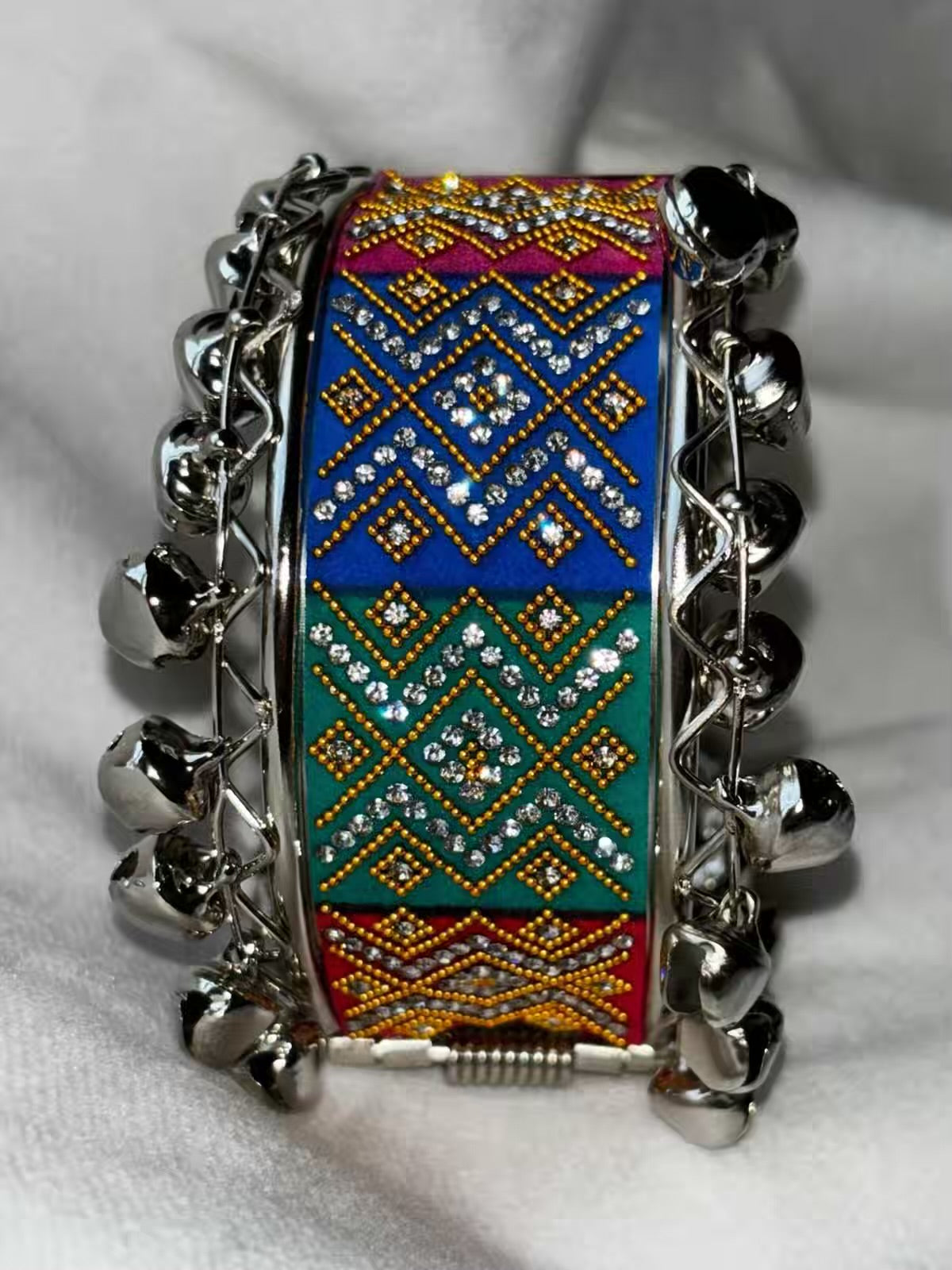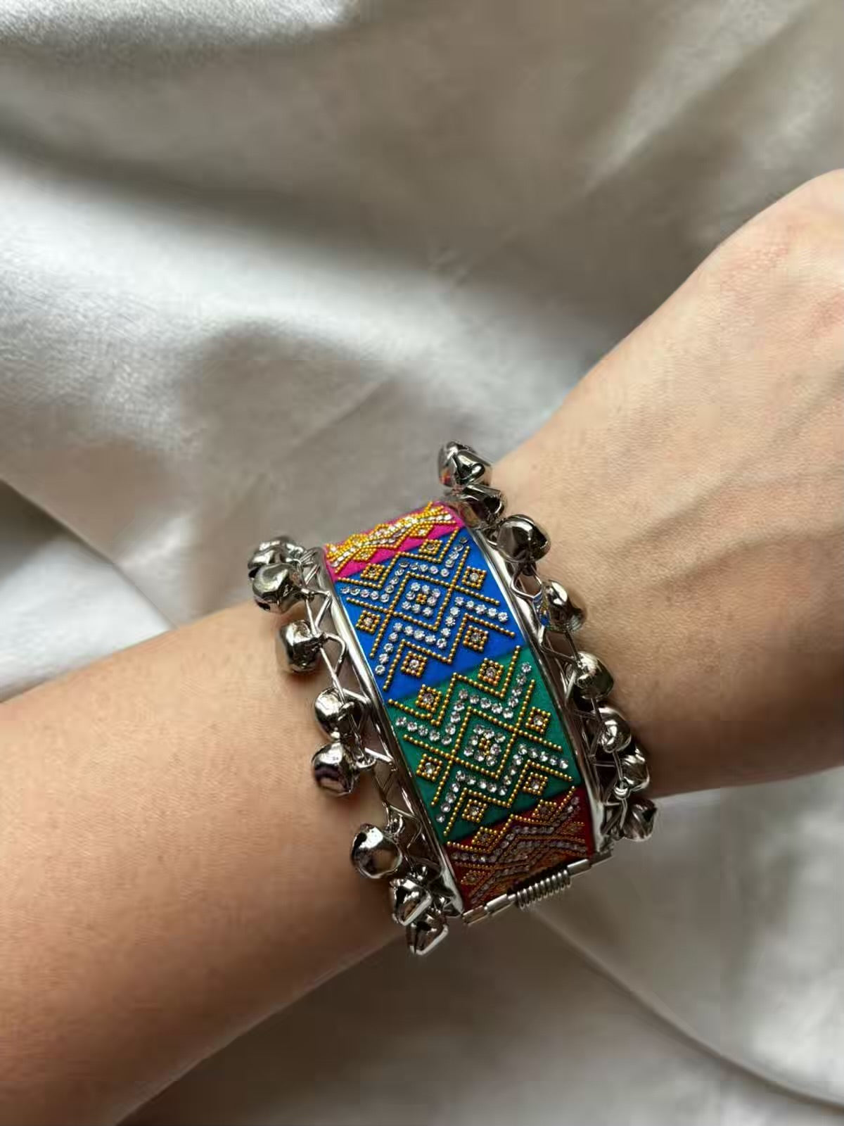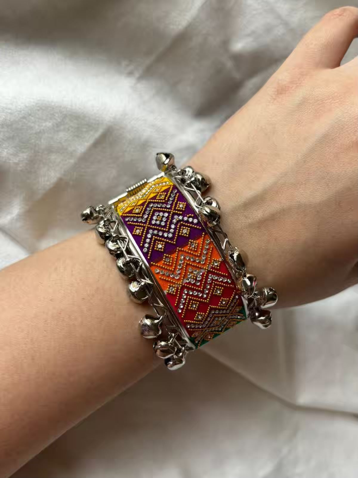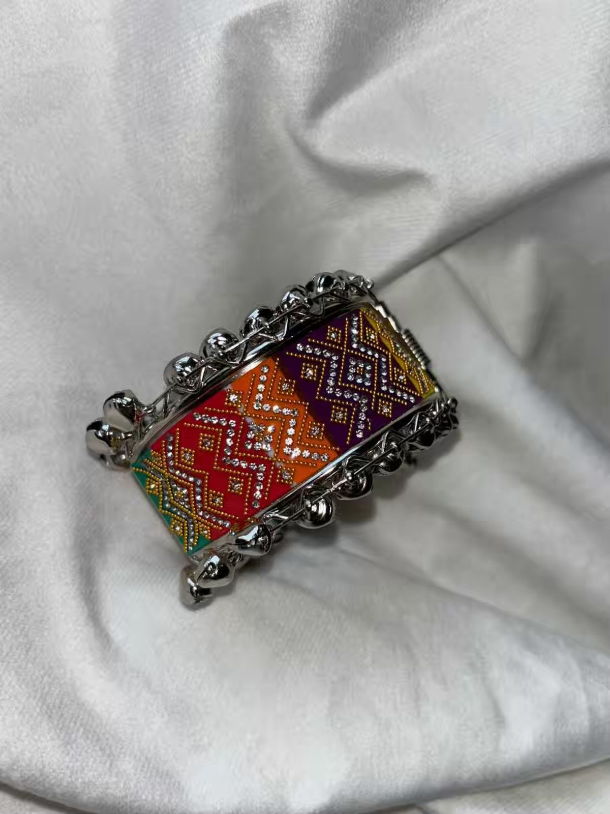 Nav Rang Designer Multicoloured Cloth Zari Bracelet - Silver