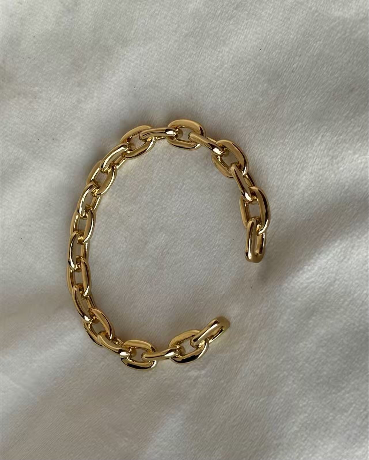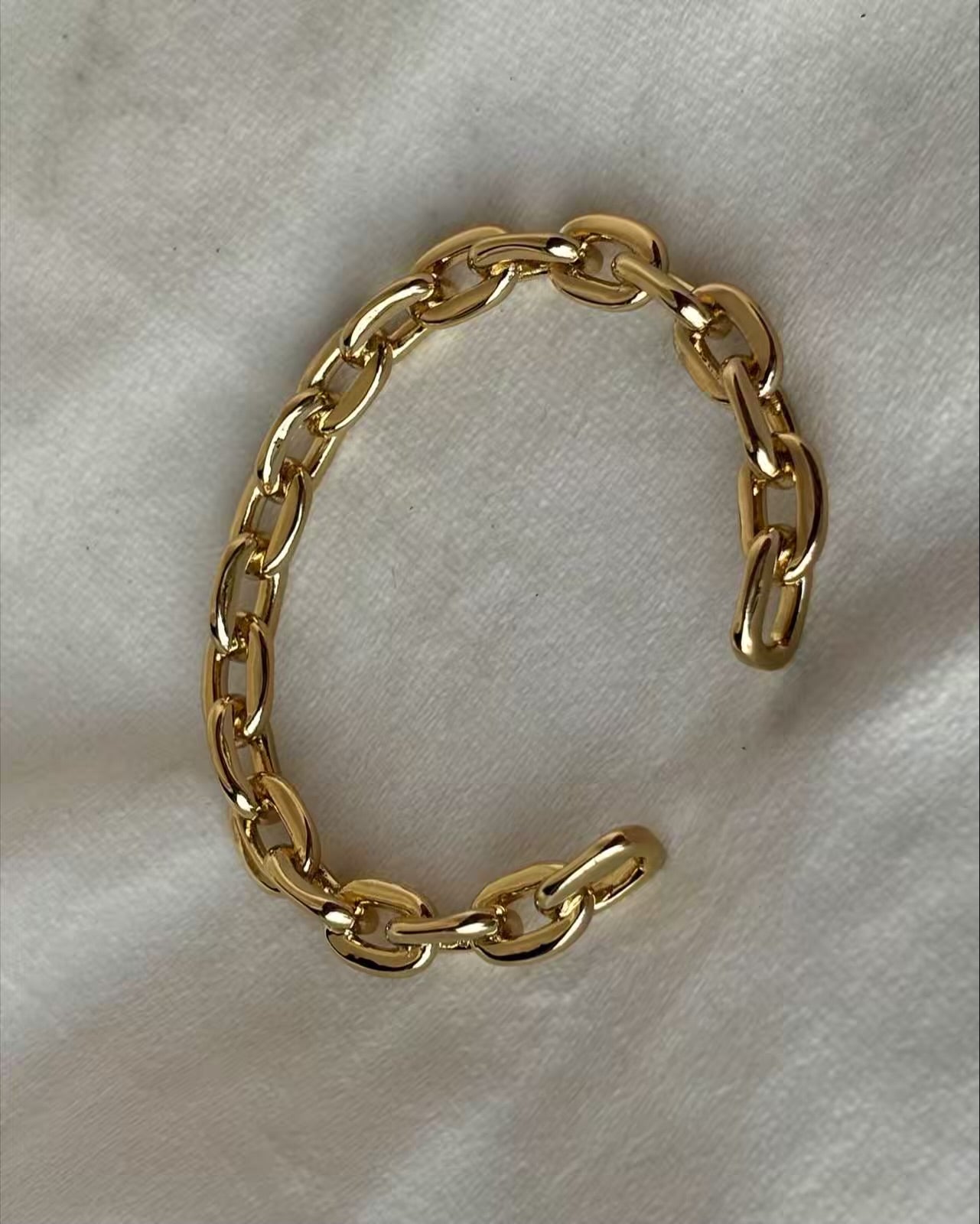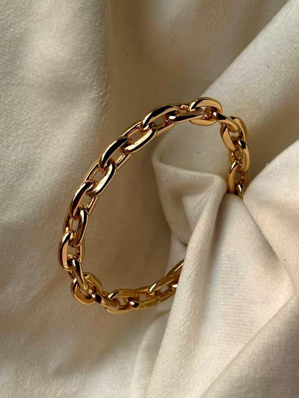 Thick Chain Style Flexible Bangle for All Sizes ( Gold )