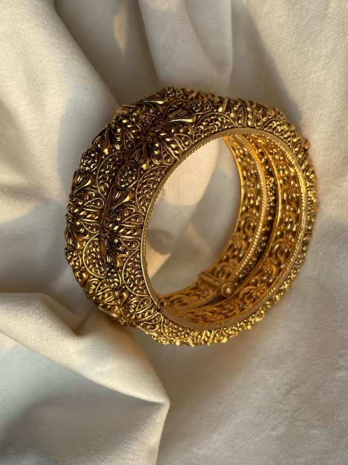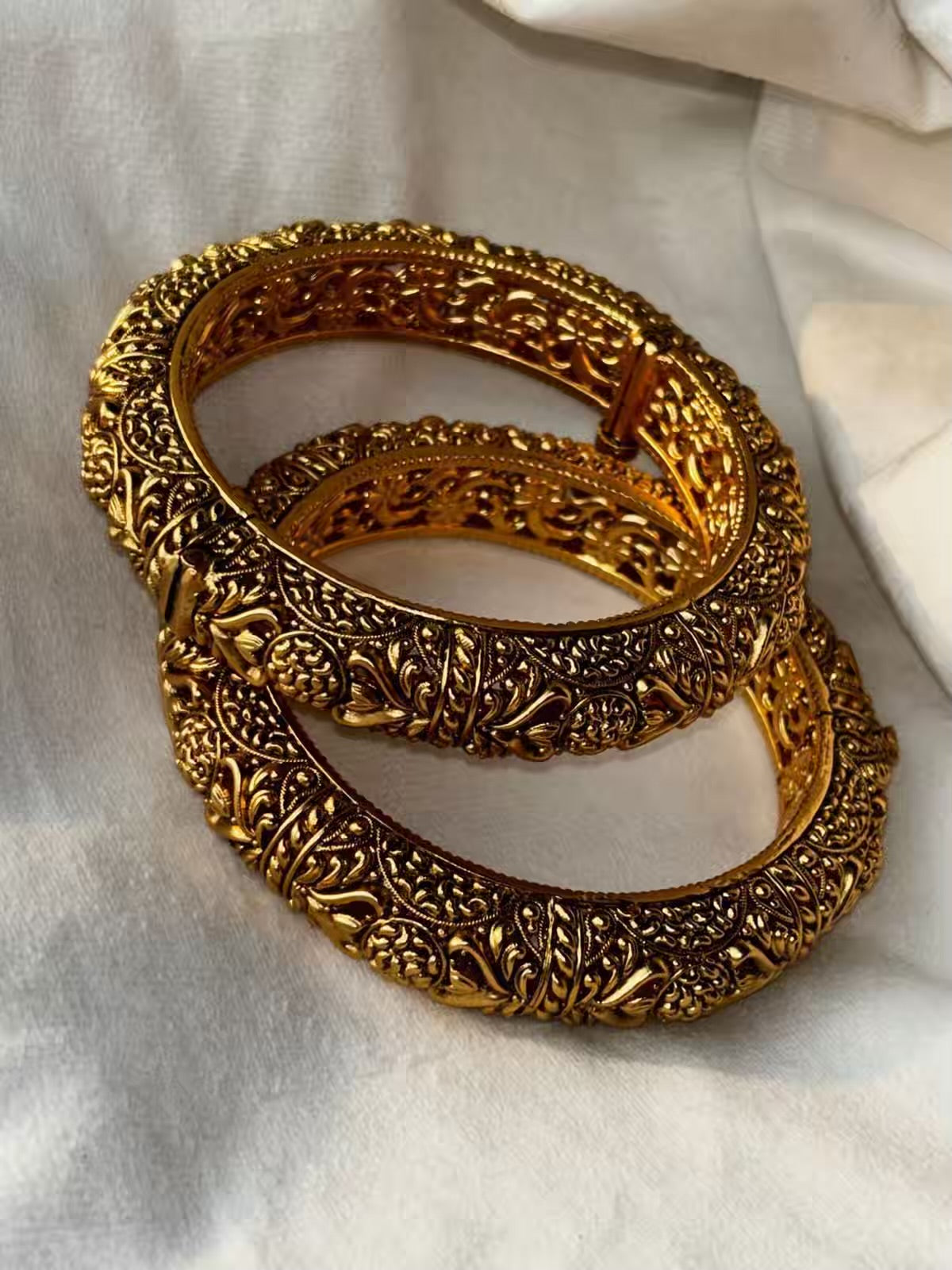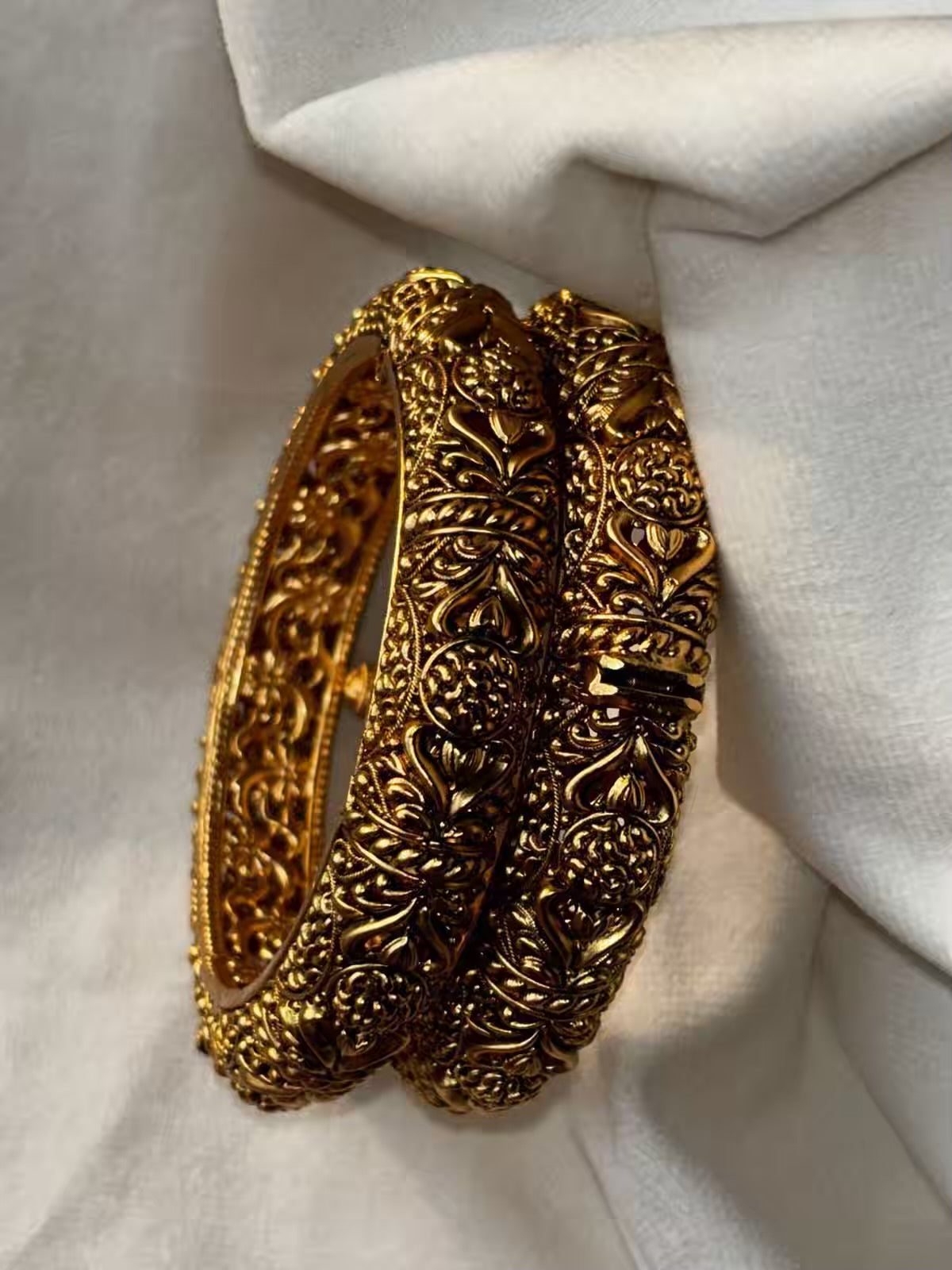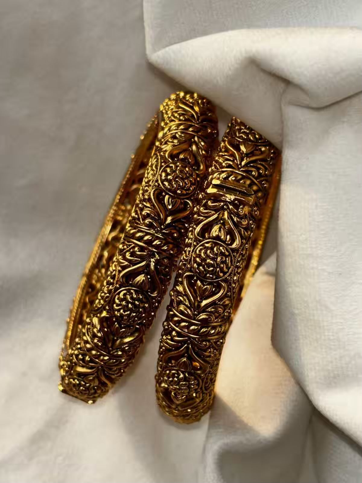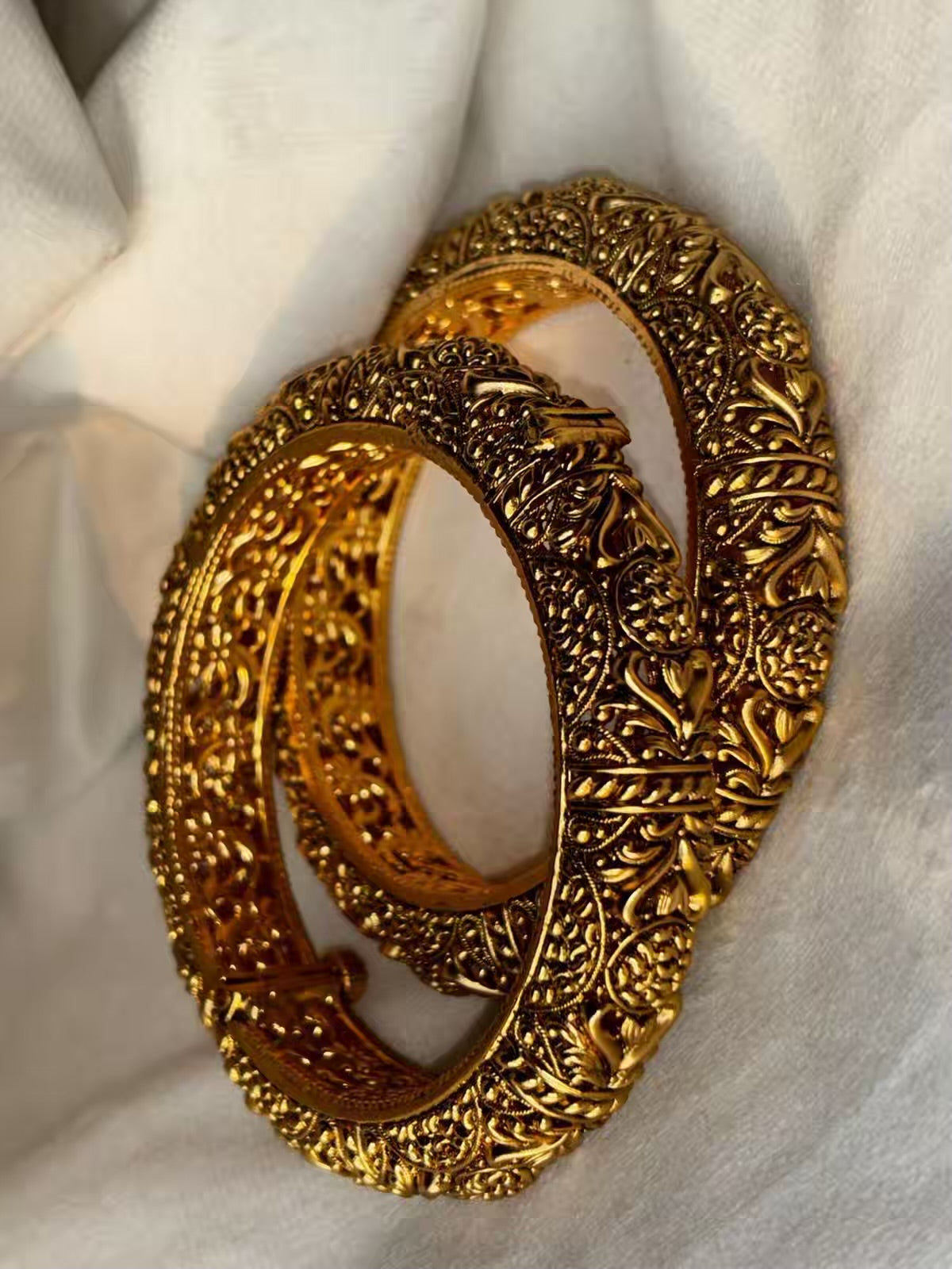 Royal Carved Designer Rajwadi Style Traditional Bangle Gold (2.6) ( Set of 2) With Screw