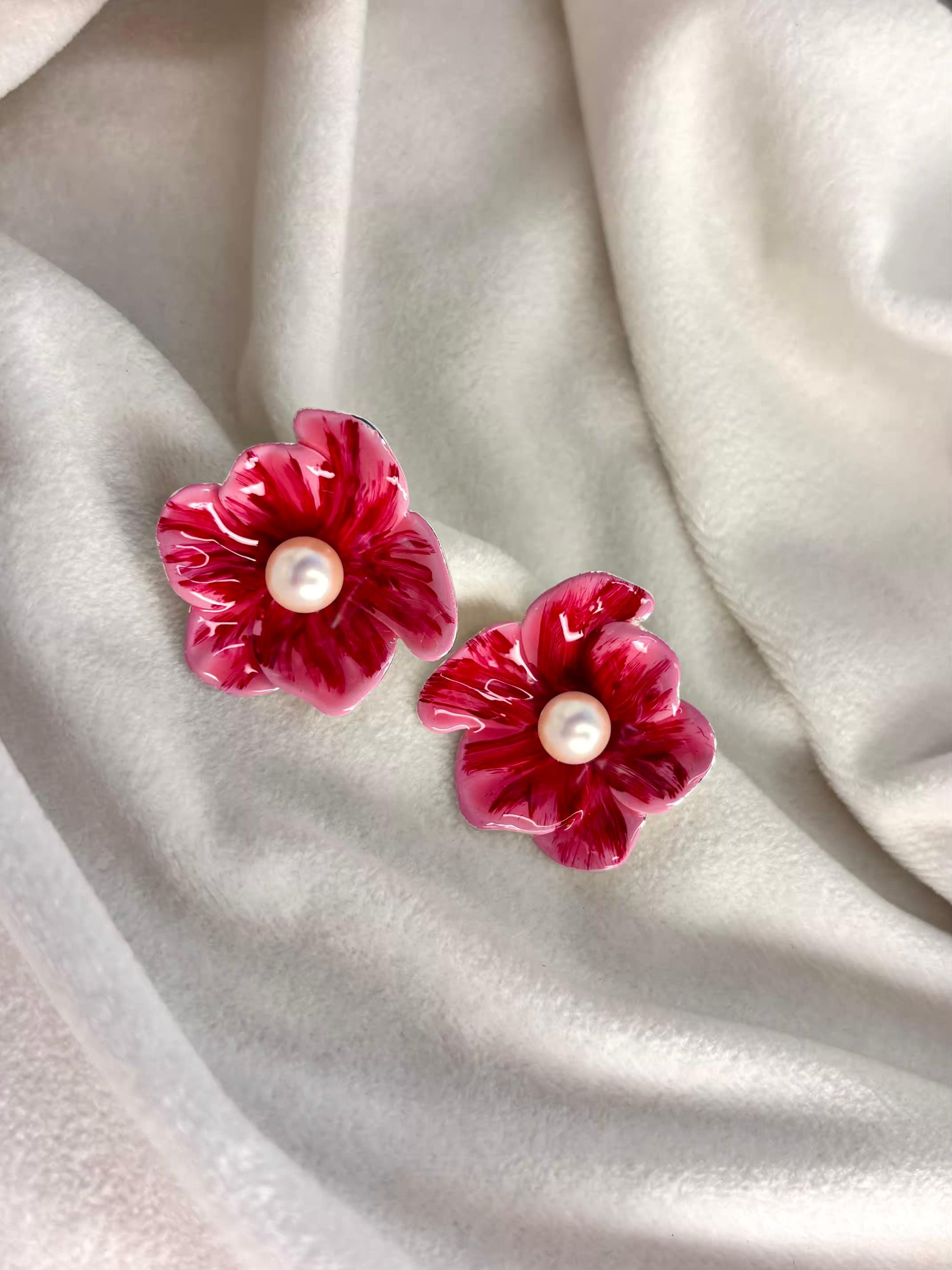 Red Flora Studds Earrings 18K Gold Plated Premium Earrings