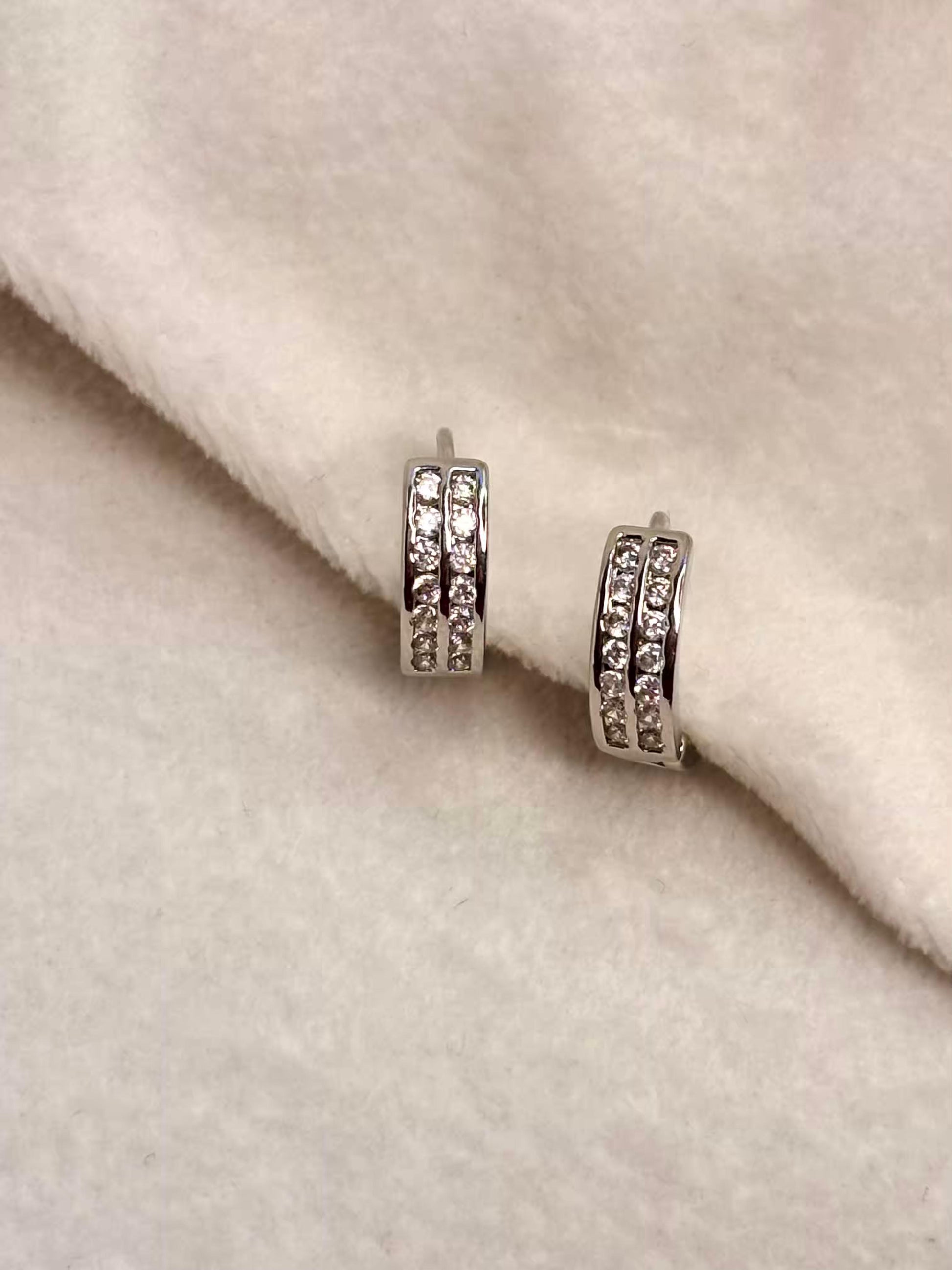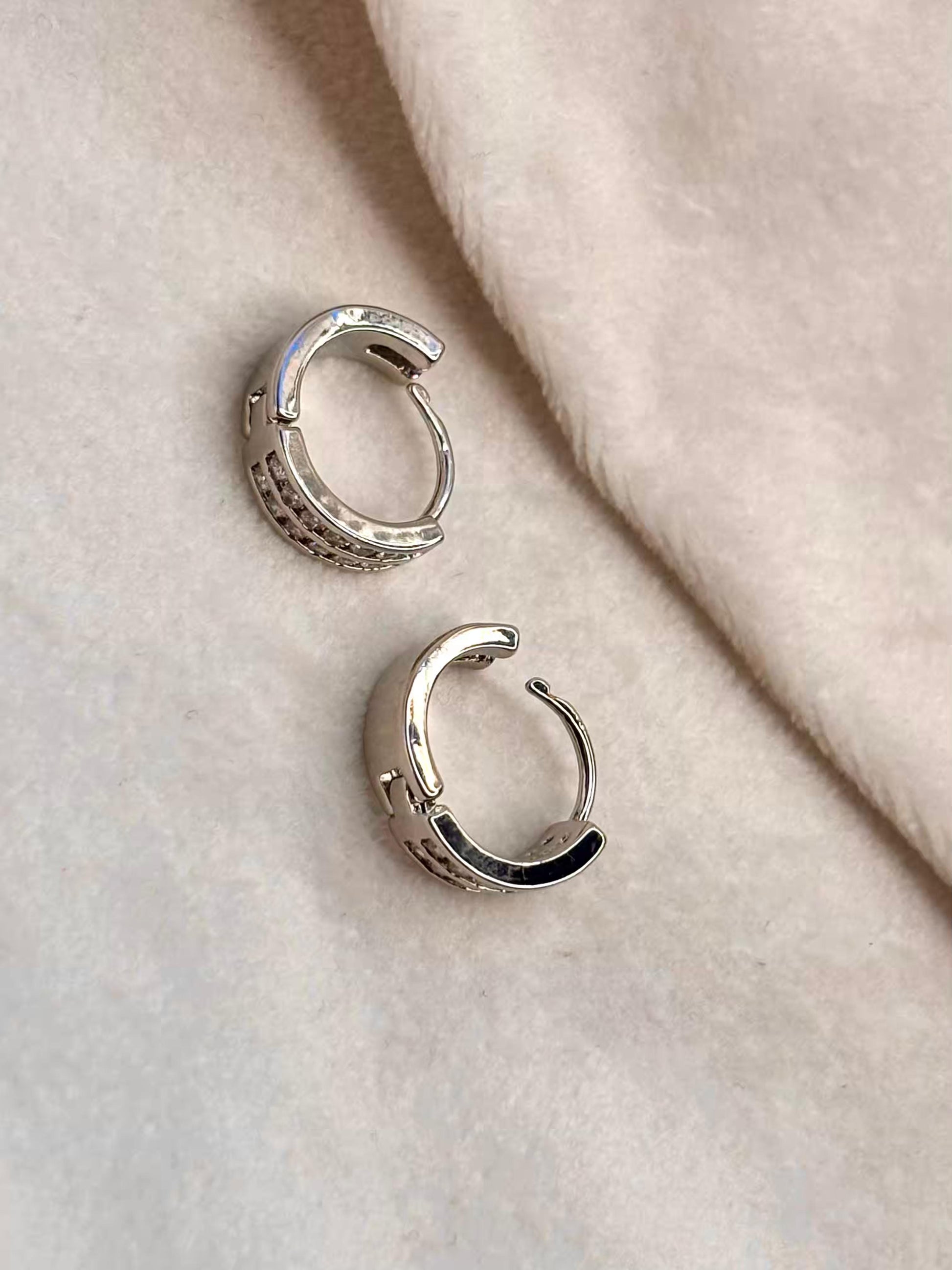 Thick Studded Hoops Bali Earrings - Silver Plated