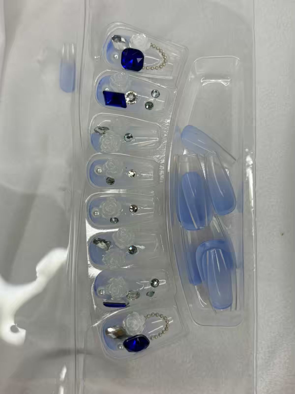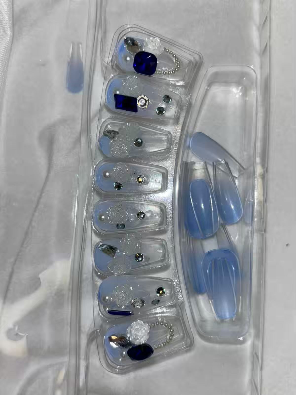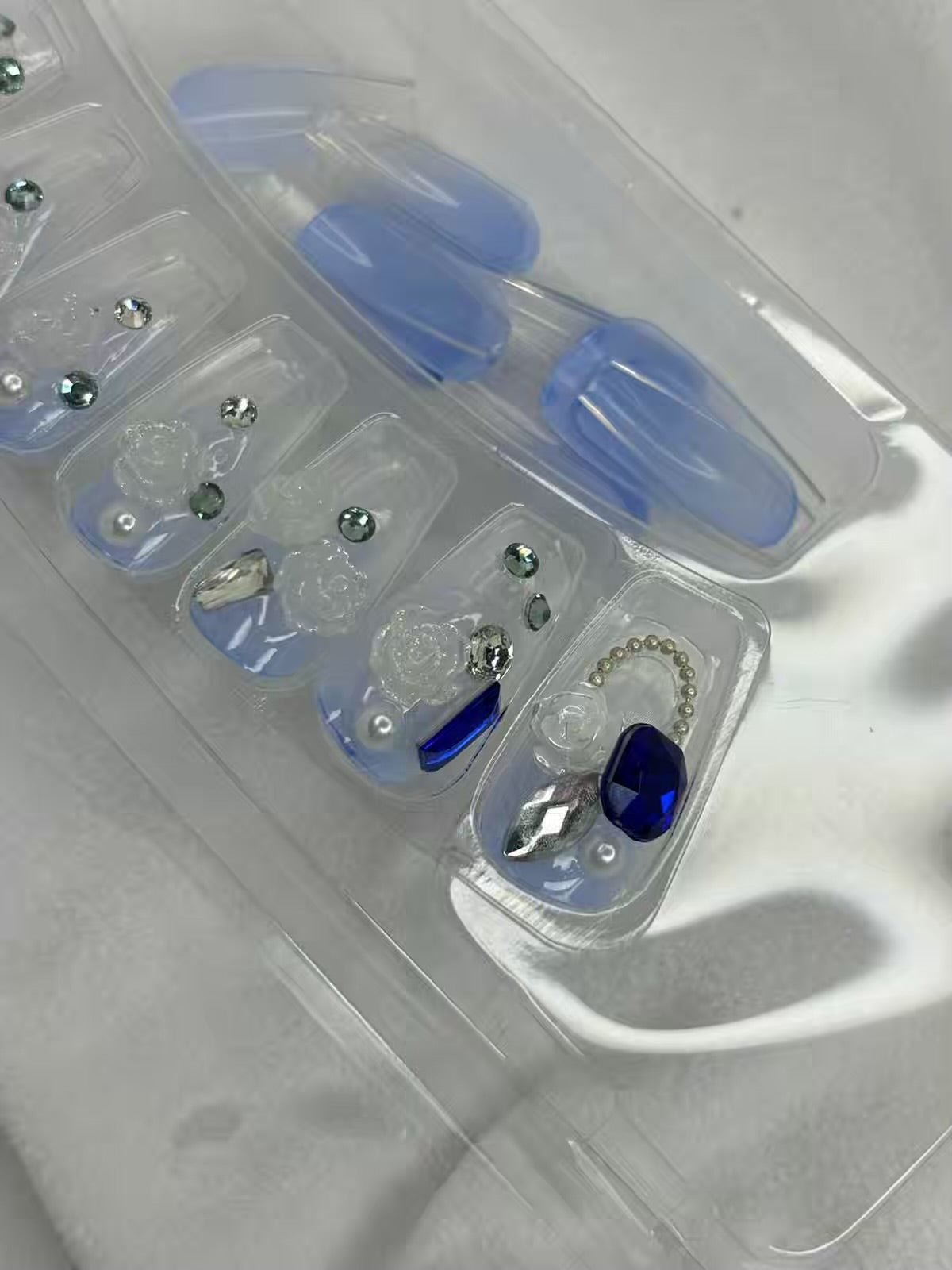 Blue Sapphire Stones Fancy Party Bridal Press On Nails ( Set of 24 )