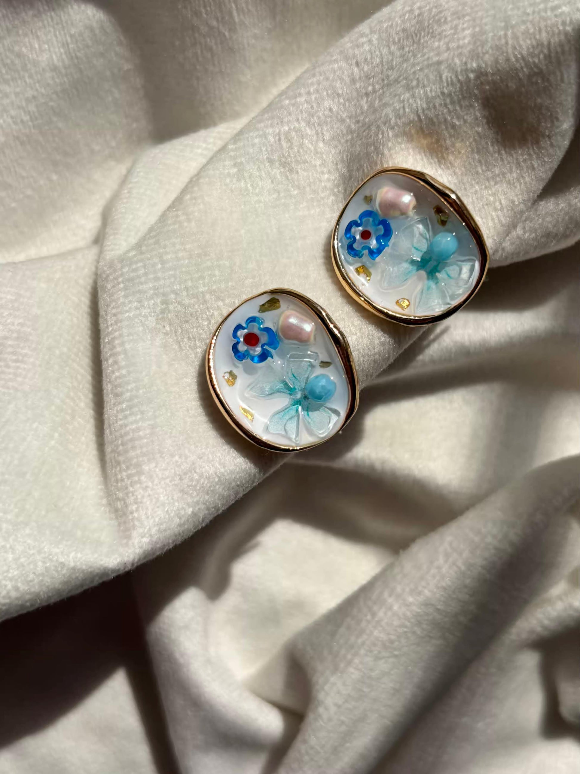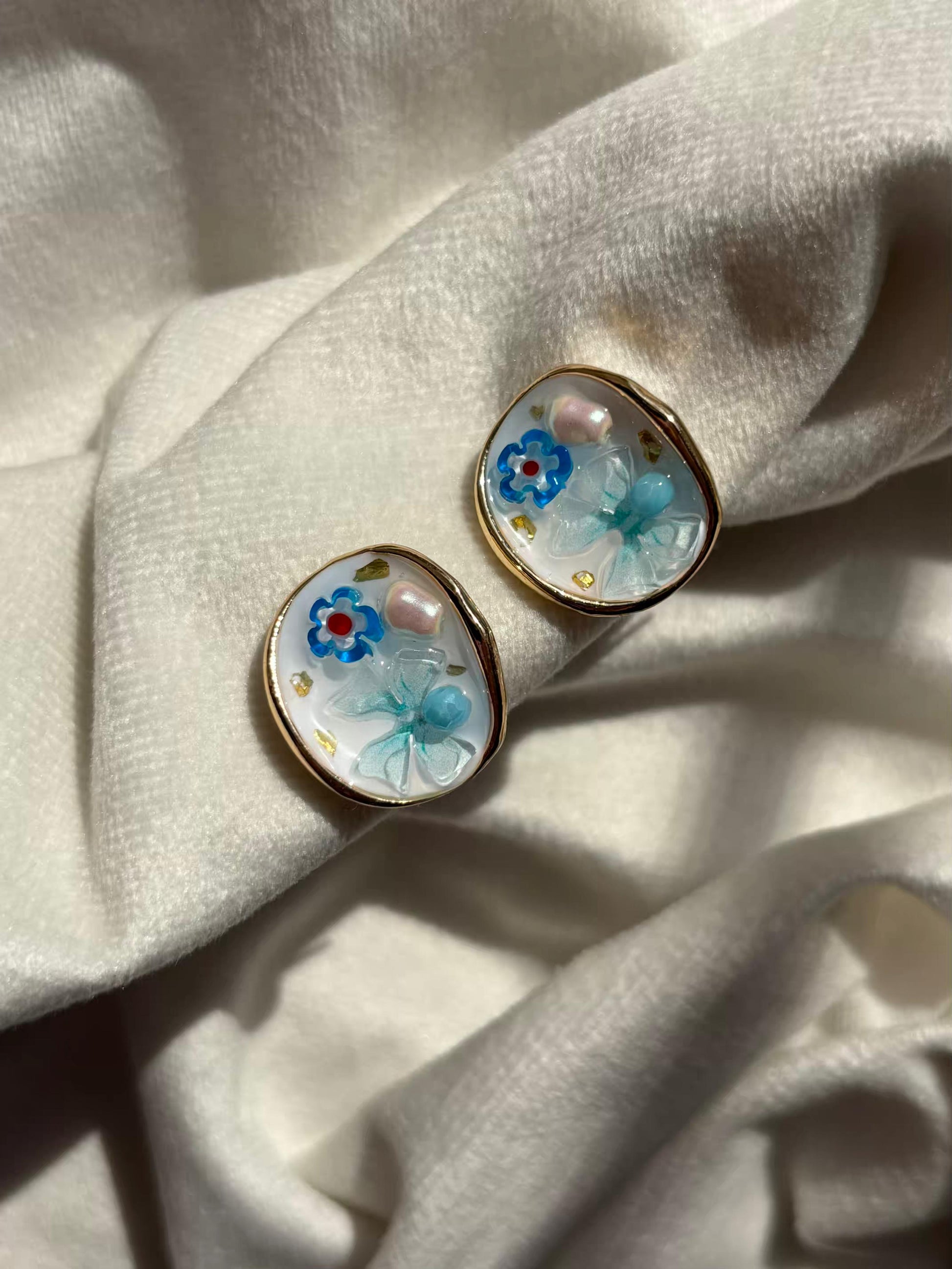 Sky Blue Resin Studds Earrings 18K Gold Plated Premium Earrings