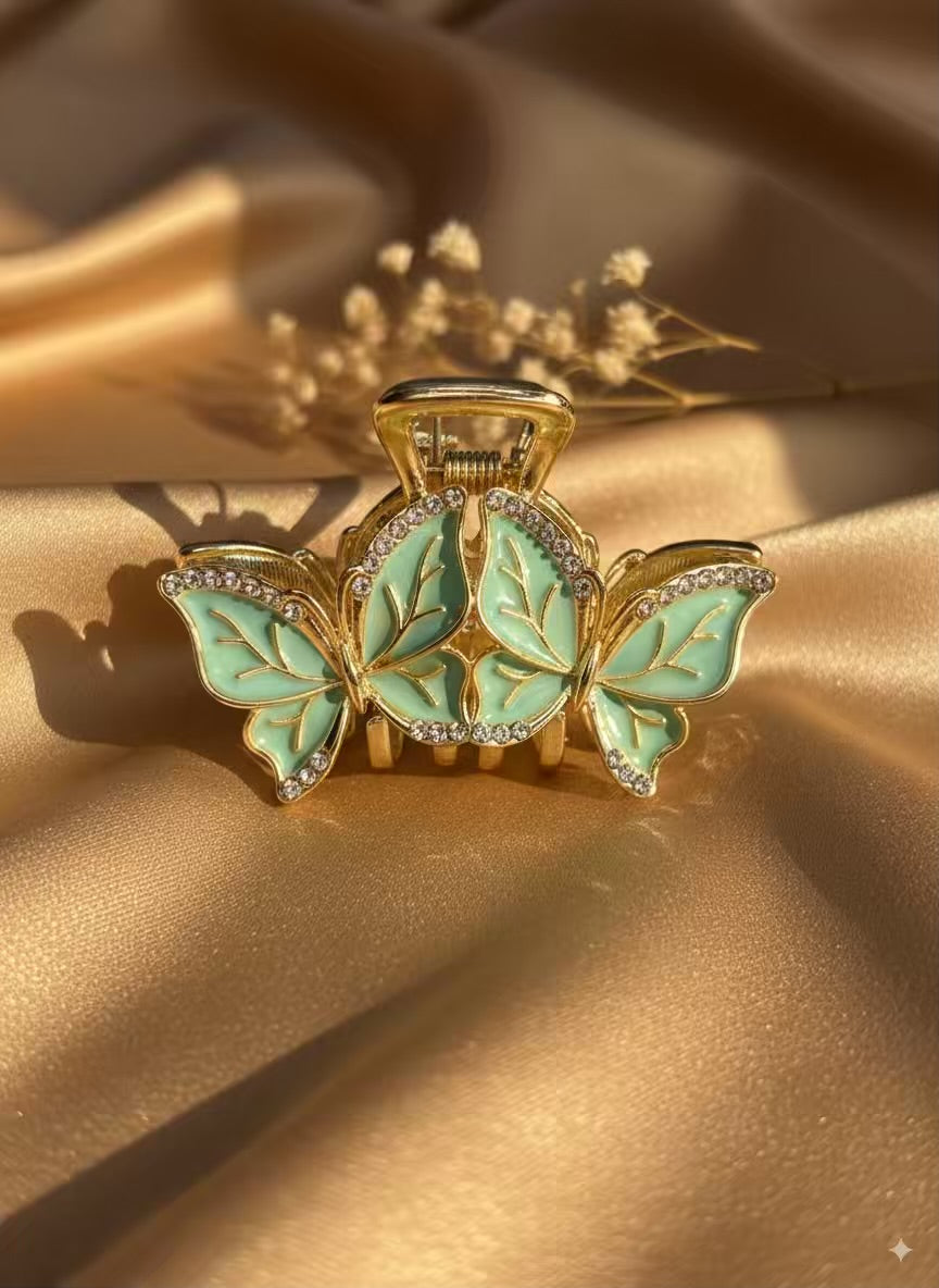 Blue Butterfly Premium Claw Clip - Gold Plated