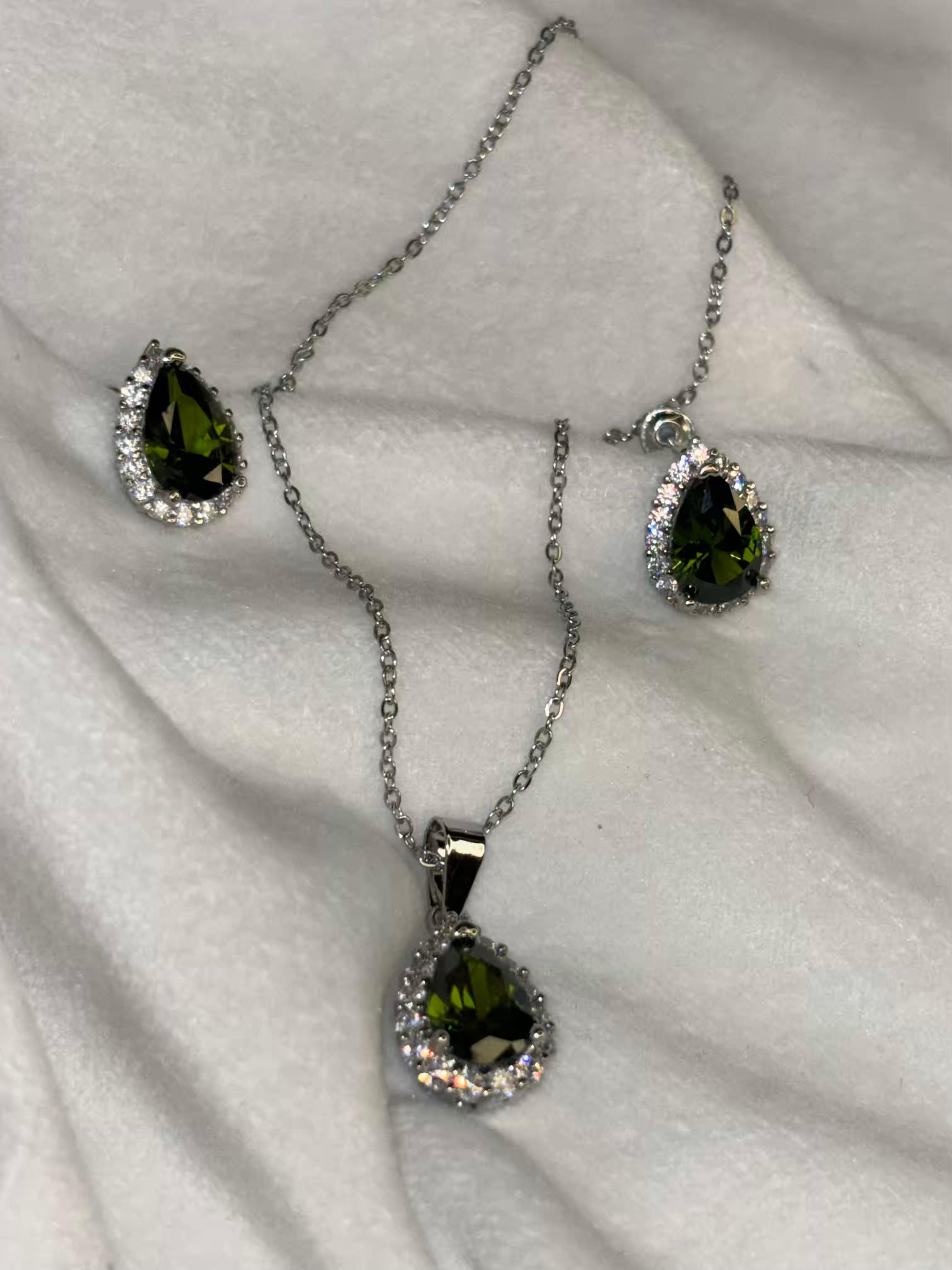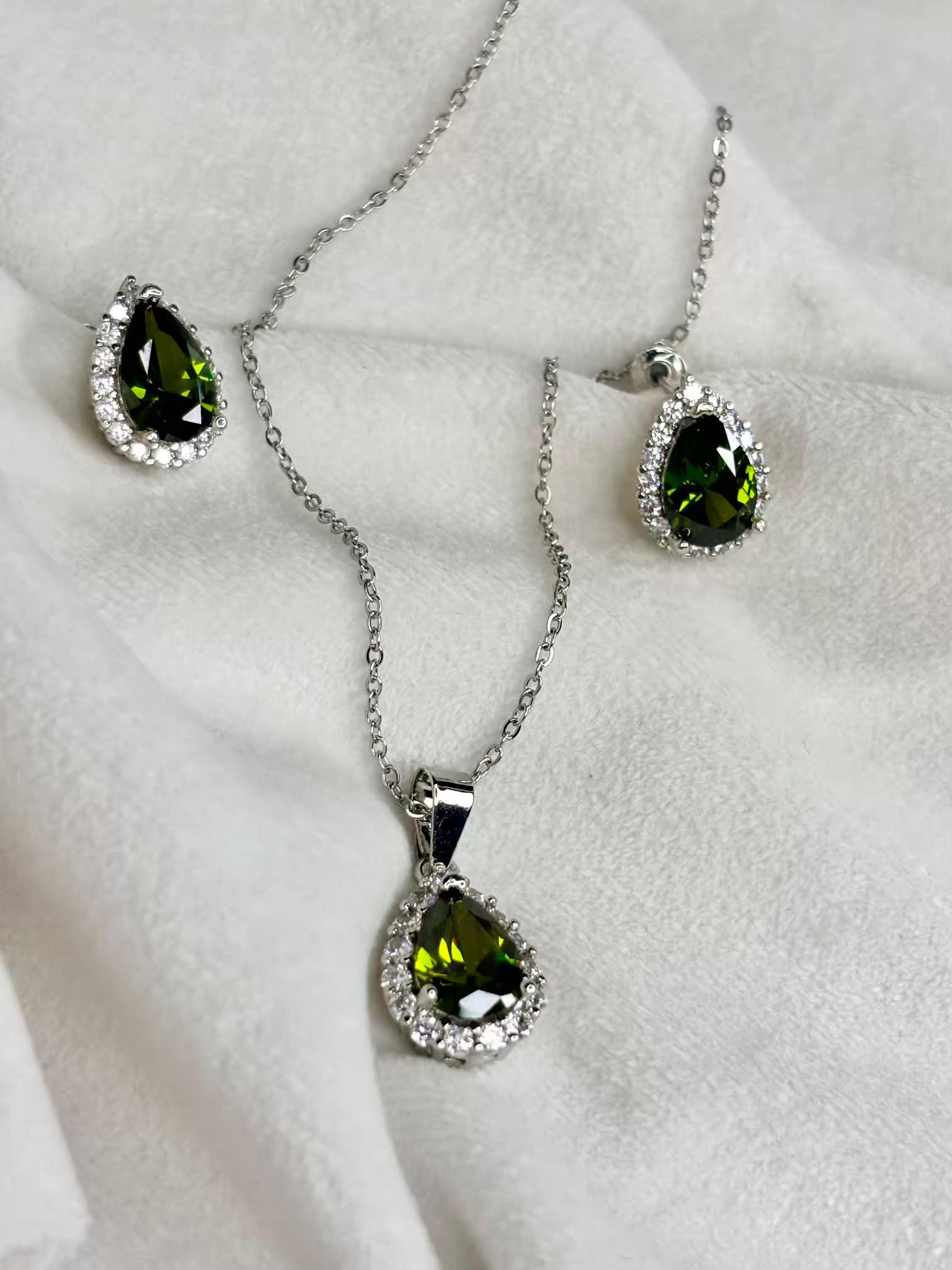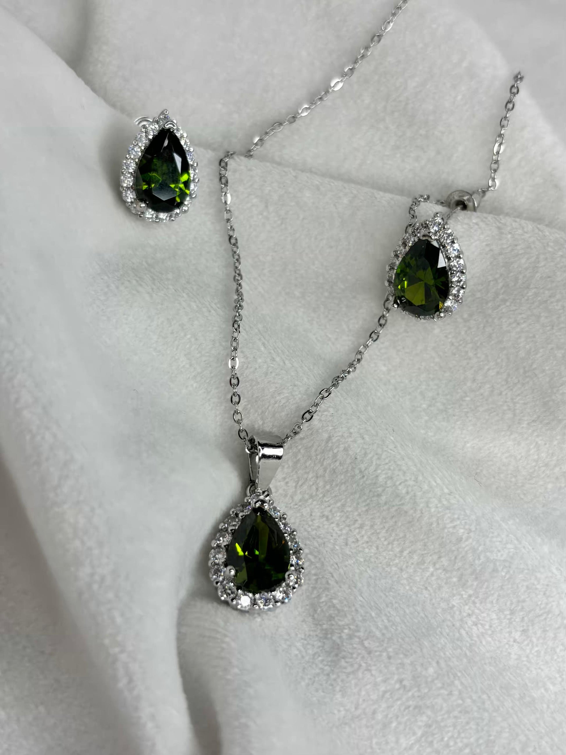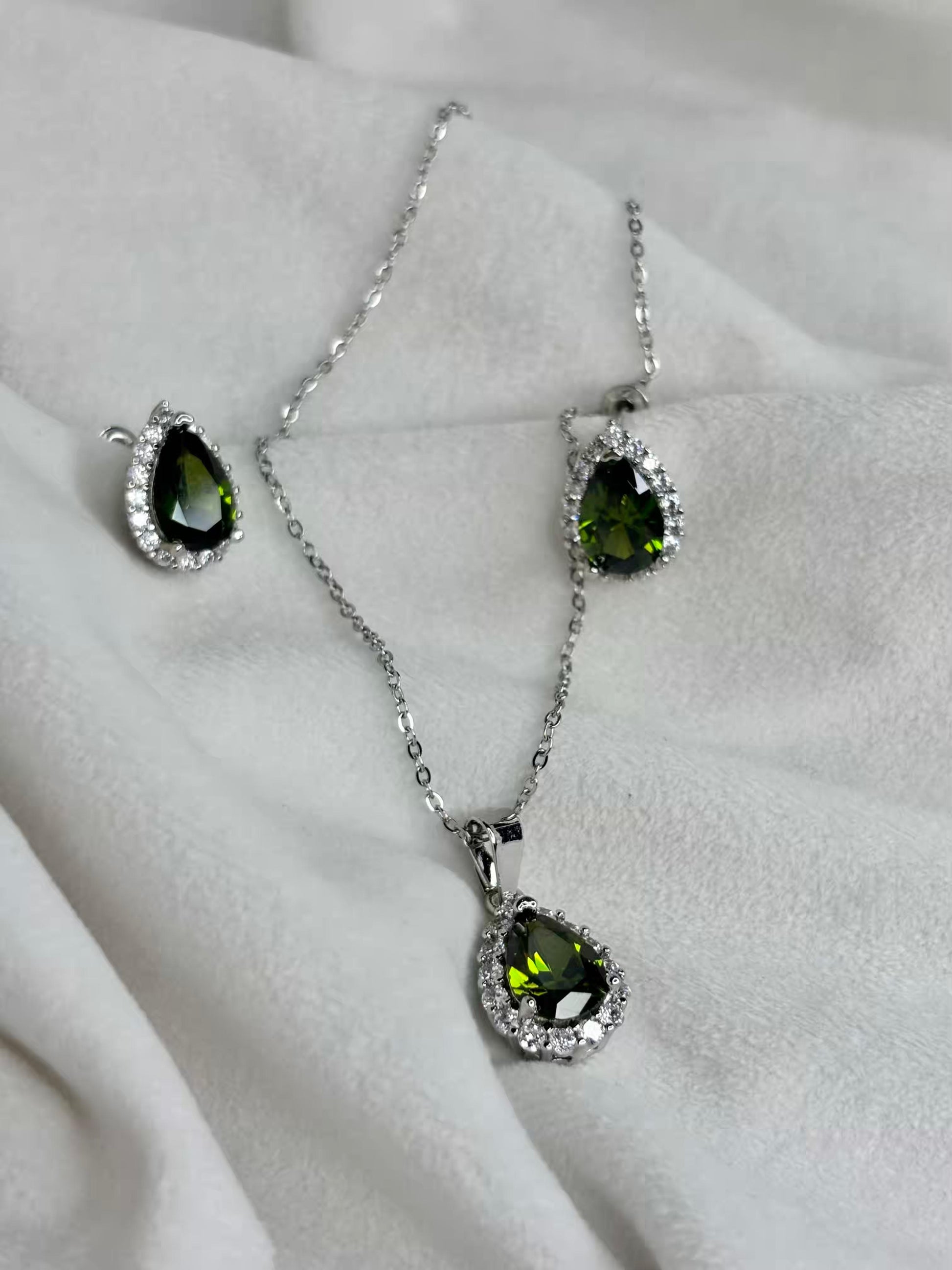 Emarald Elegance Necklace And Ear Studds Silver Plated Premium Necklace