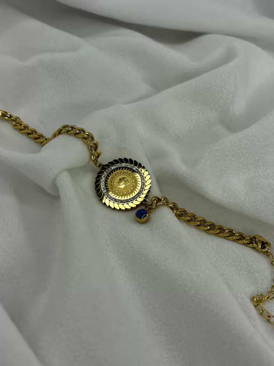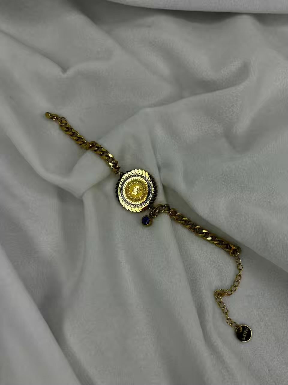 Queen Evil Eye Gold Chain Style Bracelet ( Gold )
