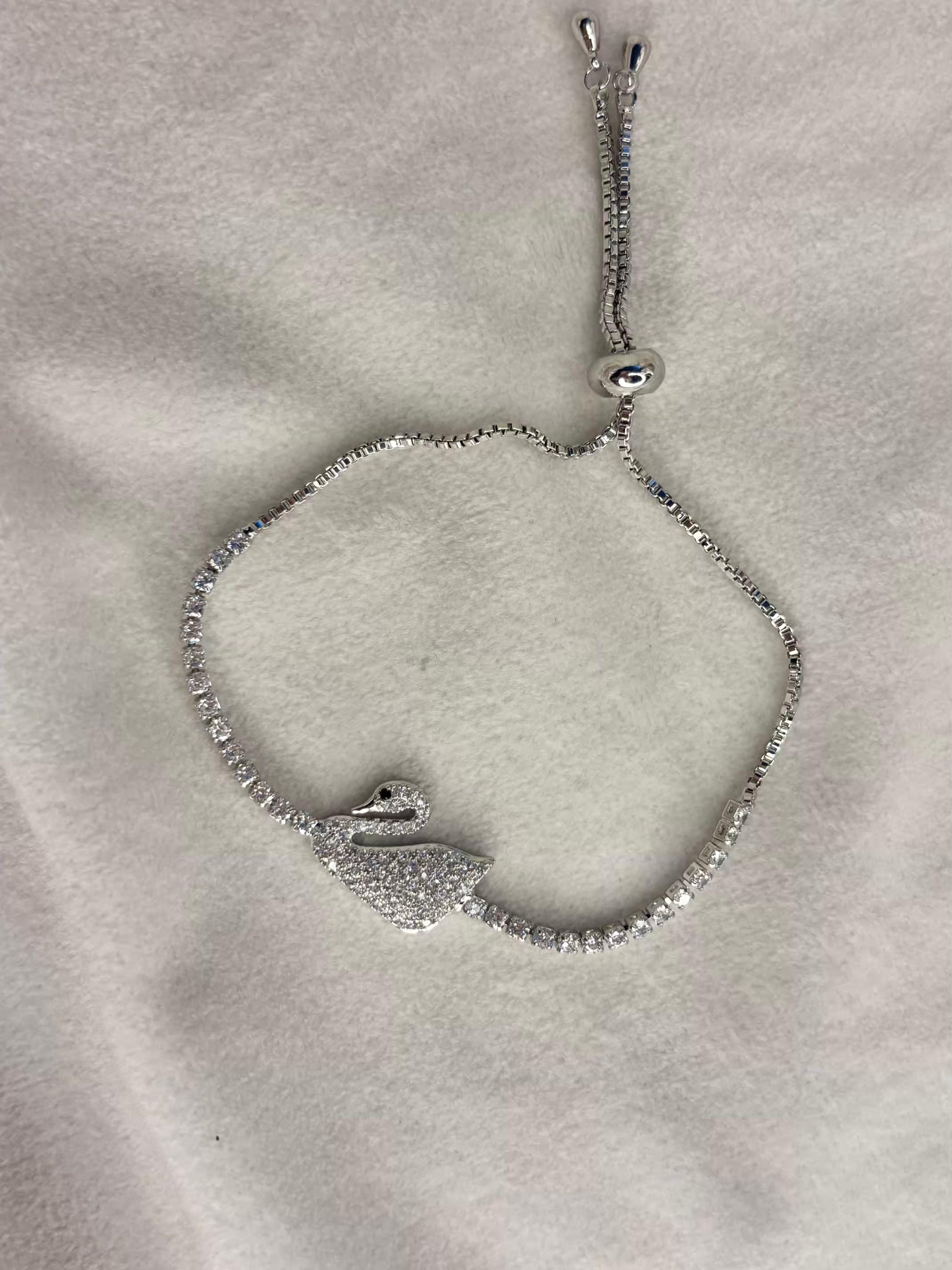 Glimmering Swan Silver Plated Premium Adjustable Chain Bracelet