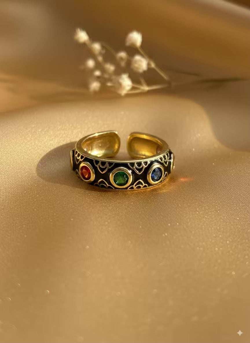 Black Colourful Gold Plated Premium Ring (Adjustable)