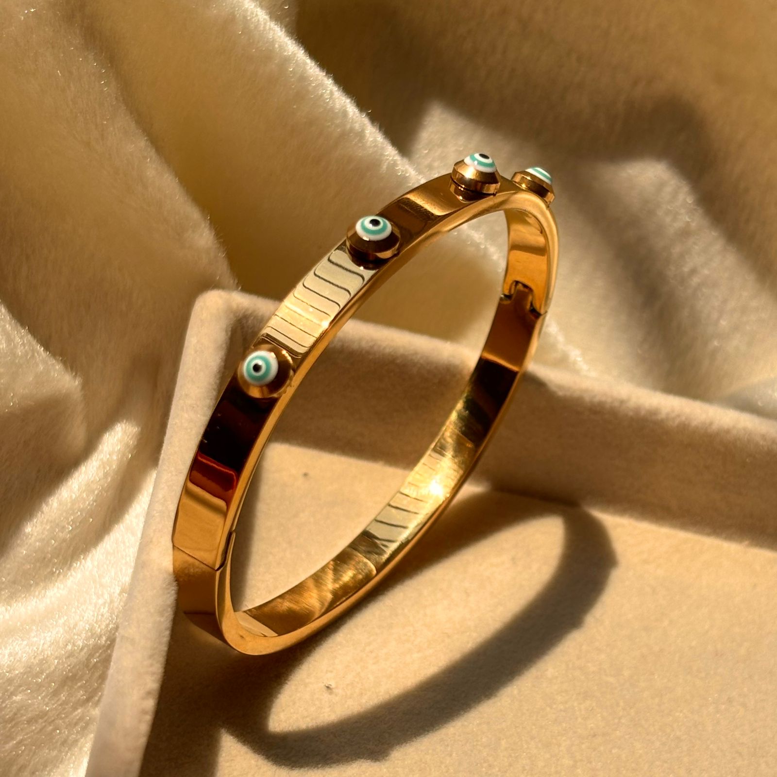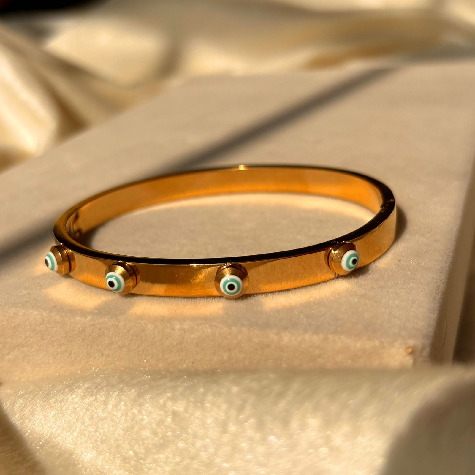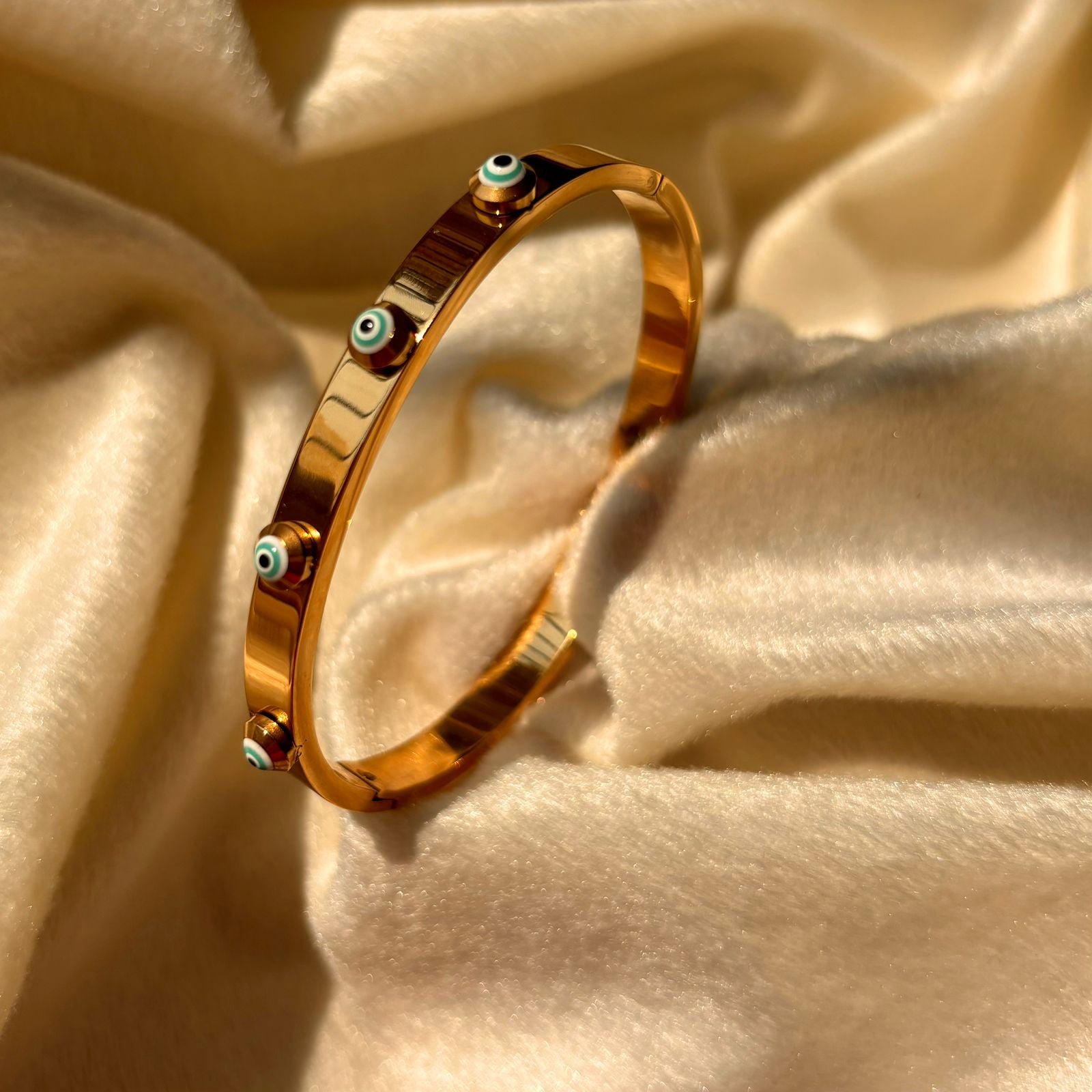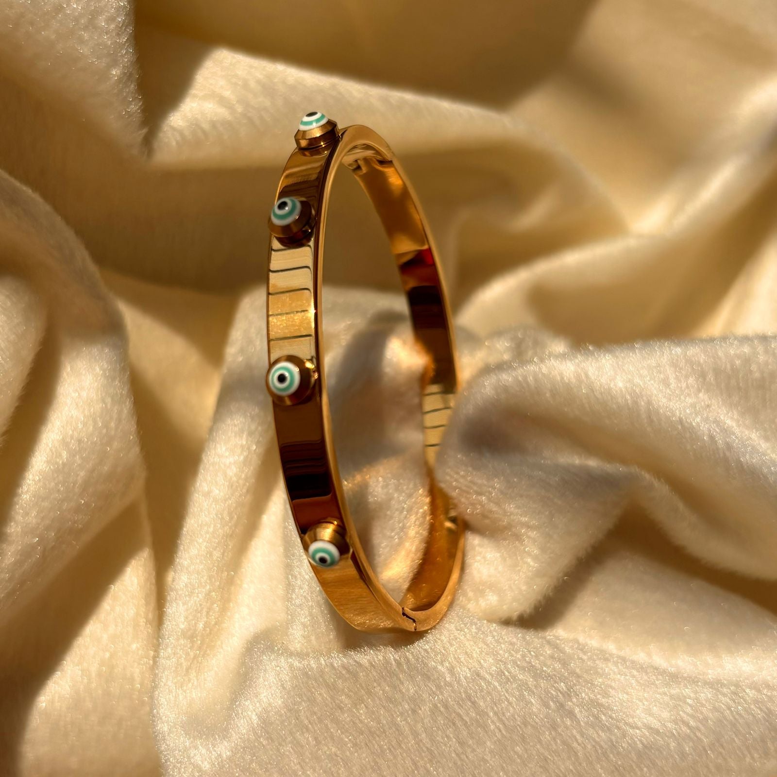 White Sky Evil Eye Catchy Kada Bracelet Bangle - 22k Gold Plated