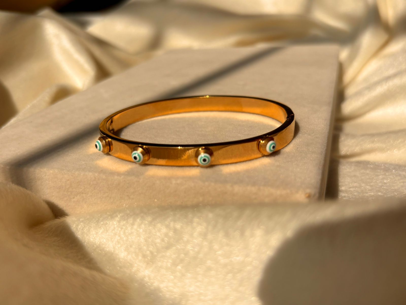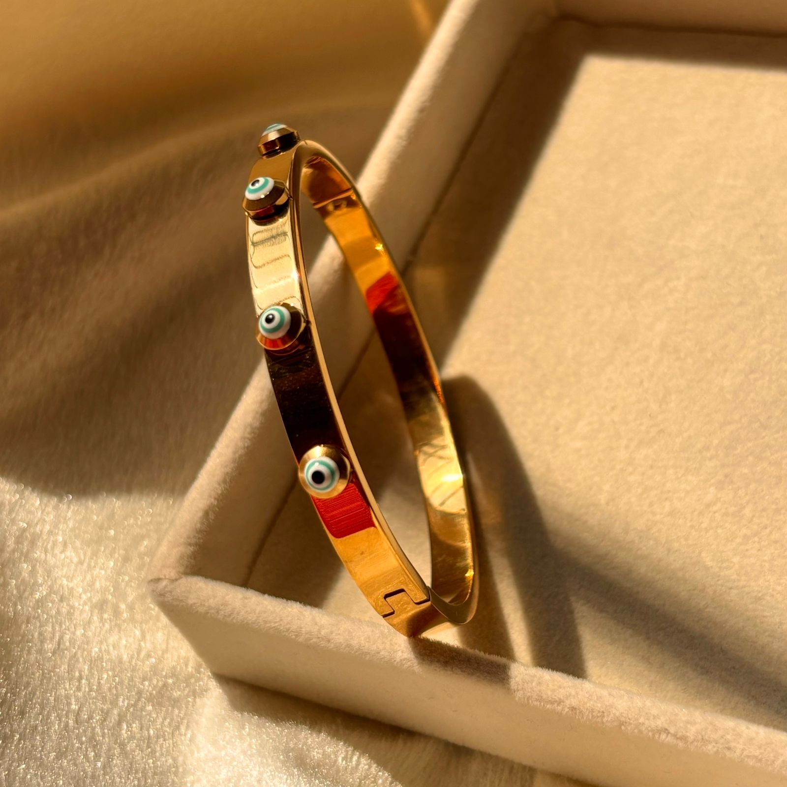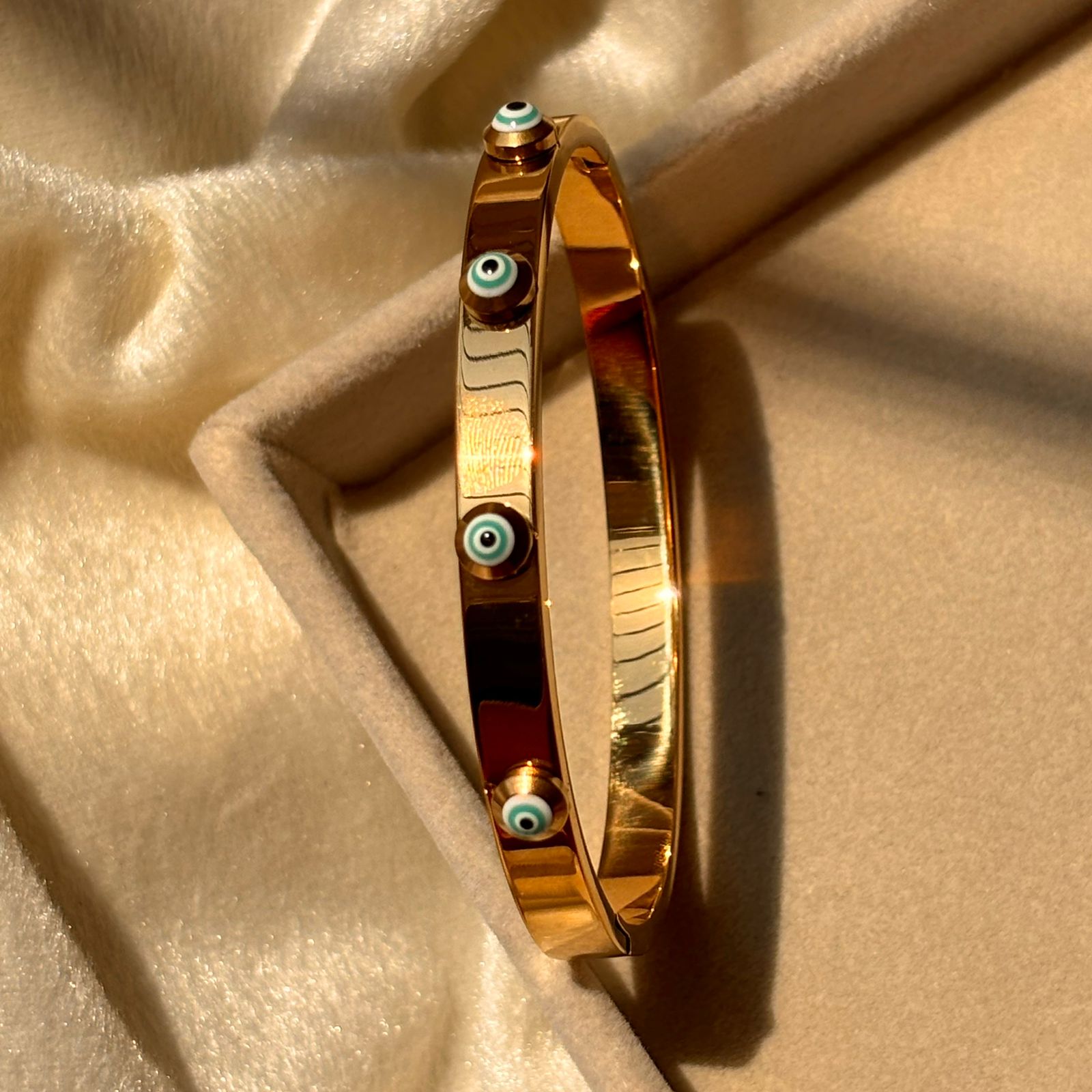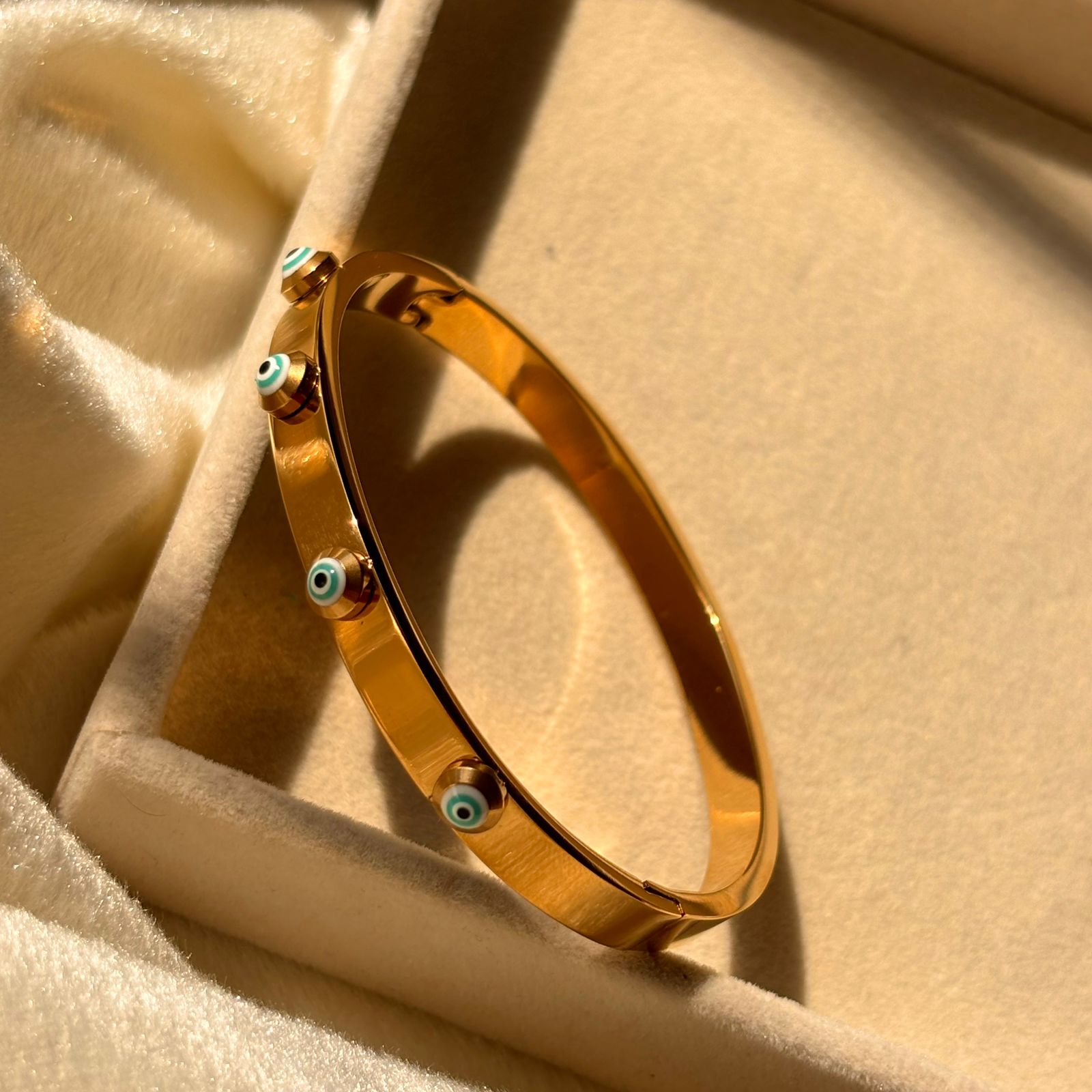 White Sky Evil Eye Catchy Kada Bracelet Bangle - 22k Gold Plated