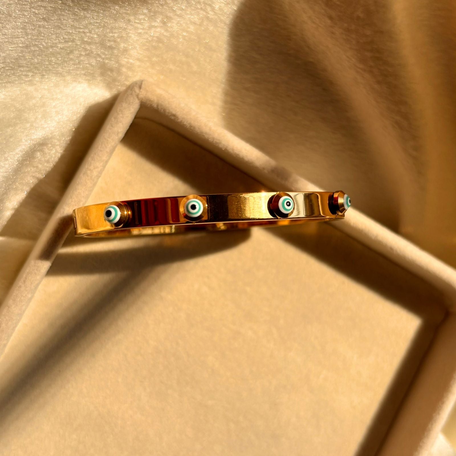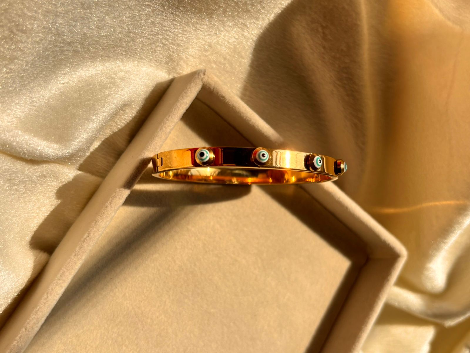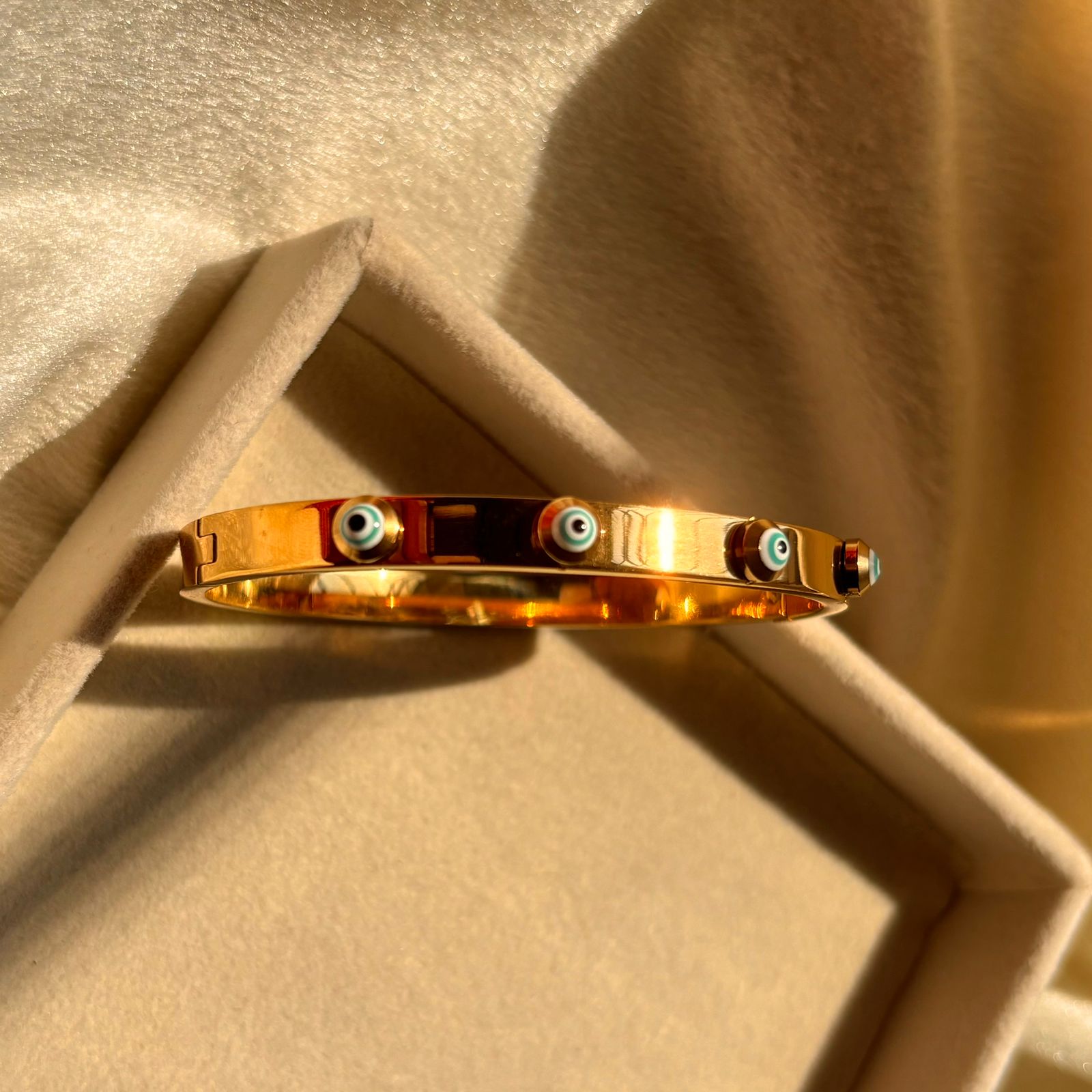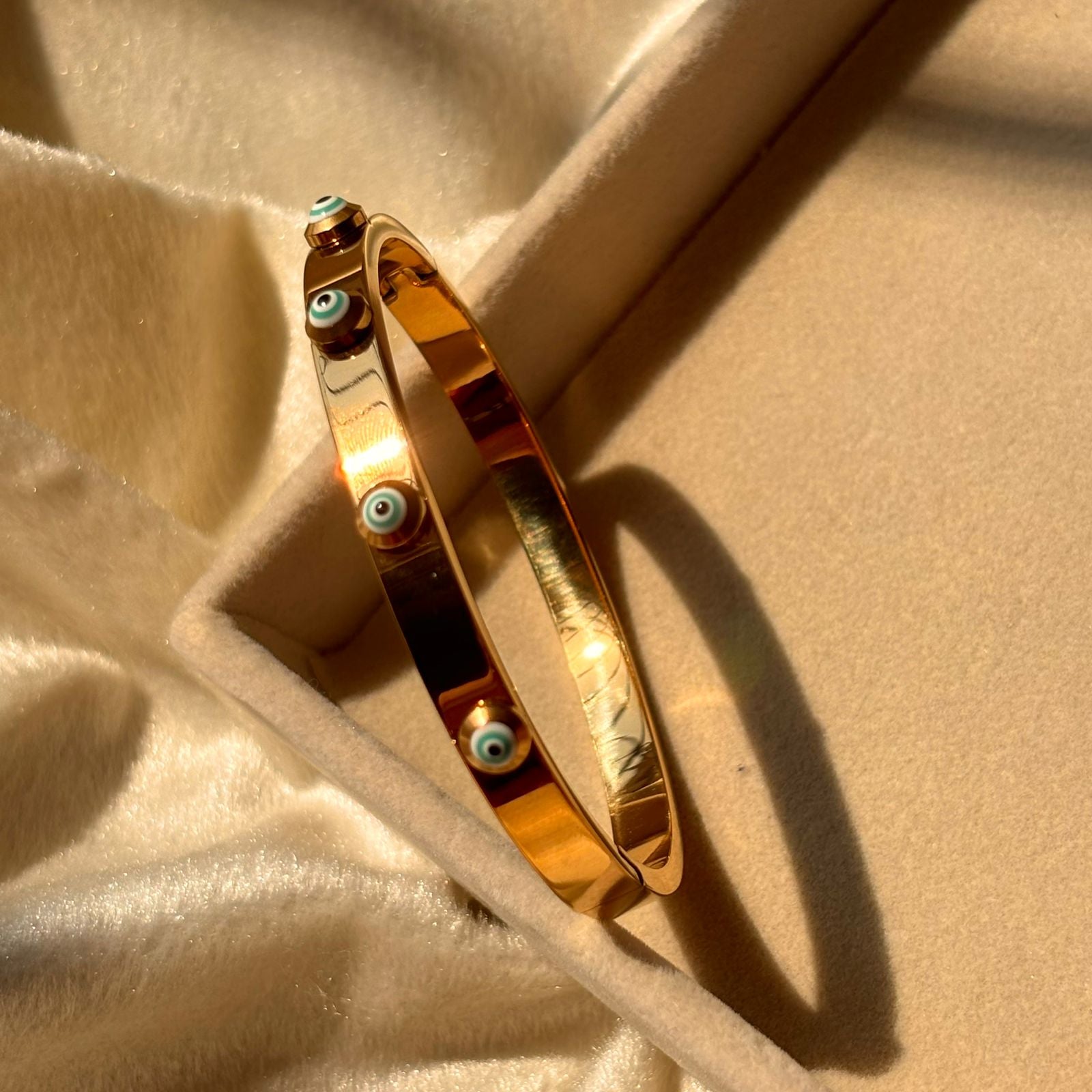 White Sky Evil Eye Catchy Kada Bracelet Bangle - 22k Gold Plated