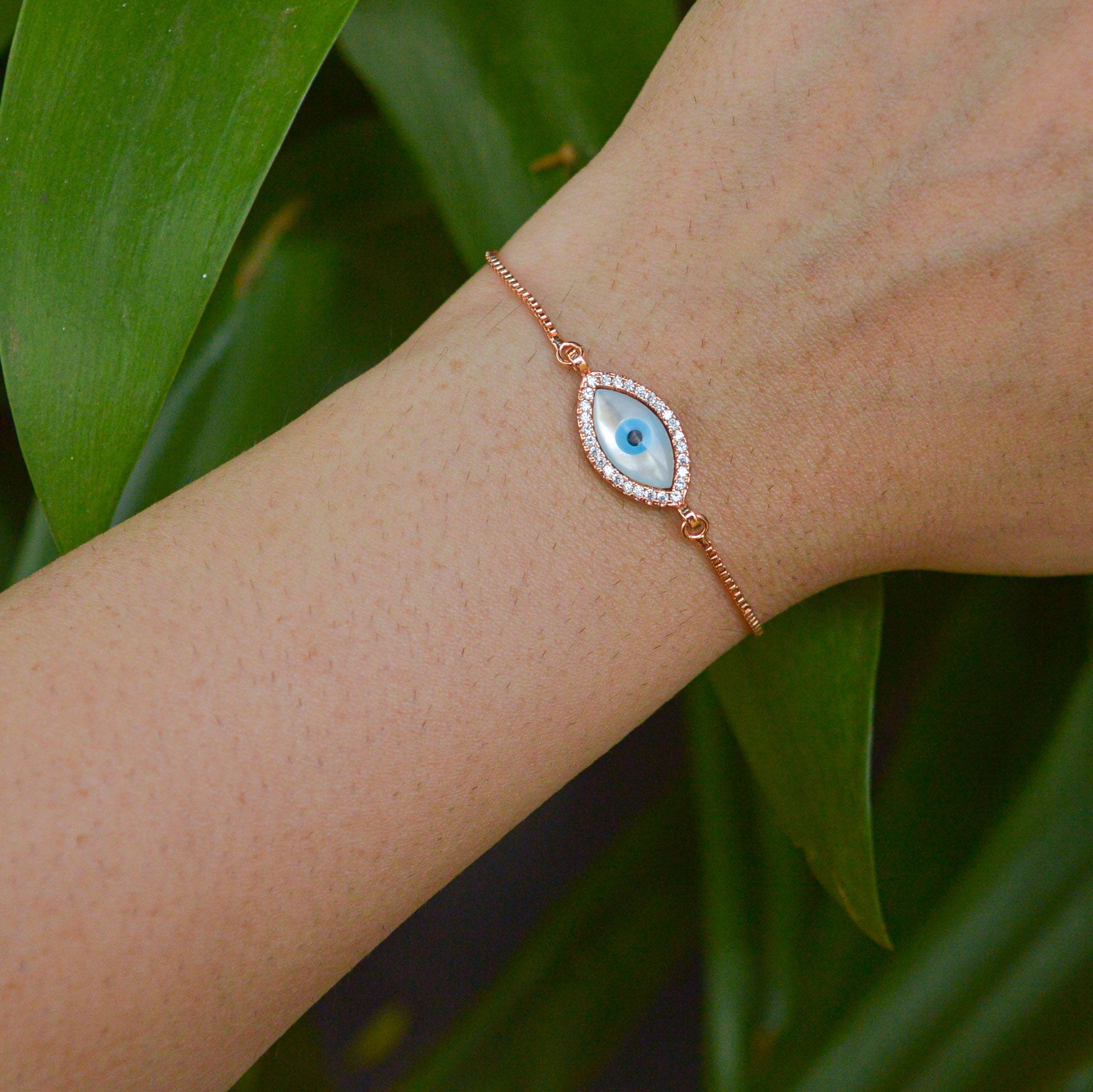 Eye Mother of Pearl Evil Eye Bracelet ( Rose Gold )