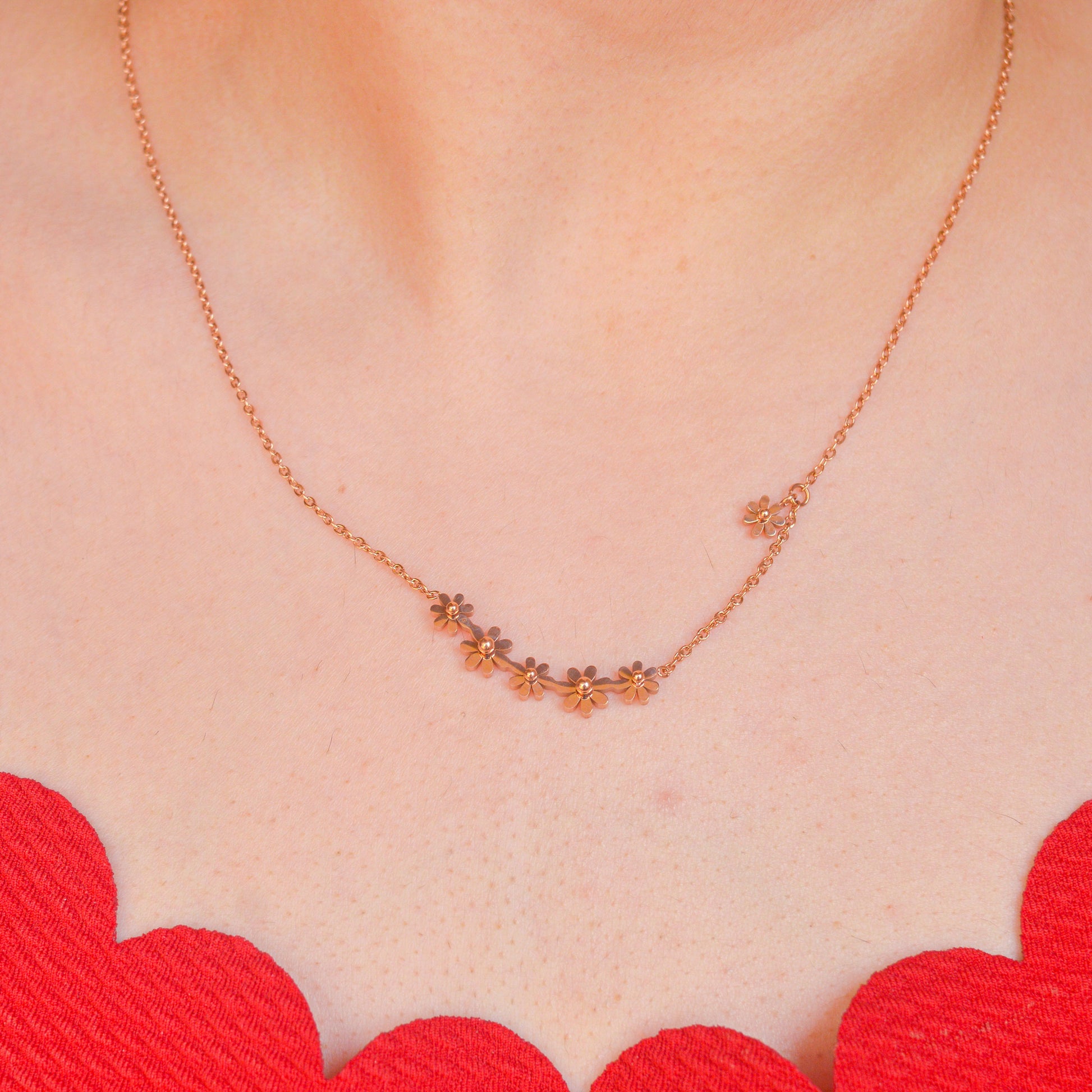 Floral Connected Necklace - Rose Gold