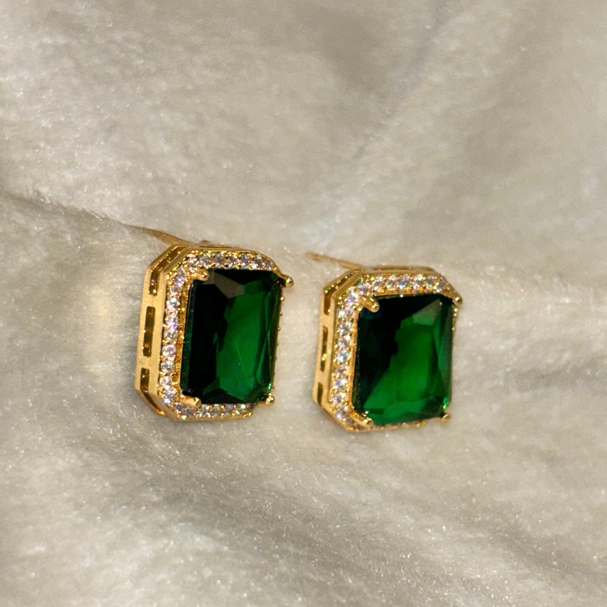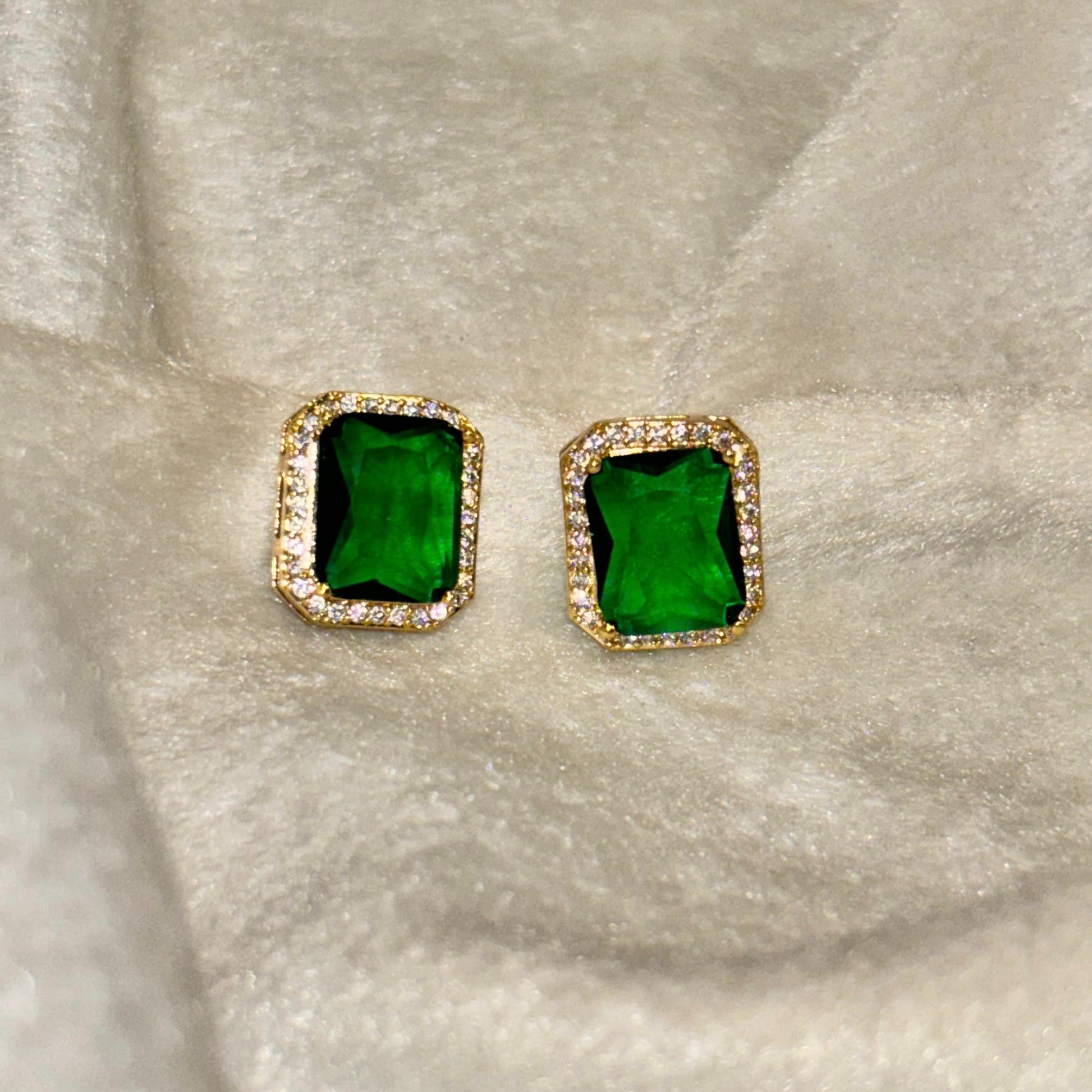 Green Emerald Cushion Cut Stud Earrings