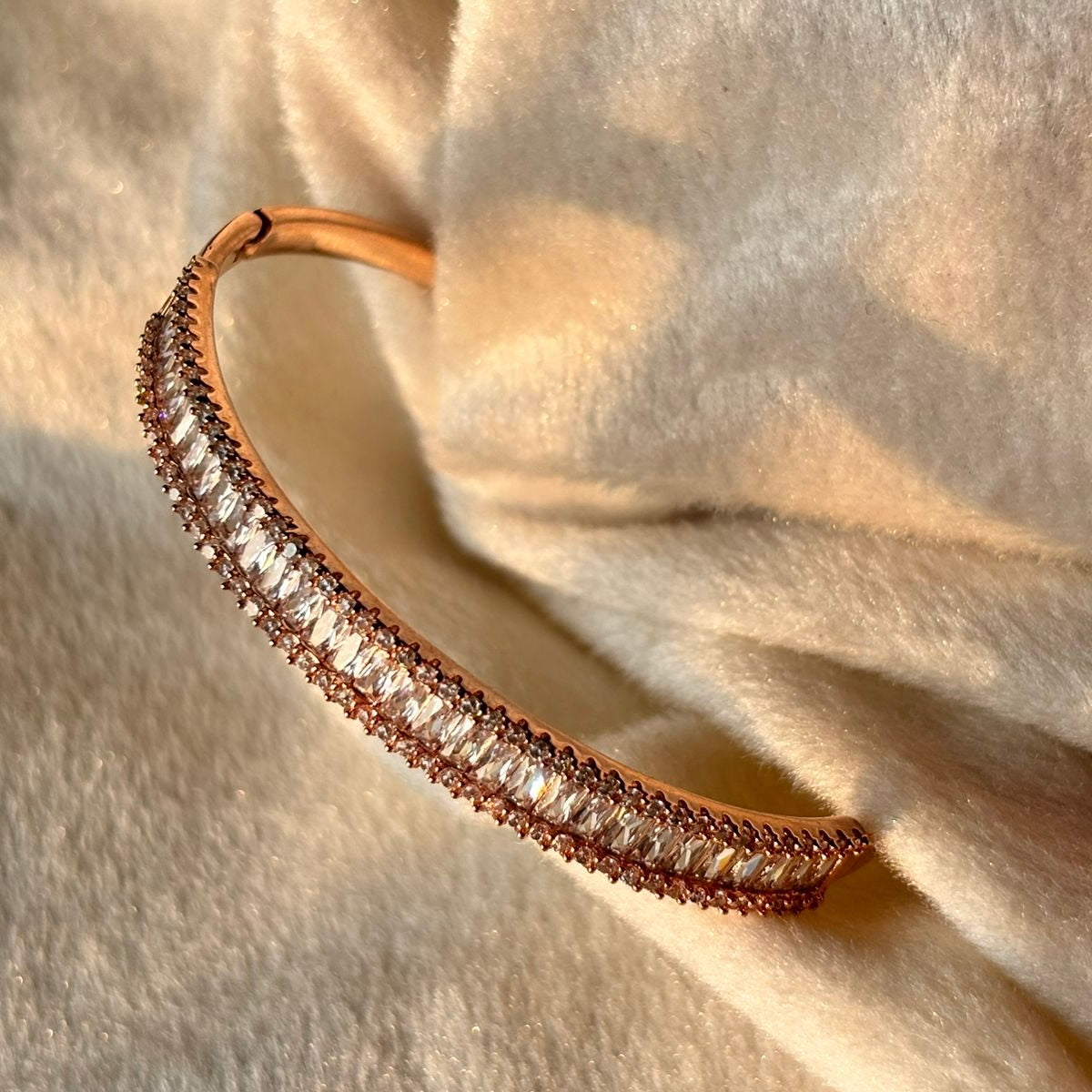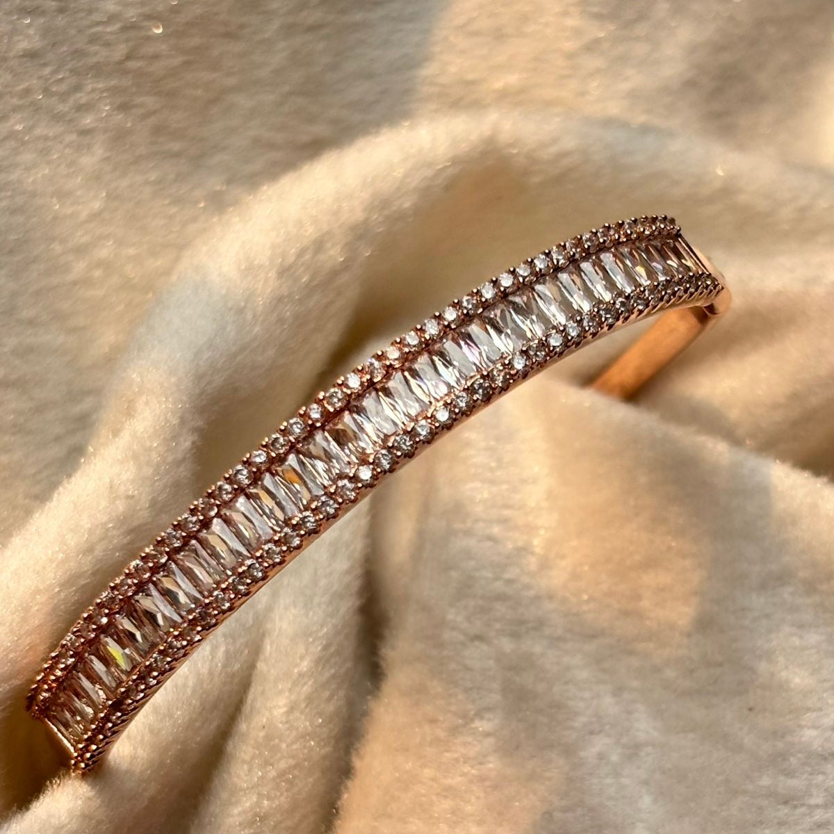 Premium Emerald Cut Diamond Bangle in Rose Gold