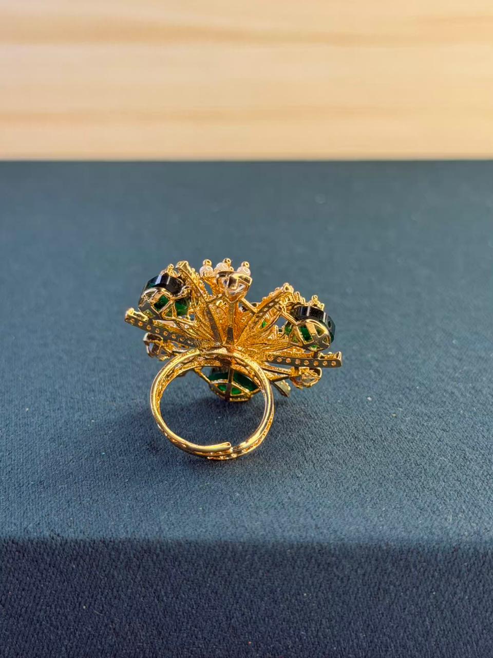 Green Stone Abstract Floral Ring Gold Plated Ring Size Adjustable