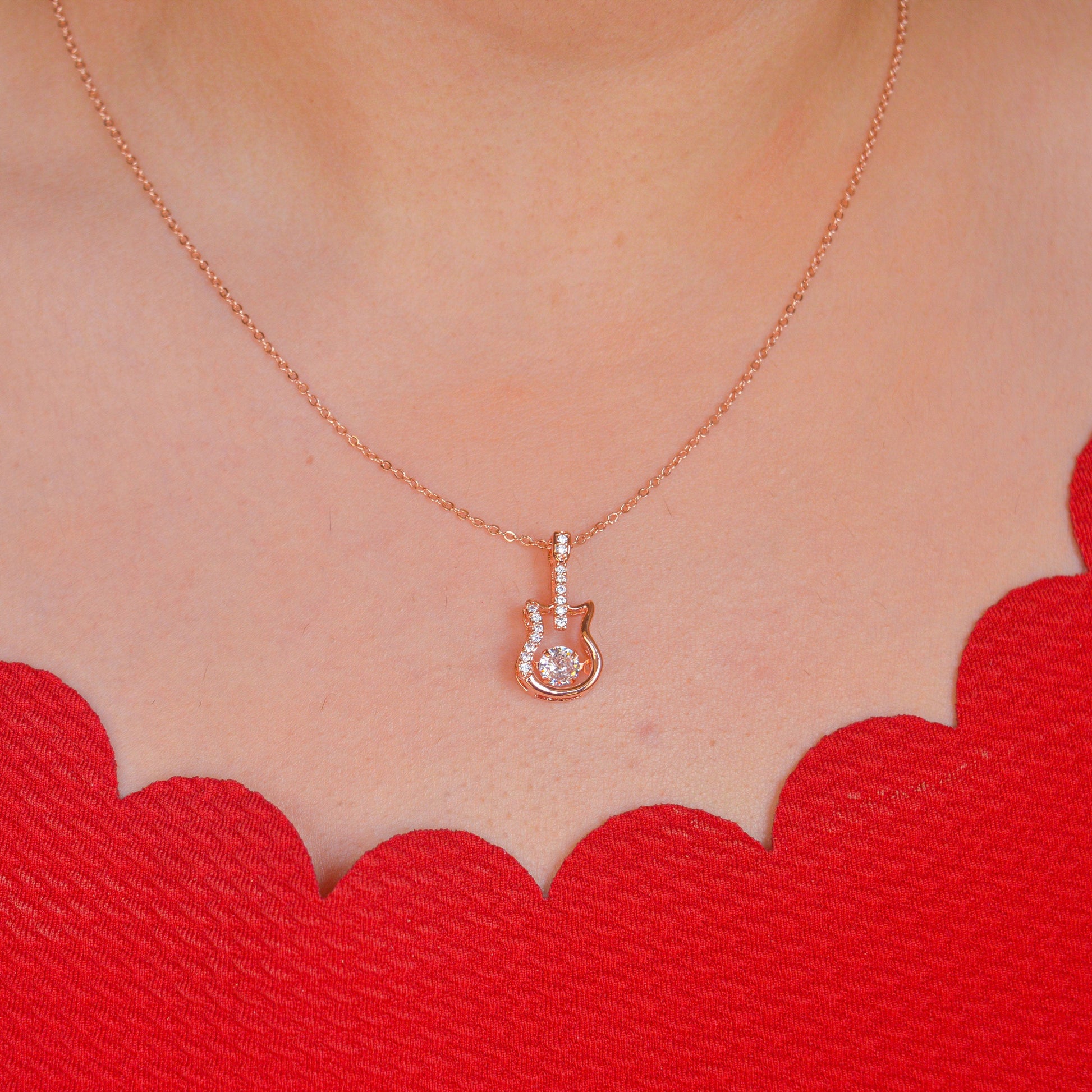Material - Chain is made of Stainless Steel ( 15-17inches length) , Pendant is made of Anti Tarnish Alloy and Stones are Cubic Zirconia quality. Necklace is Rose Gold Color Plated.