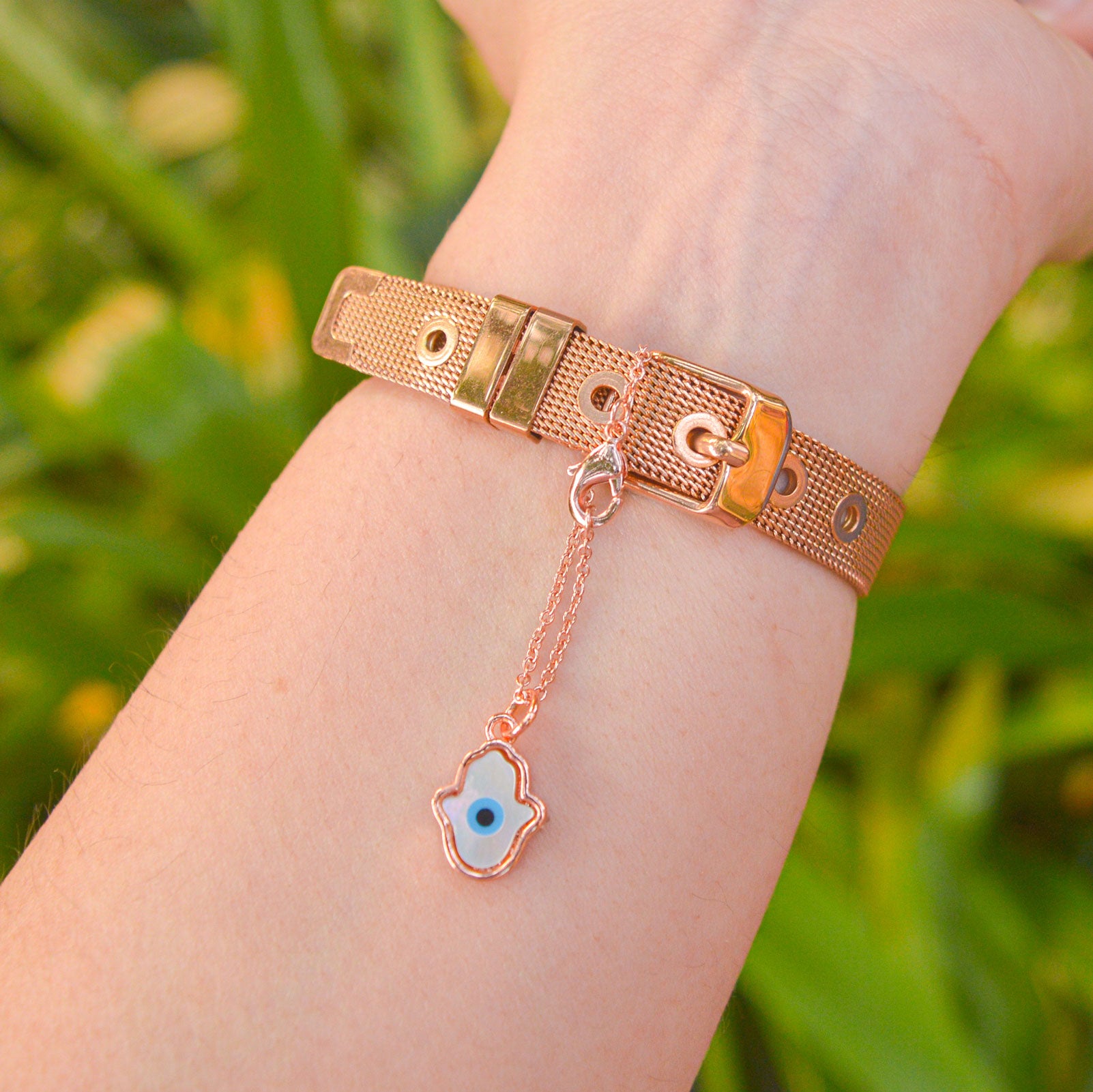 Hamsa Mother of Pearl Watch Charm ( Rose Gold )