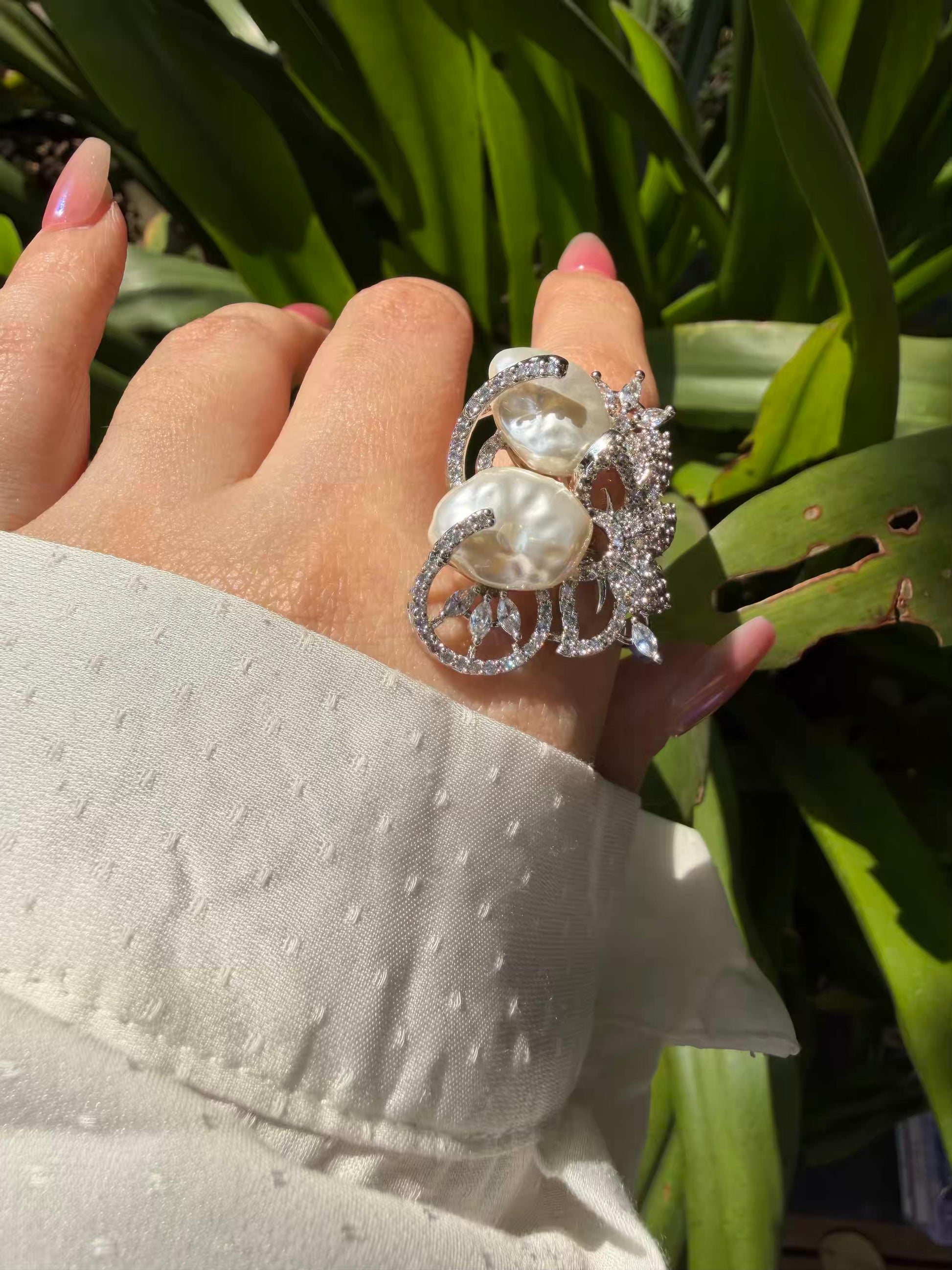 Ivory Pearl Statement Silver Plated Ring