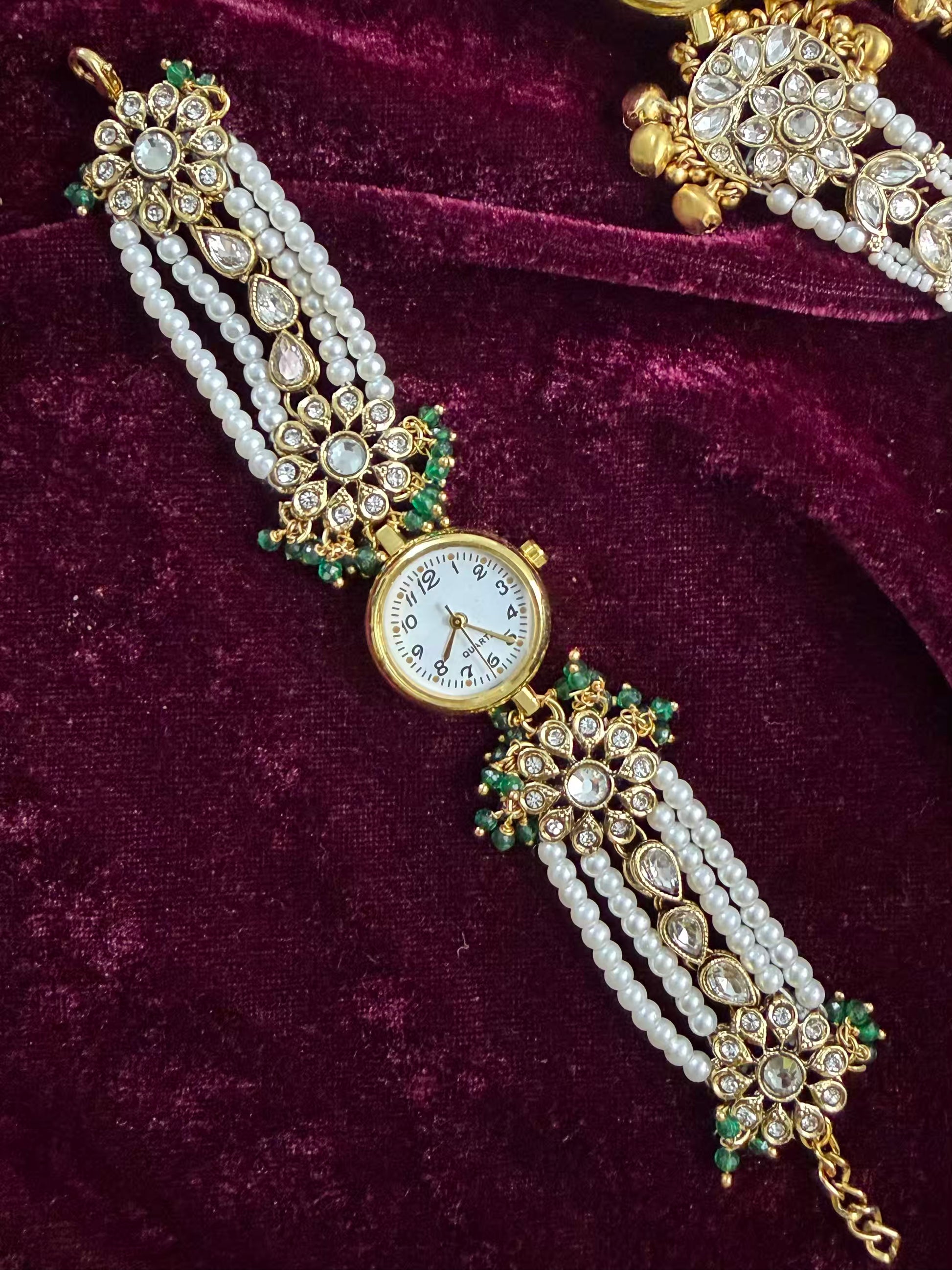 Kundan Green Gold Maharani Watch Design Heritage Bracelet